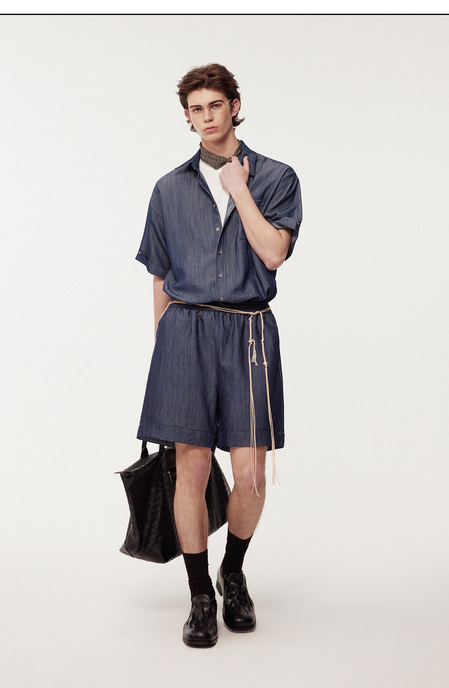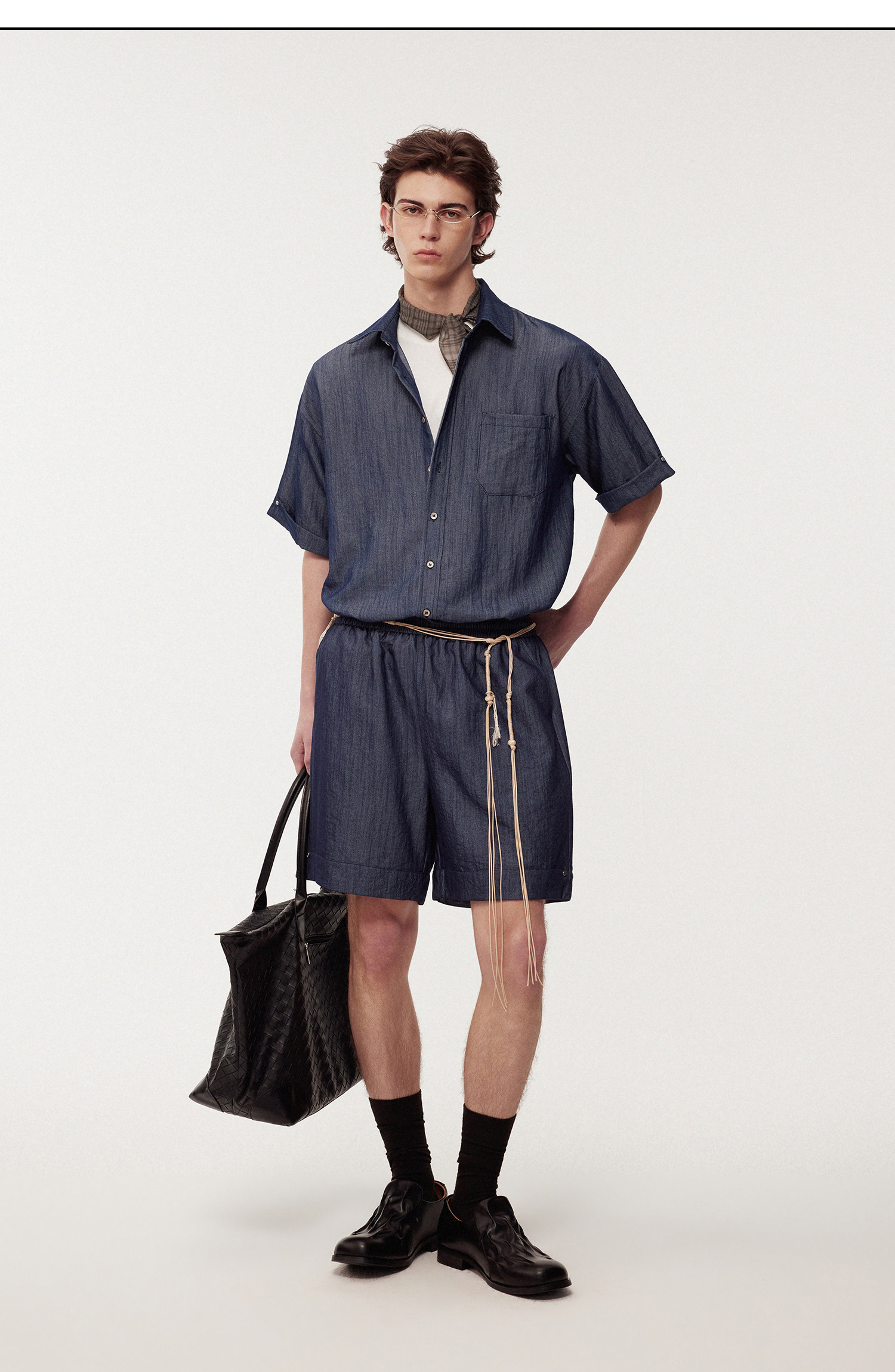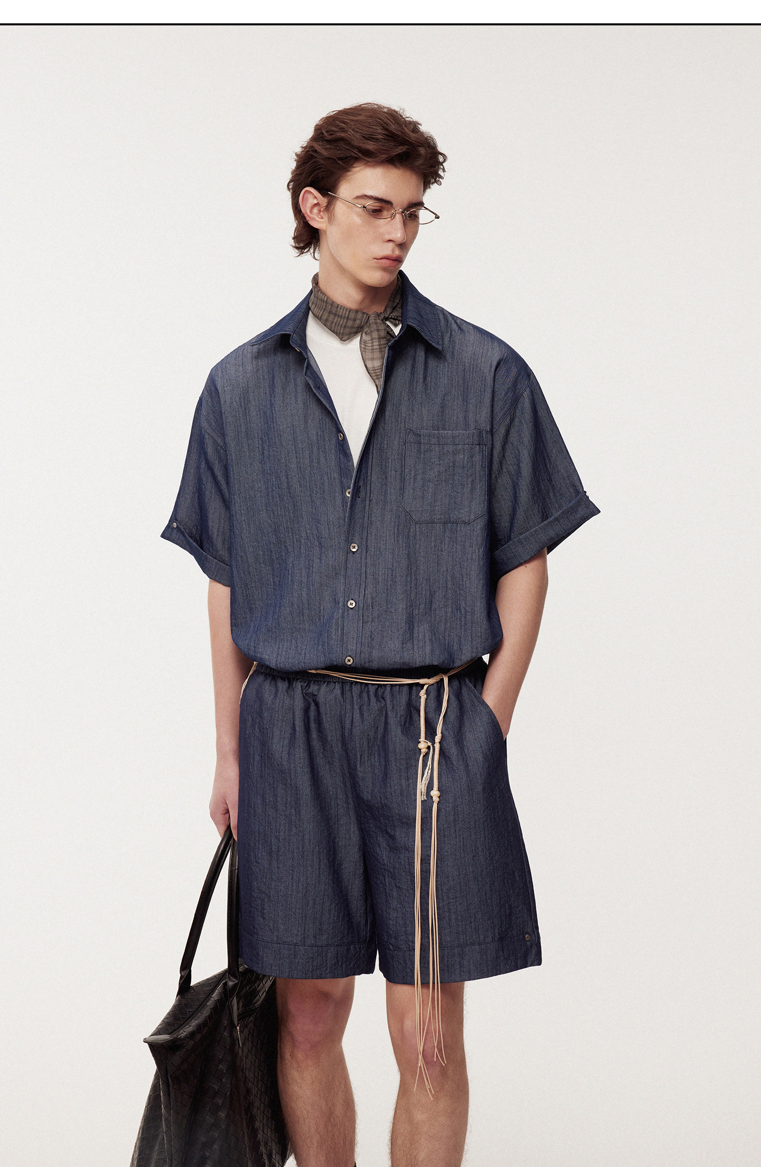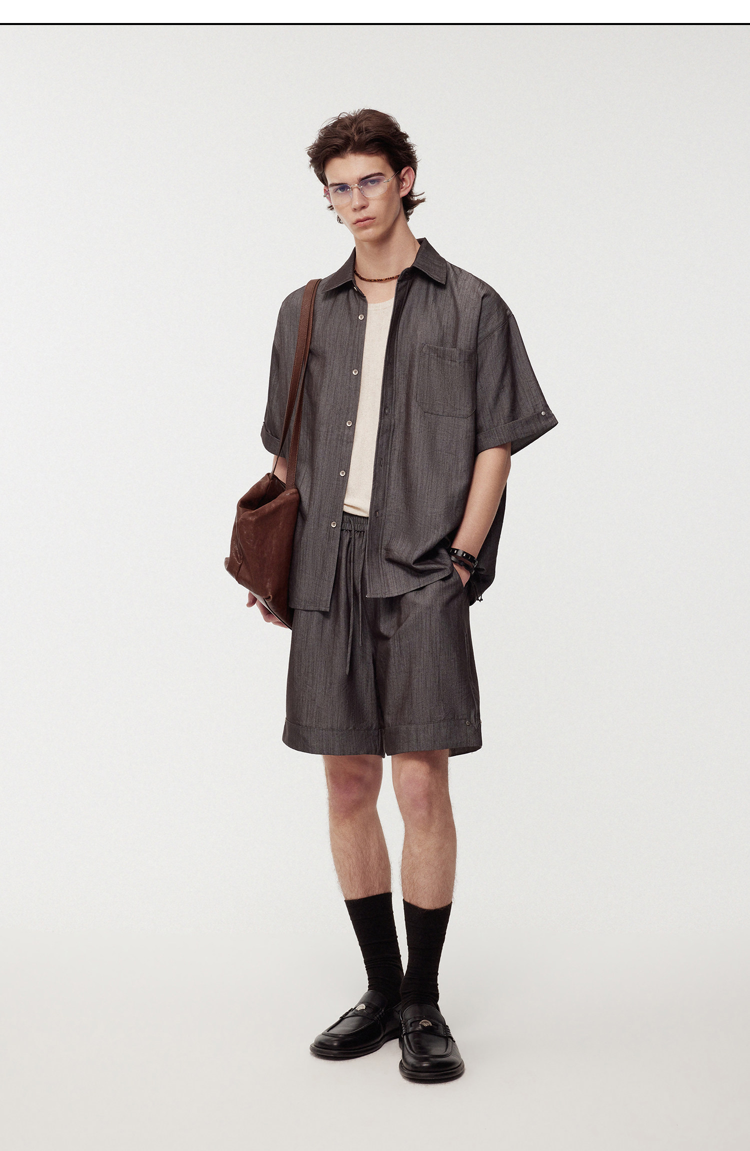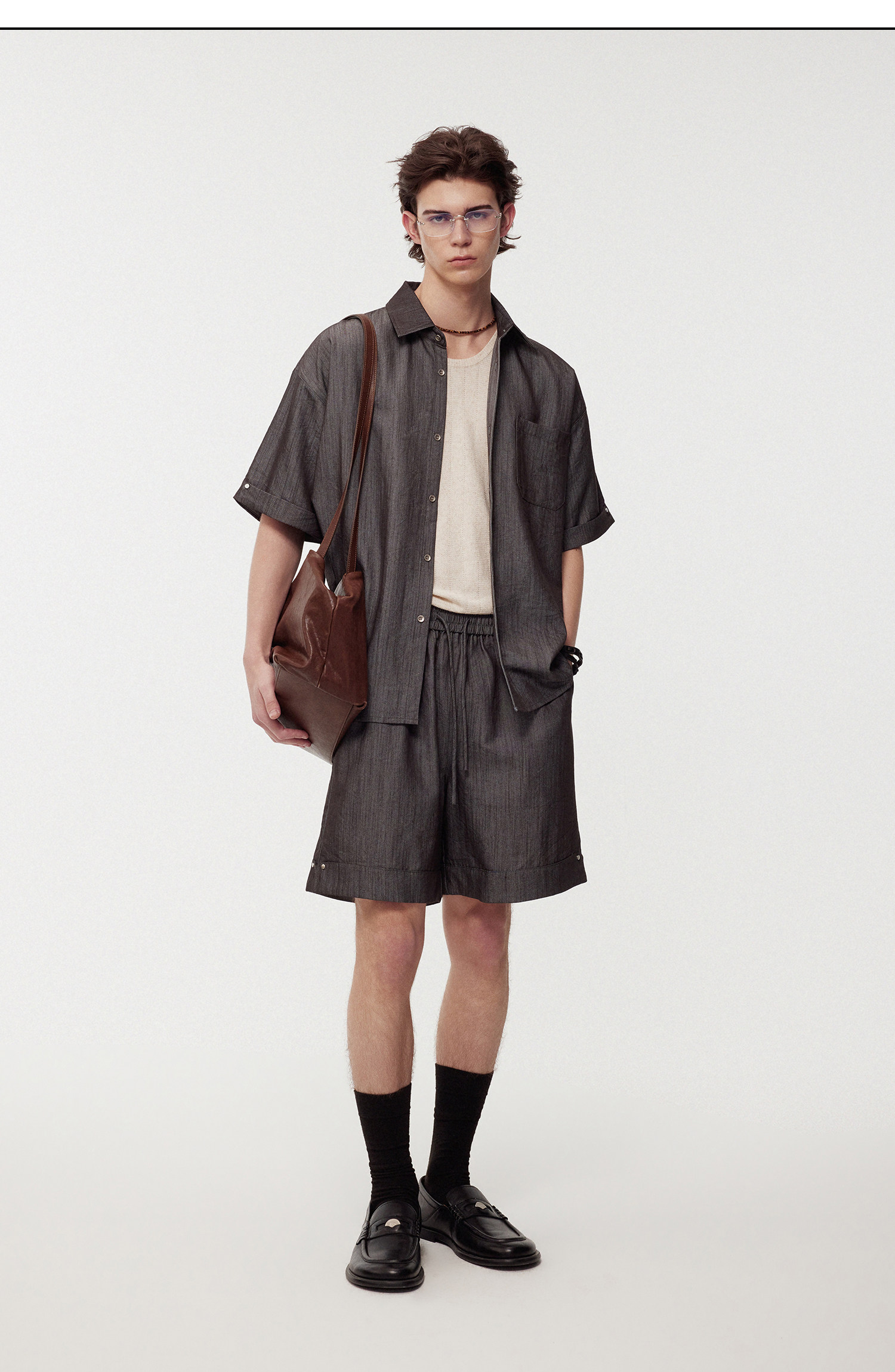 BUNGERIS 「轻奢松弛」老钱风肌理感都市男套装夏季短裤宽松衬衫