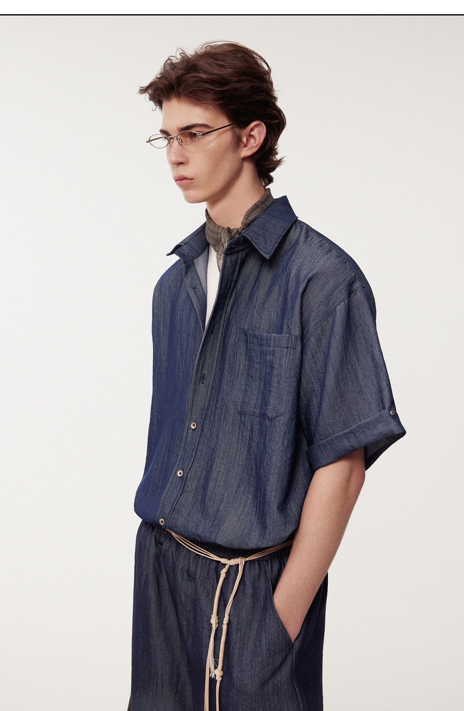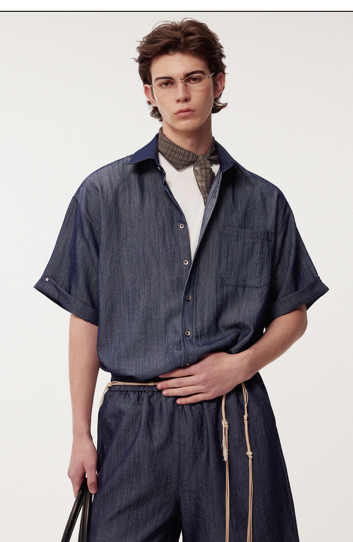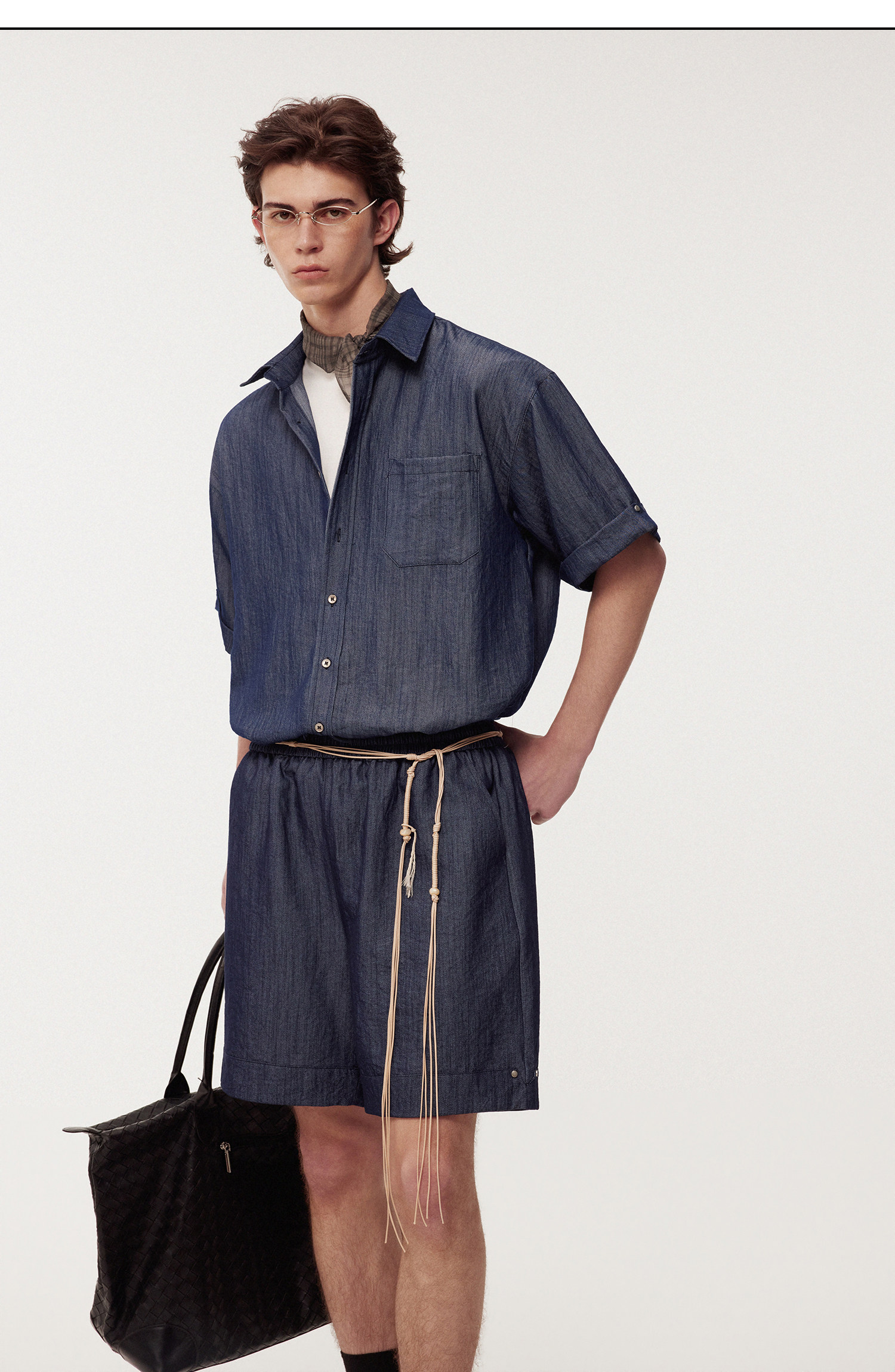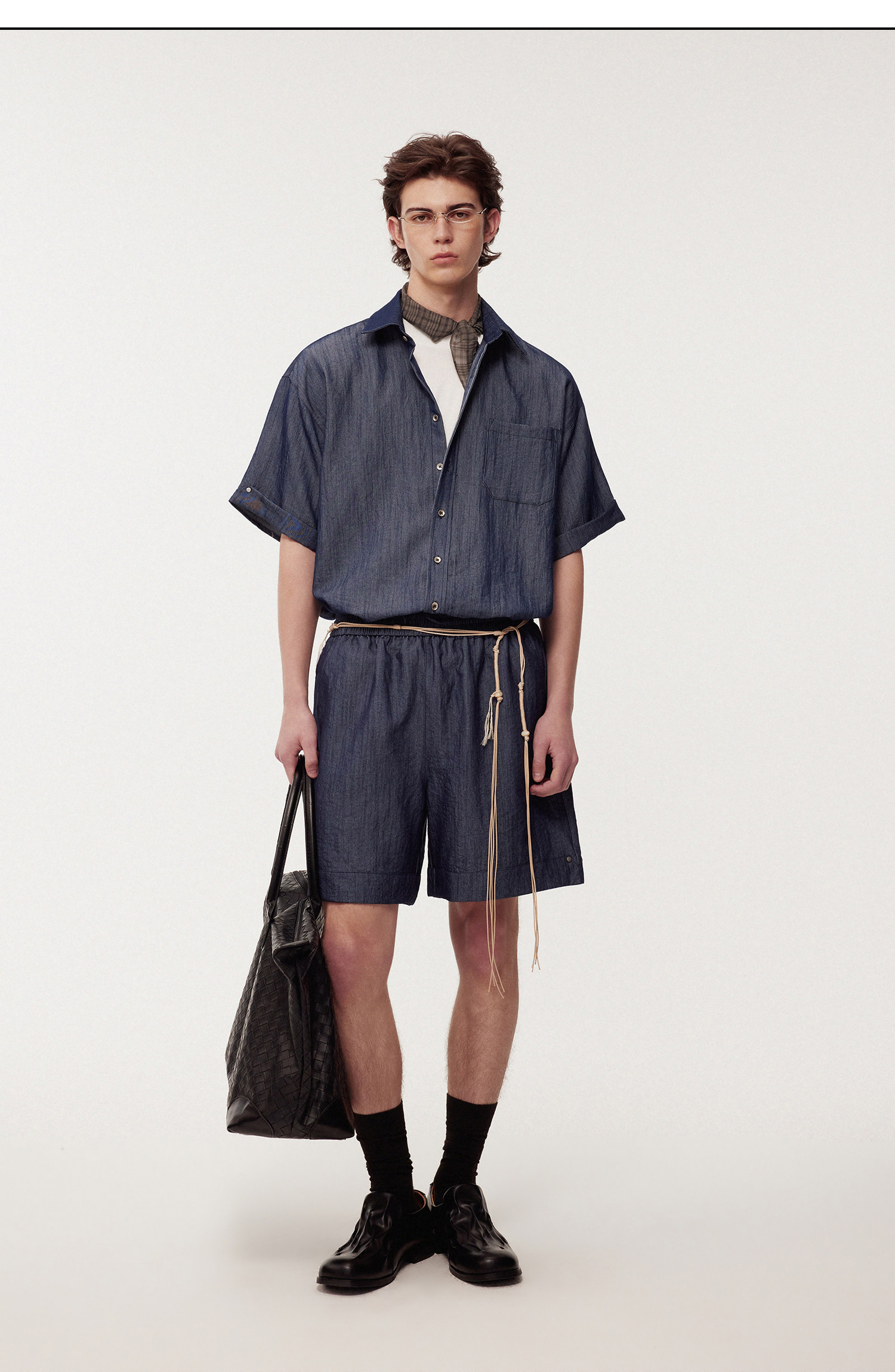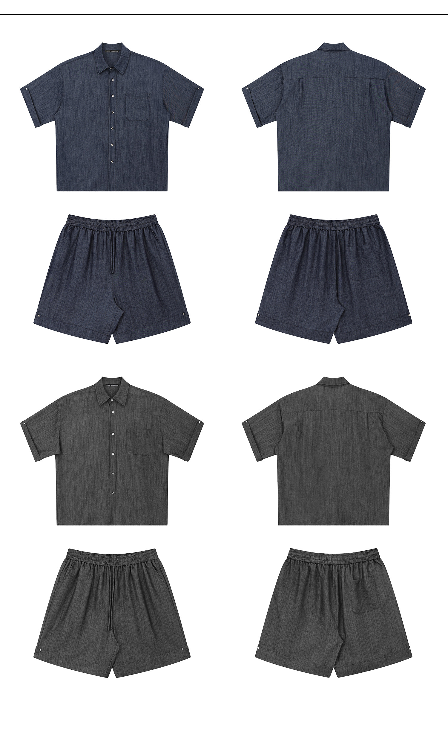 BUNGERIS 「轻奢松弛」老钱风肌理感都市男套装夏季短裤宽松衬衫