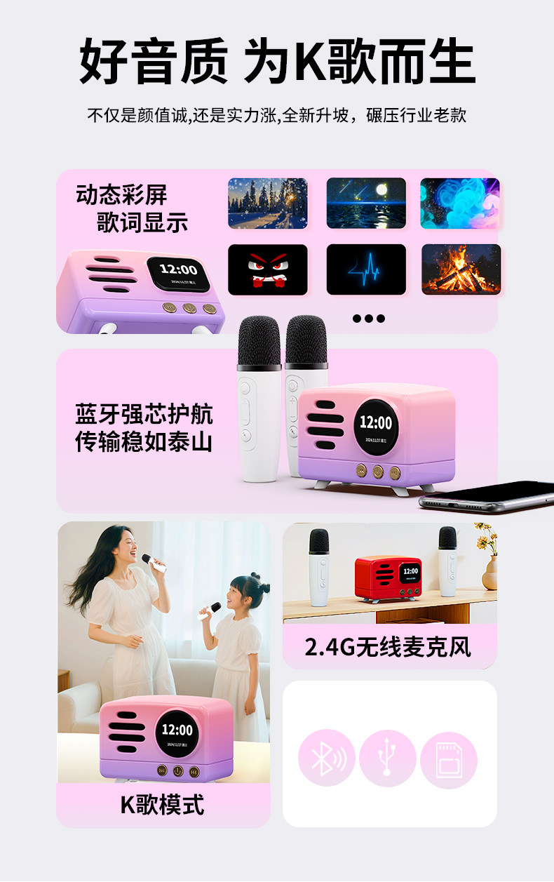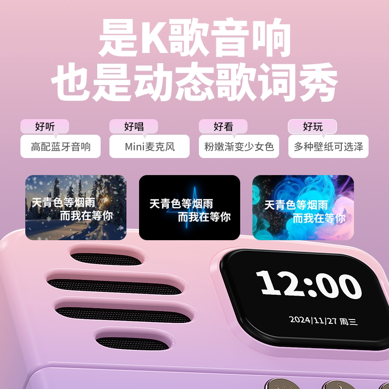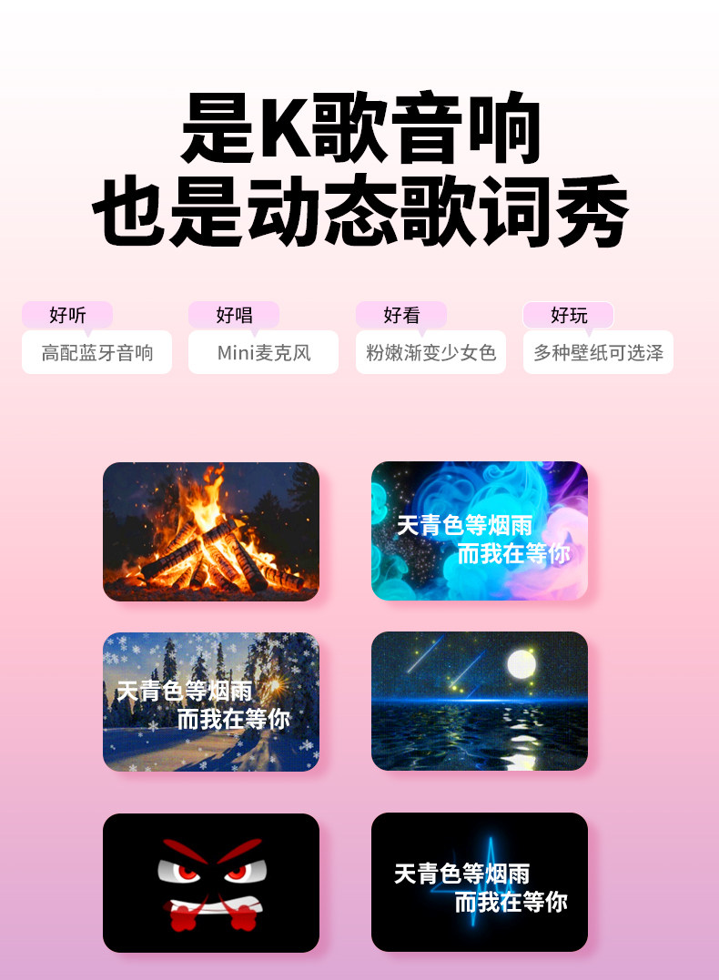便携K歌蓝牙音箱无线麦克风高清音质歌词显示送朋友实用生日礼物