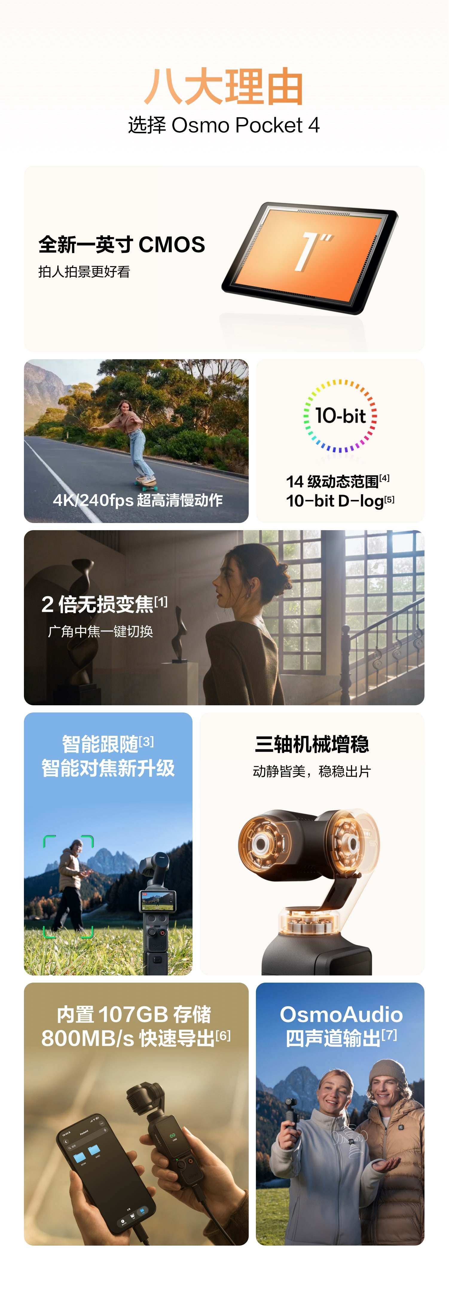HomeProducts【新品】大疆 DJI Osmo Pocket 4/3一英寸口袋云台相机拍照神器