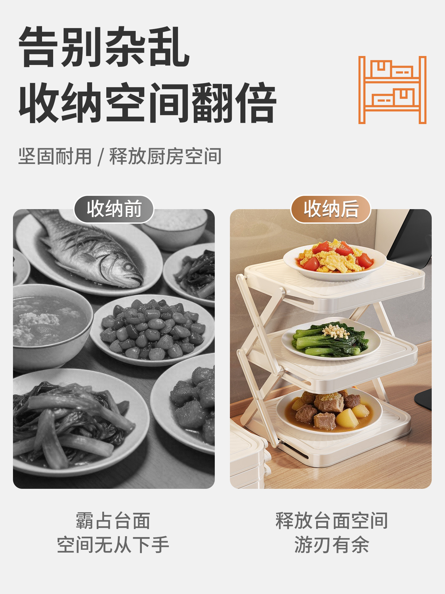 HomeProducts可折叠厨房备菜置物架家用多层台面多功能收纳火锅食材配菜盘架子