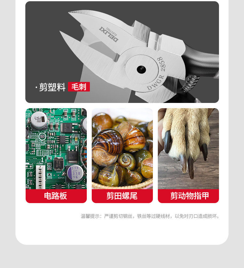 德力西水口钳工业级高达模型剪钳电子钳超硬斜口钳小钳子电工专用