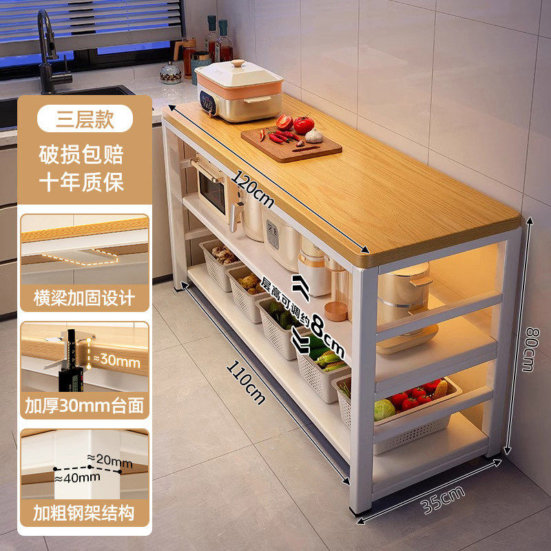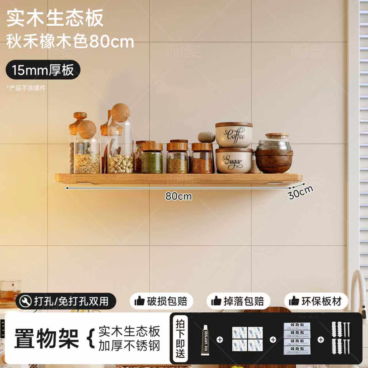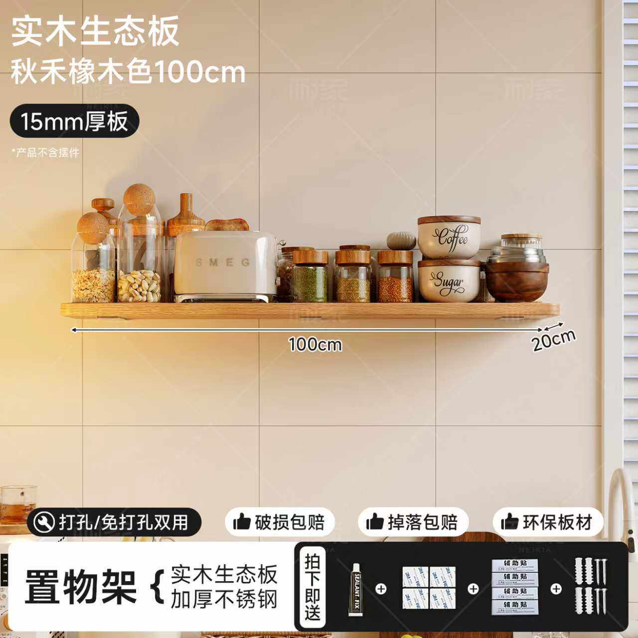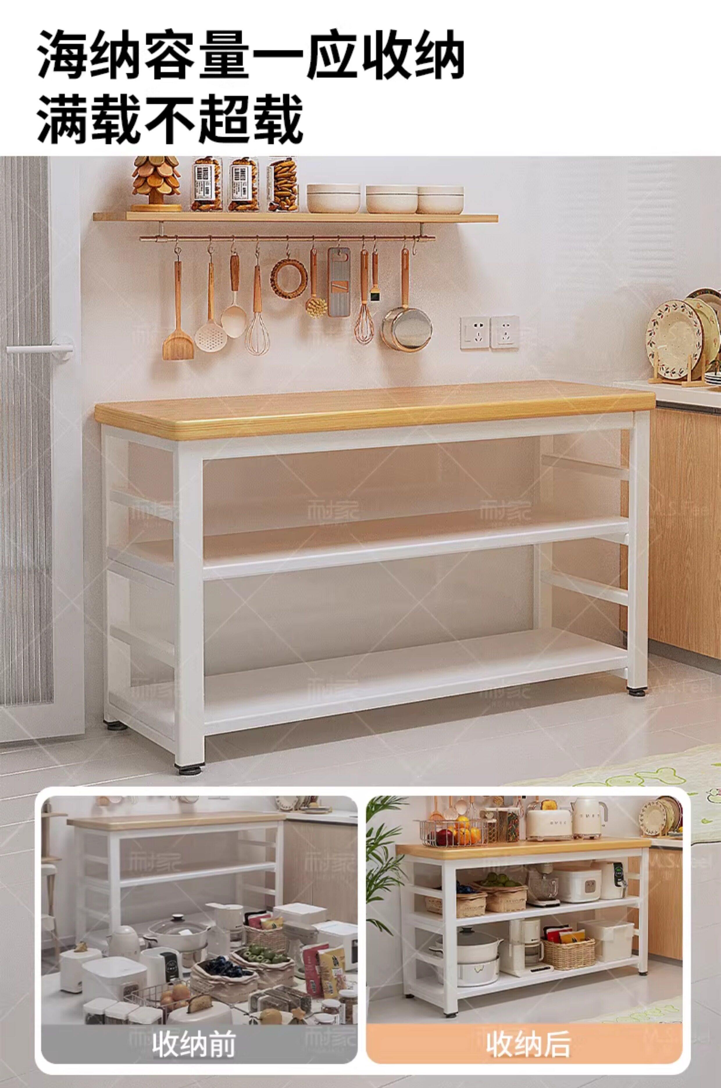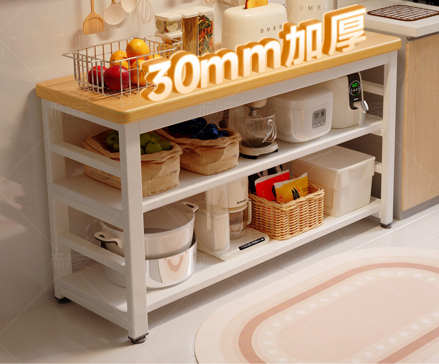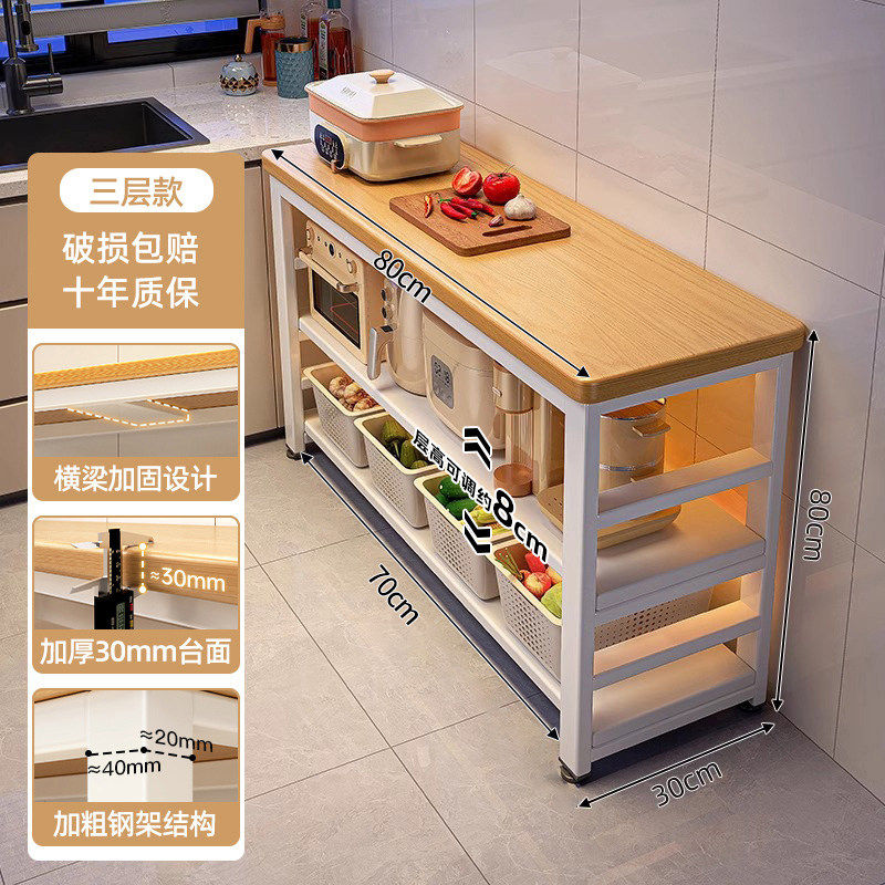 HomeProducts实木厨房置物架落地多层微波炉多功能切菜工作台墙上一字板收纳架