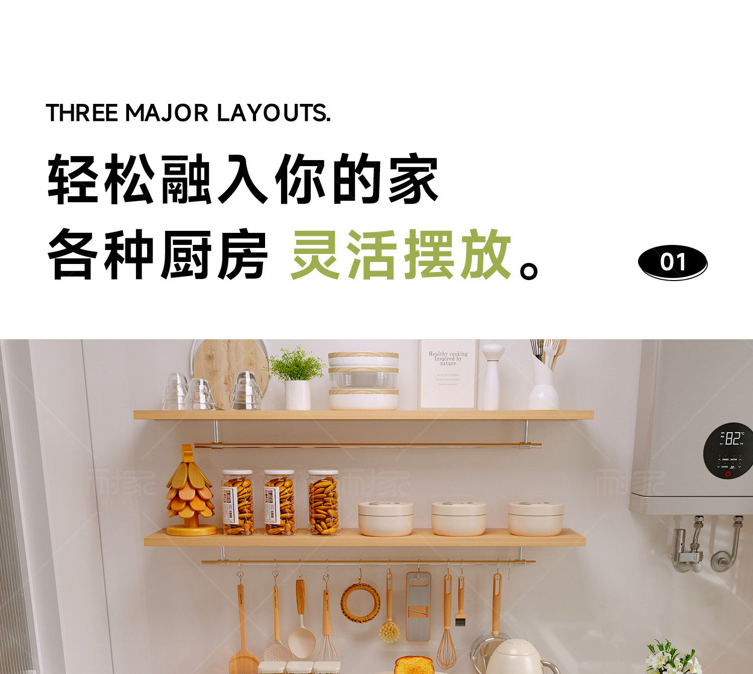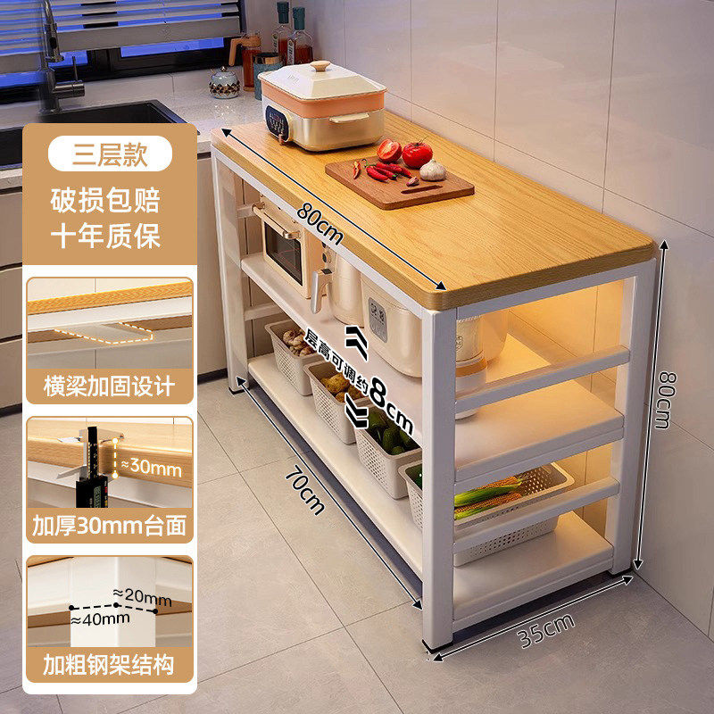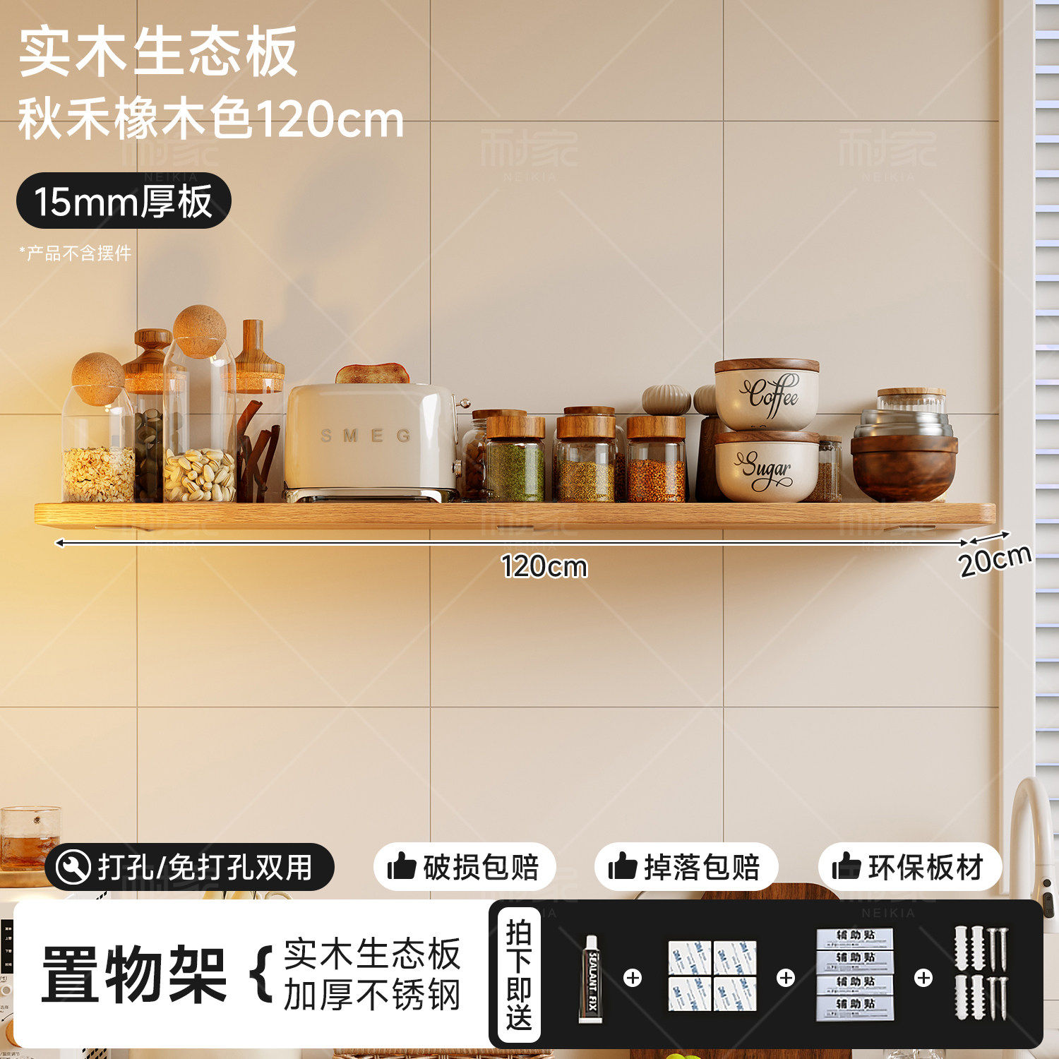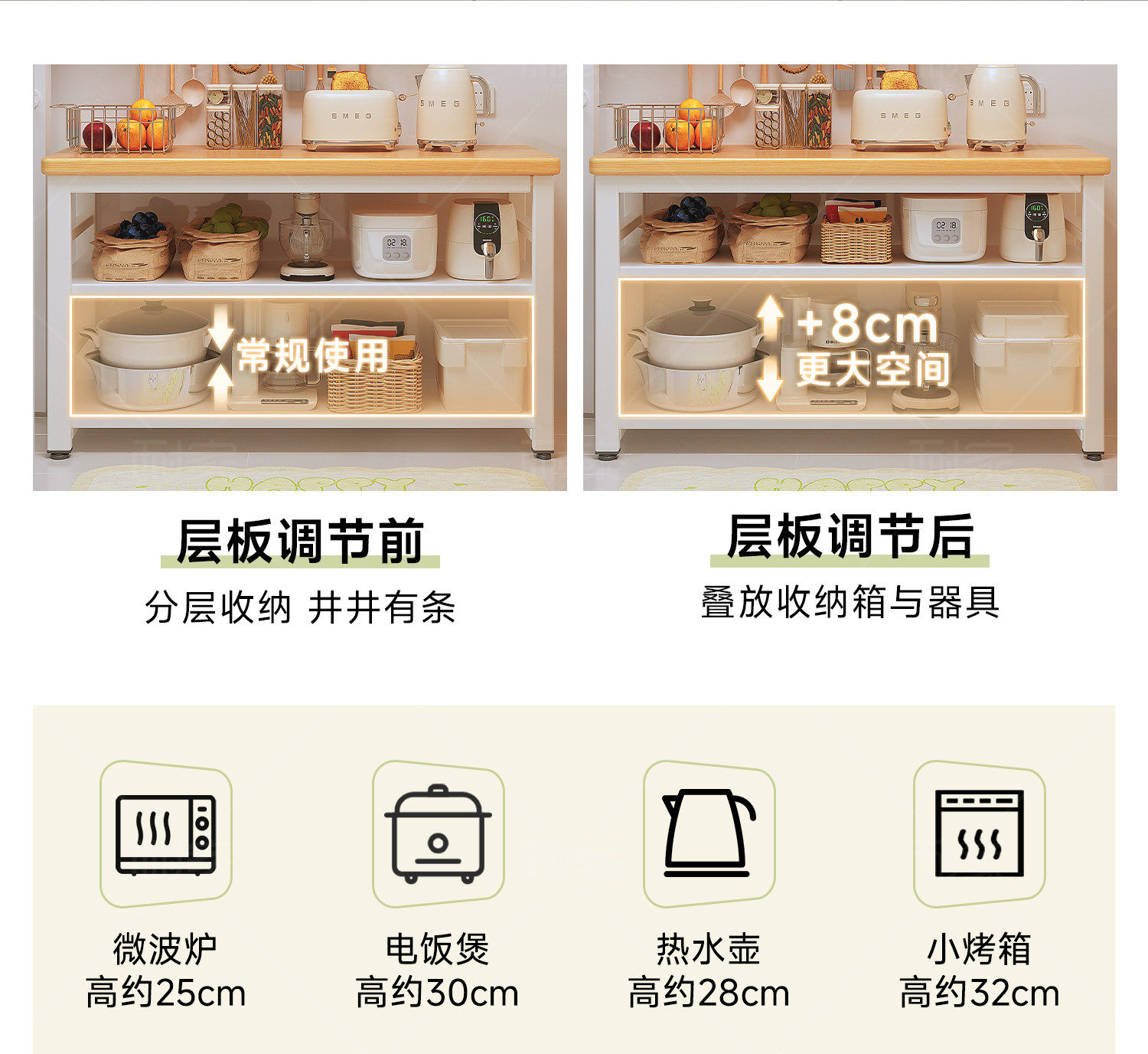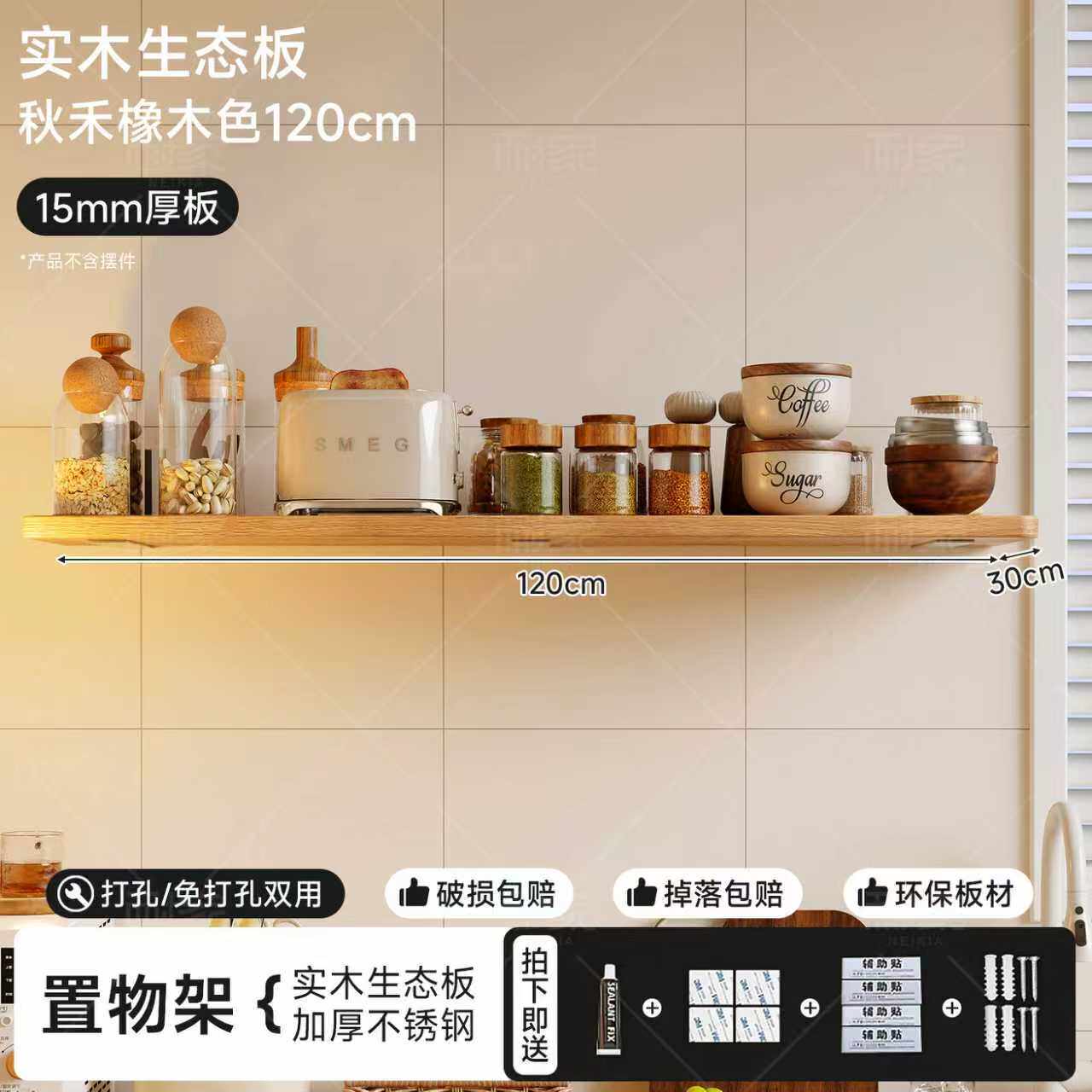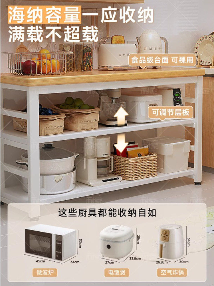 HomeProducts实木厨房置物架落地多层微波炉多功能切菜工作台墙上一字板收纳架