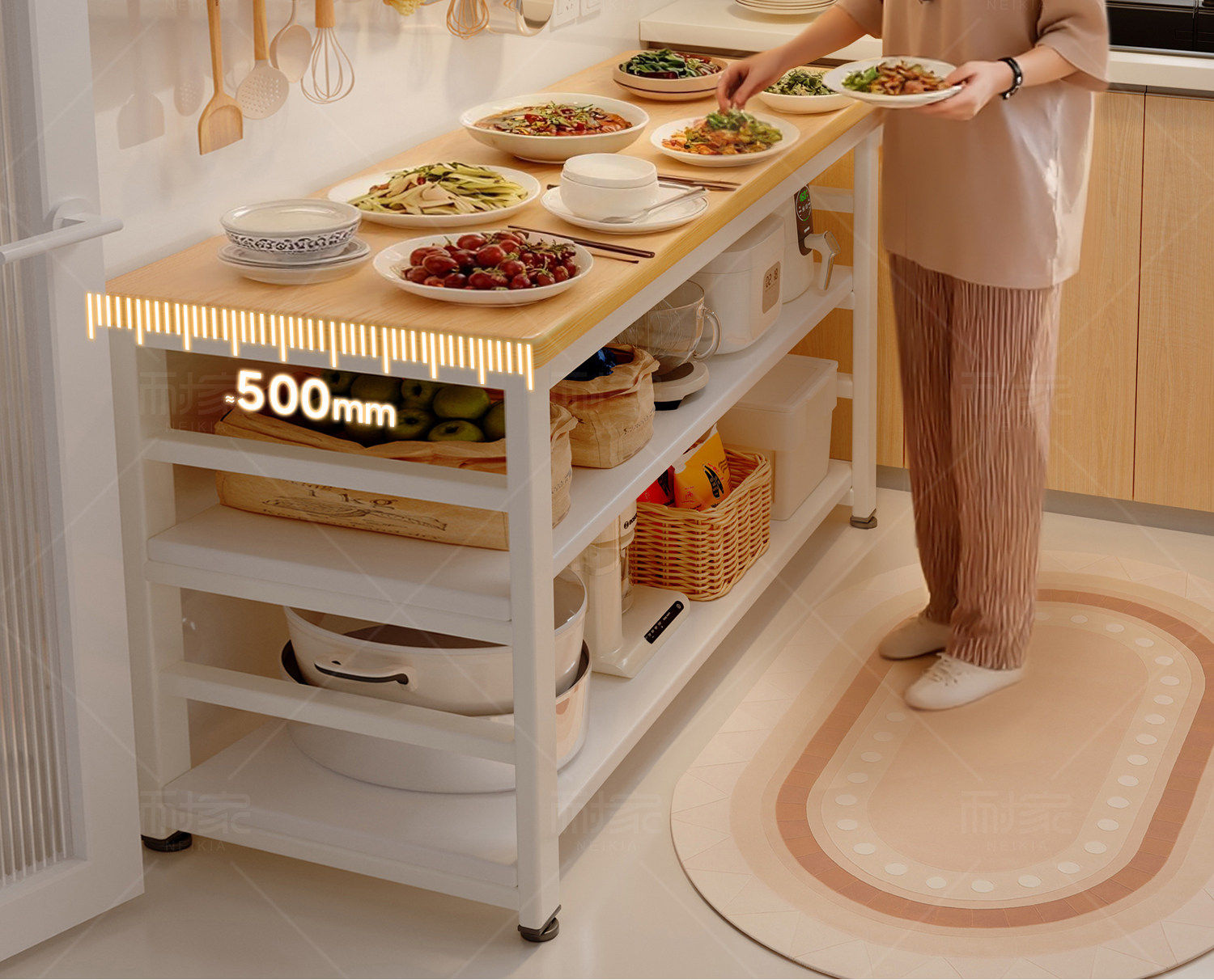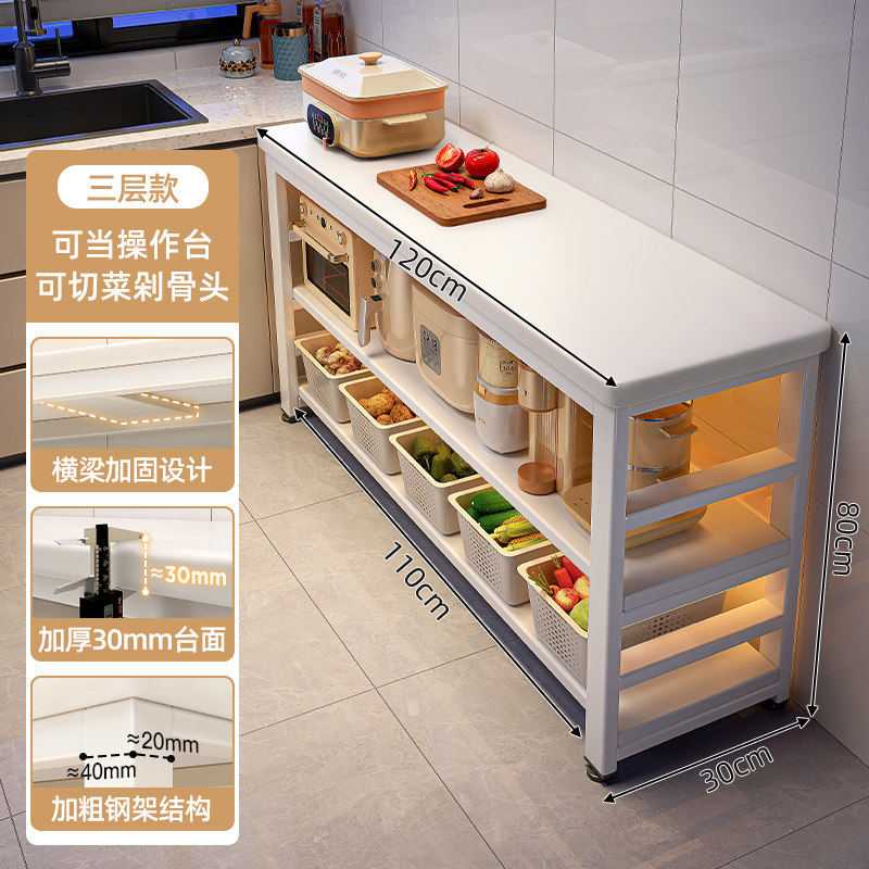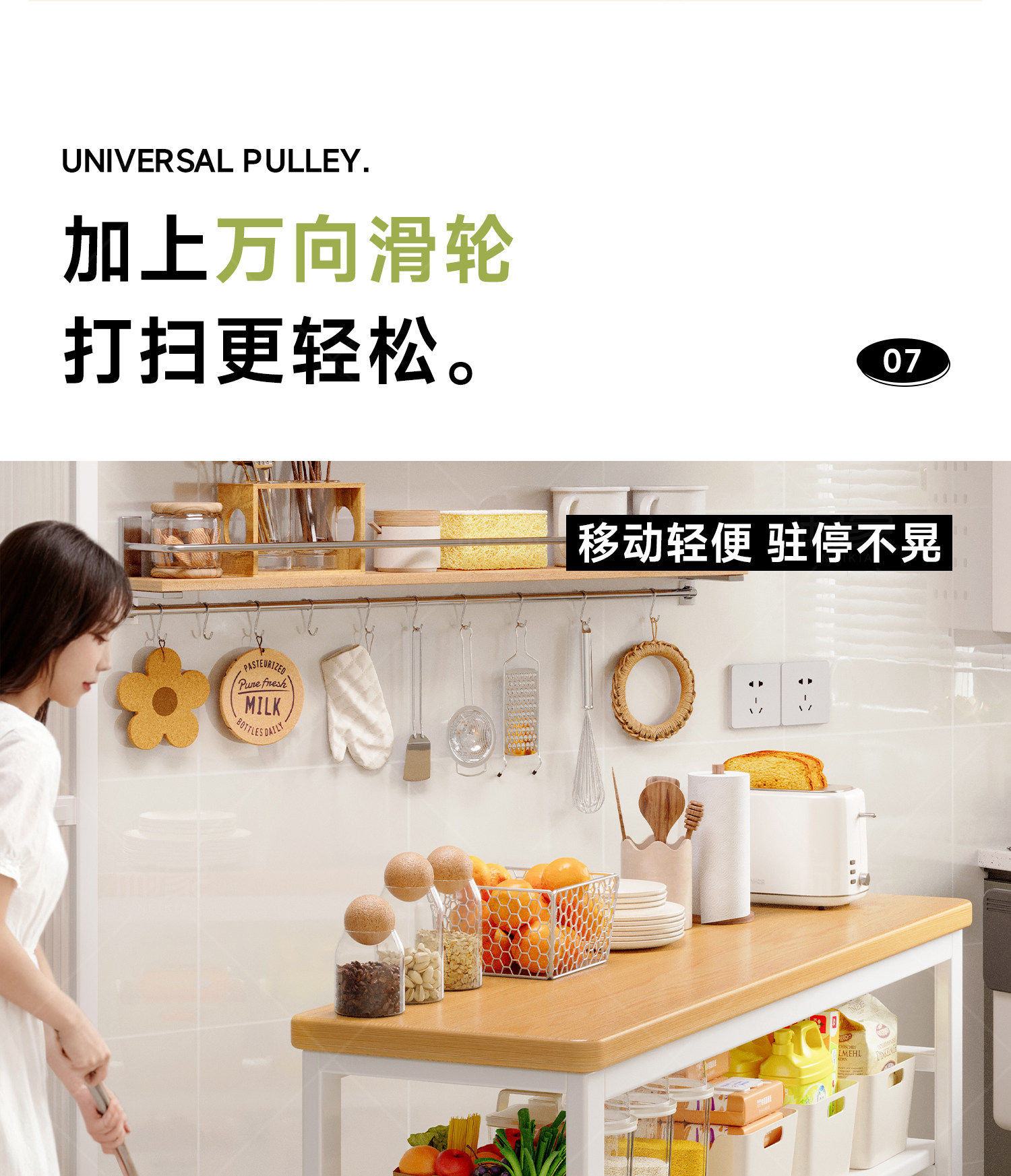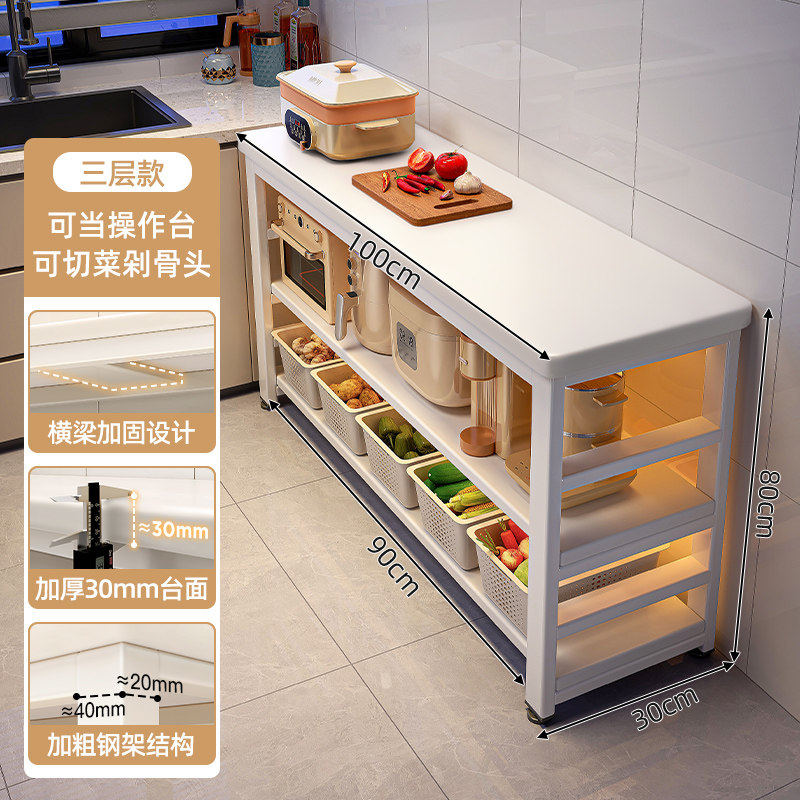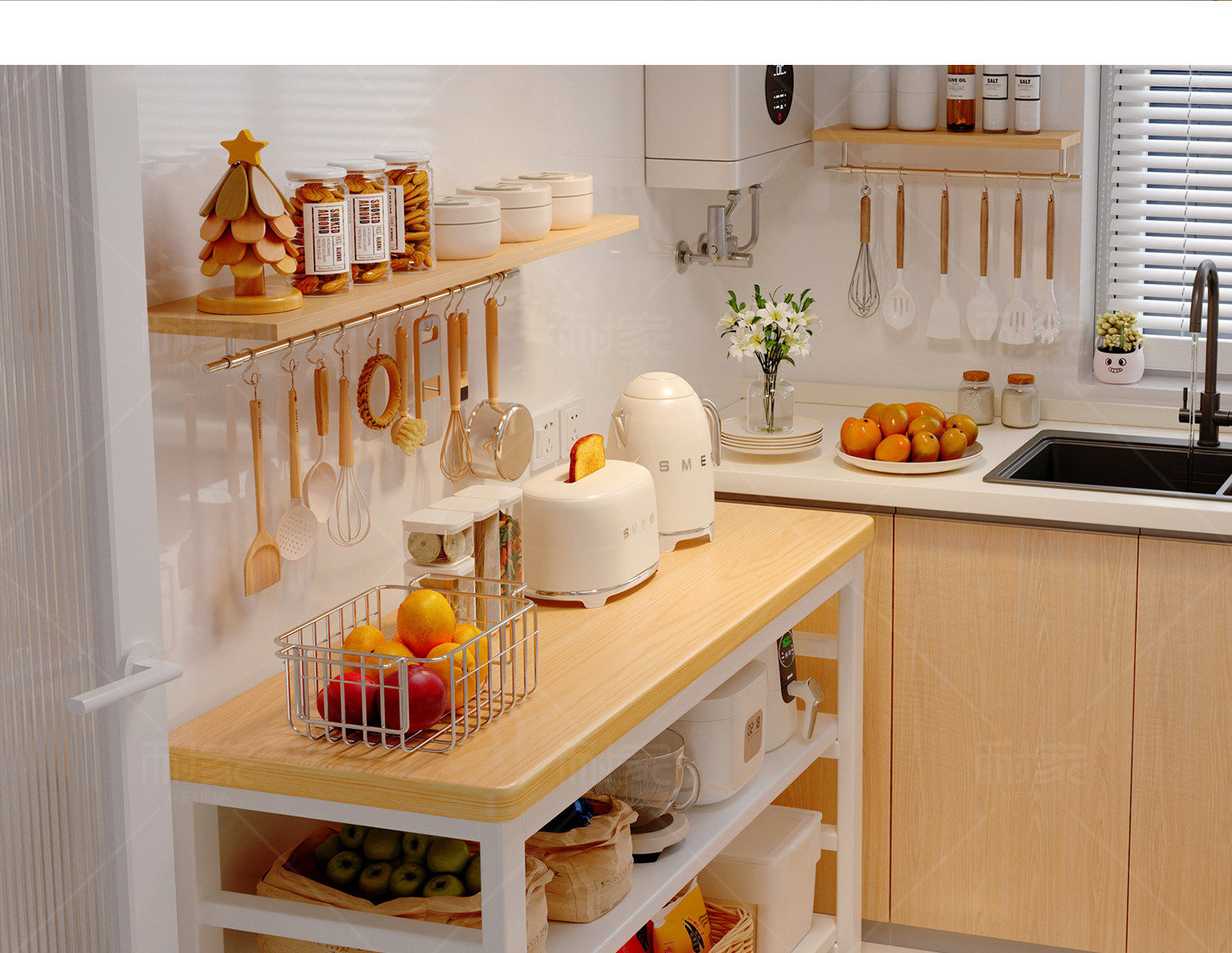 HomeProducts实木厨房置物架落地多层微波炉多功能切菜工作台墙上一字板收纳架