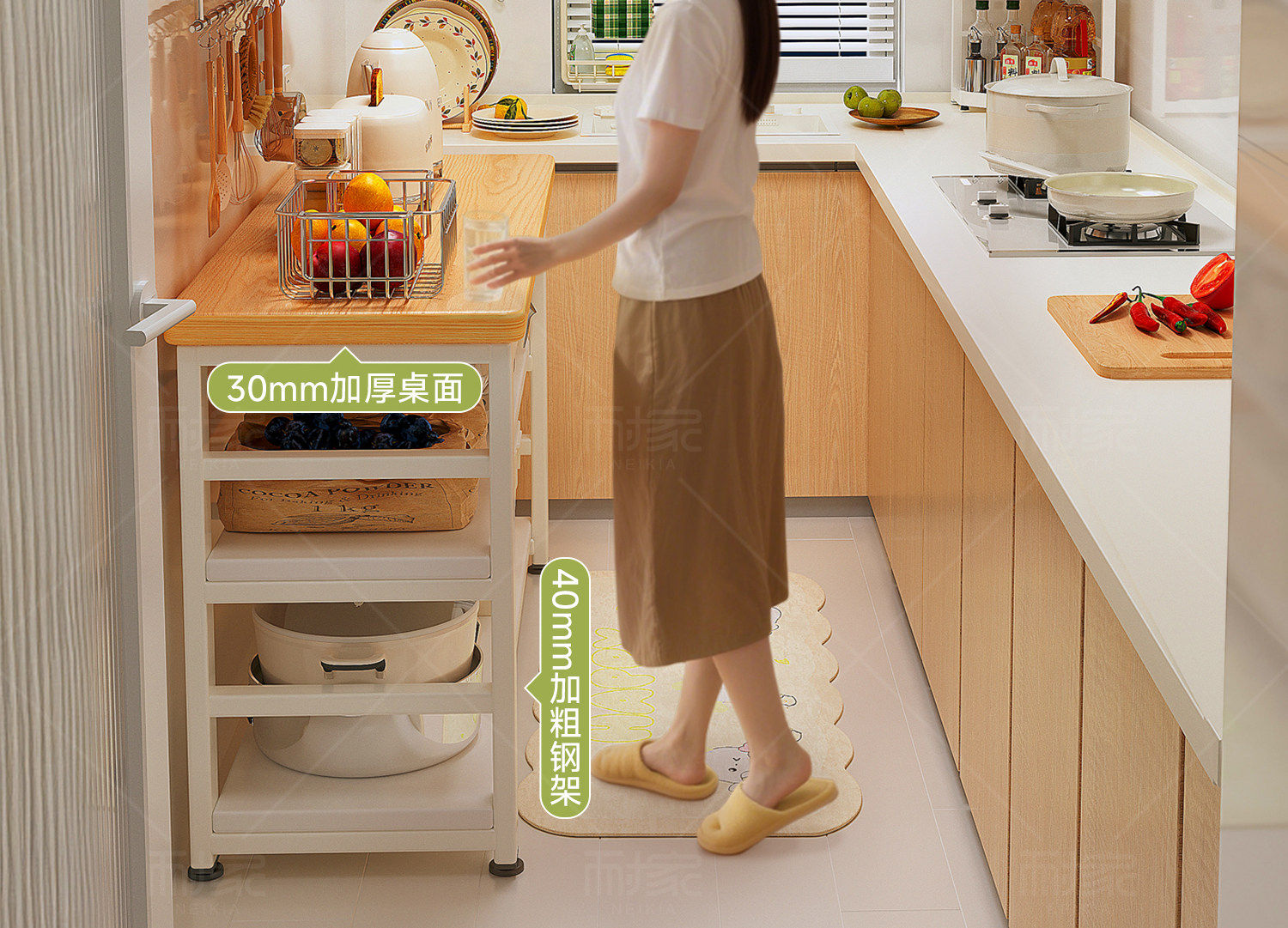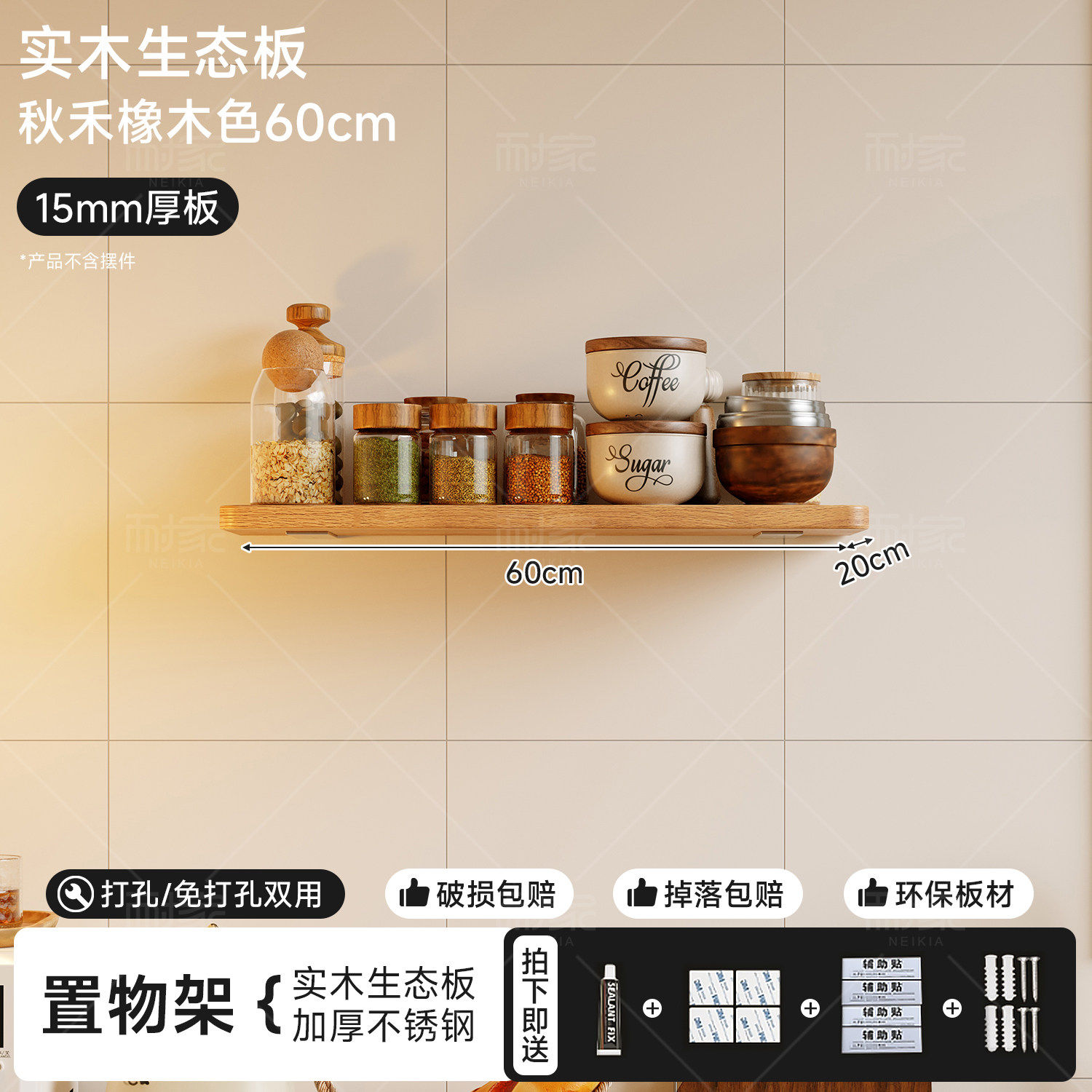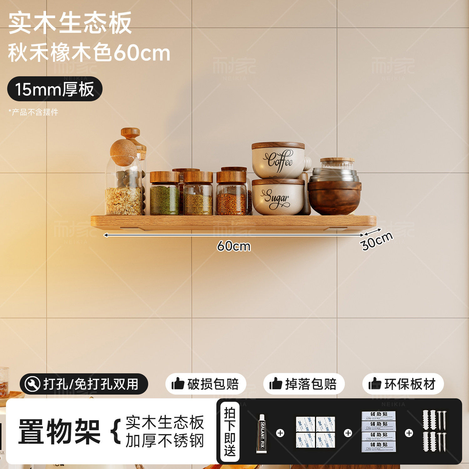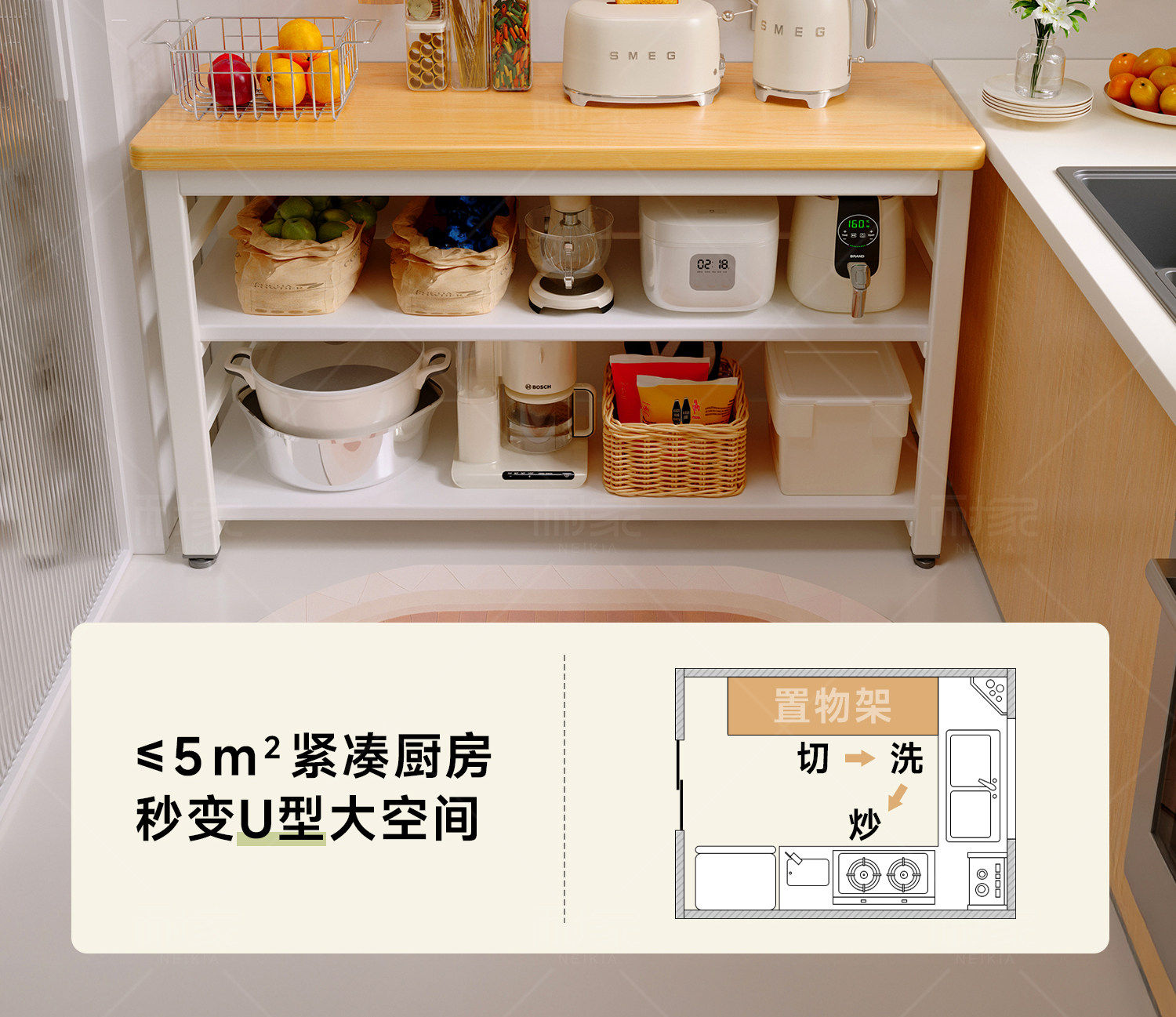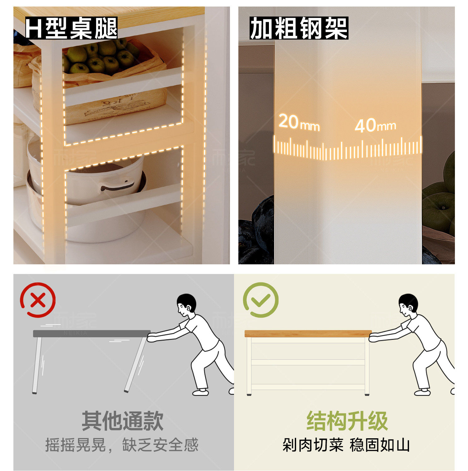 HomeProducts实木厨房置物架落地多层微波炉多功能切菜工作台墙上一字板收纳架