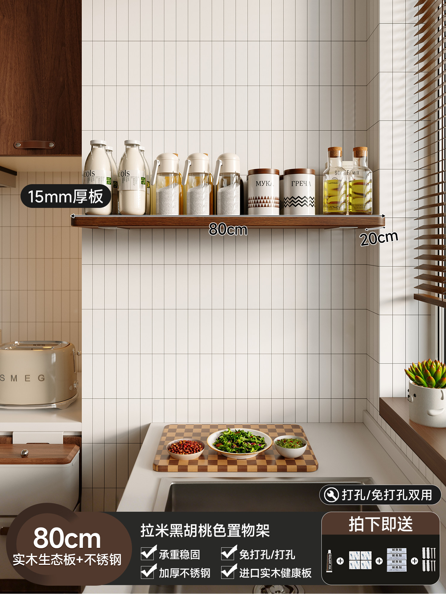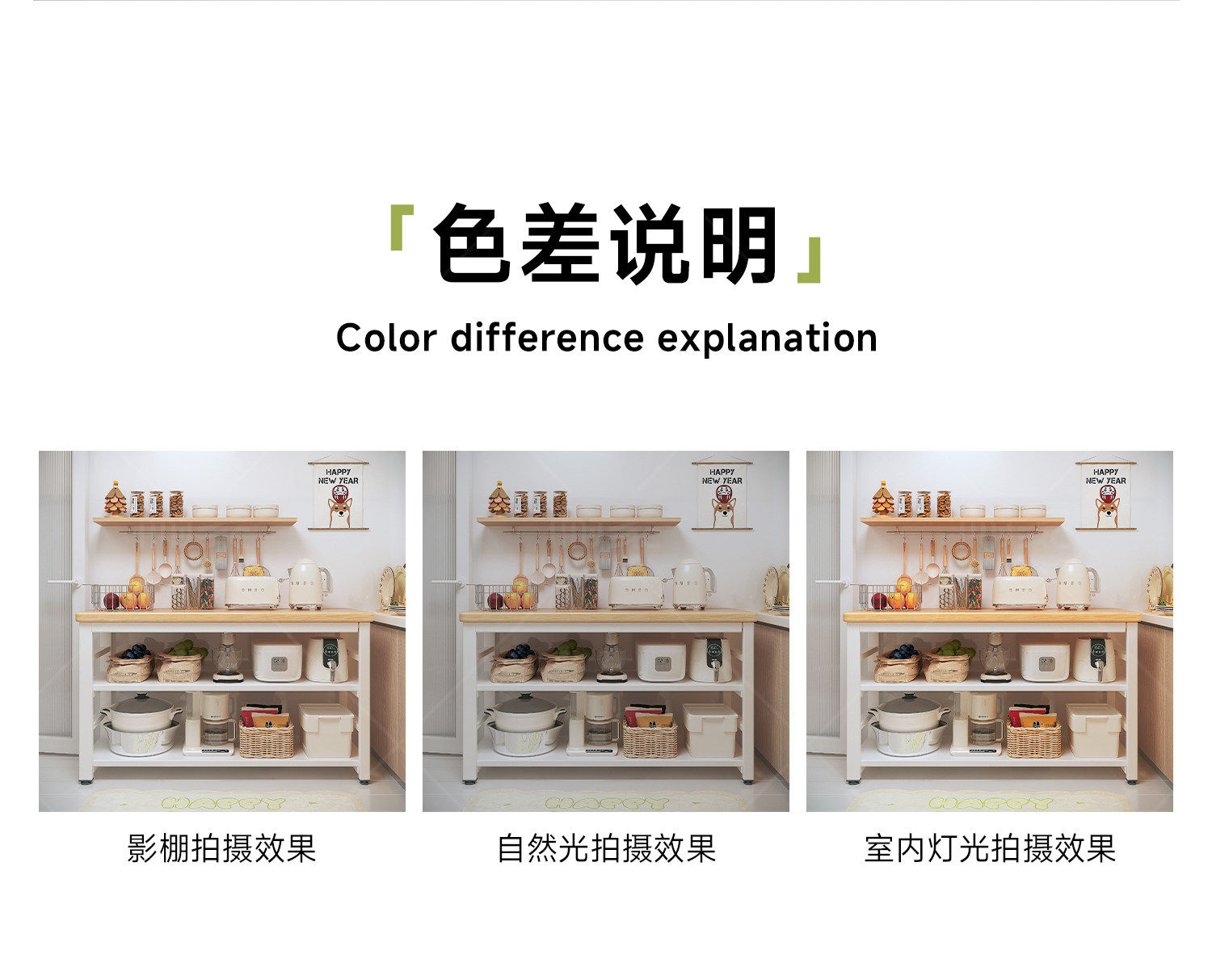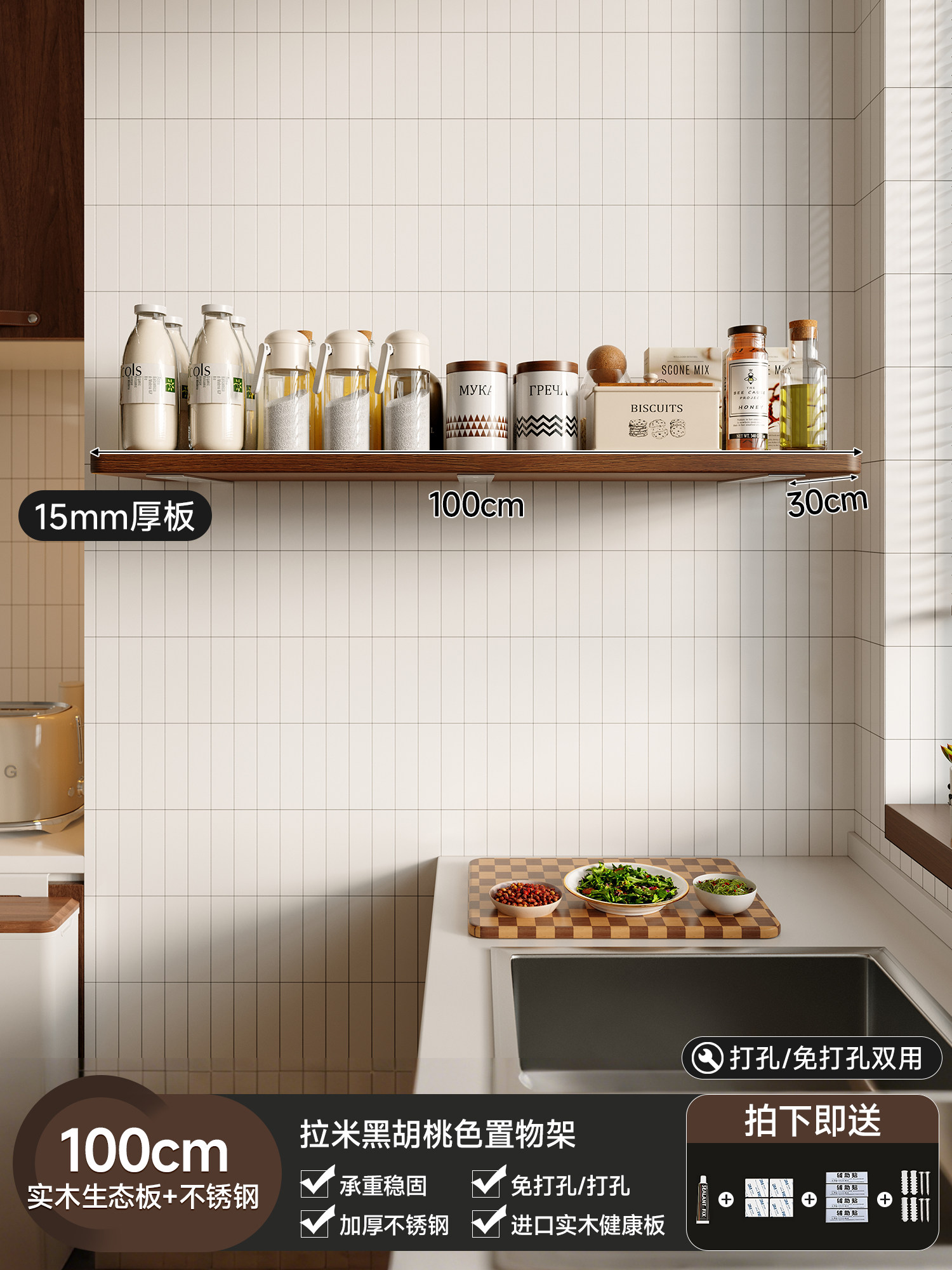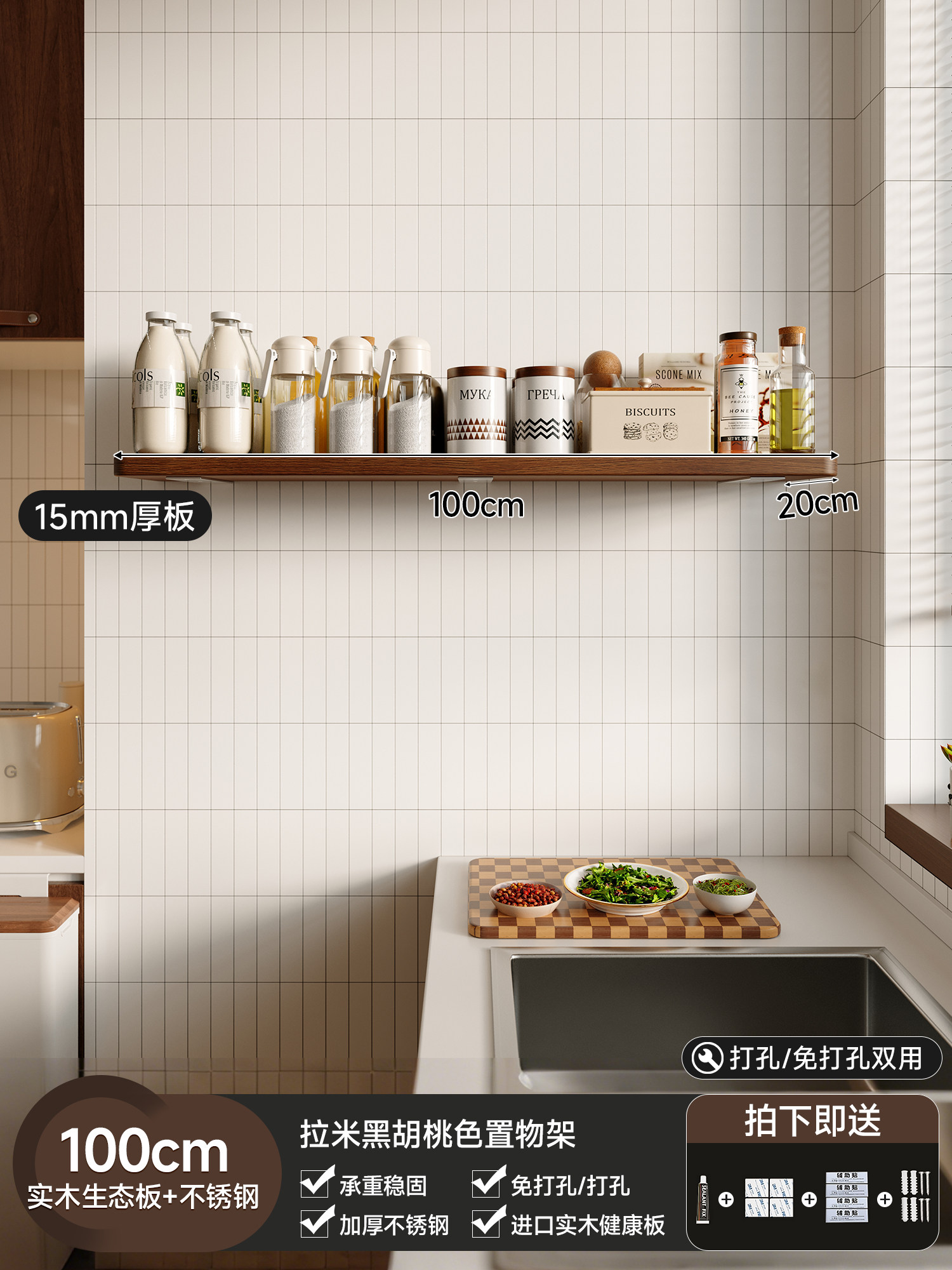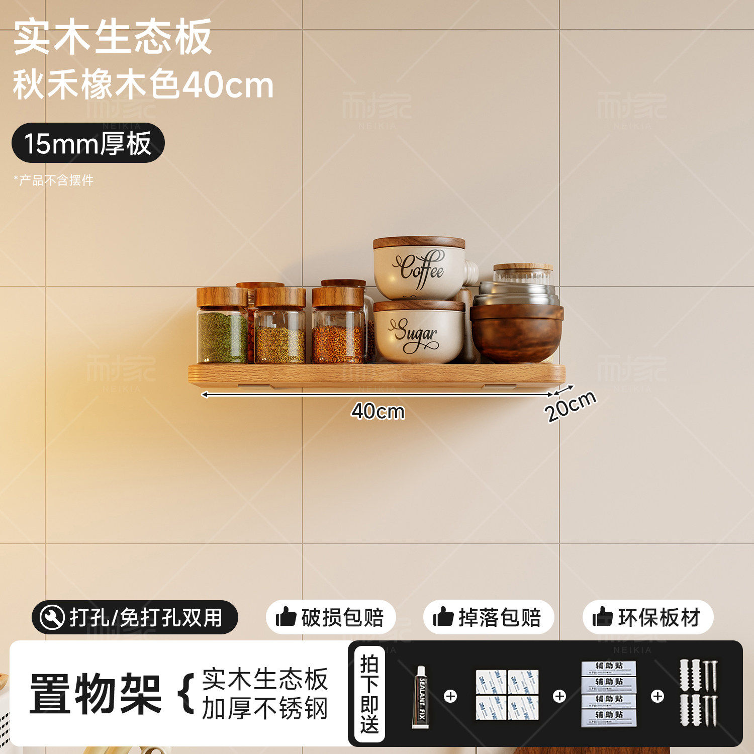 HomeProducts实木厨房置物架落地多层微波炉多功能切菜工作台墙上一字板收纳架