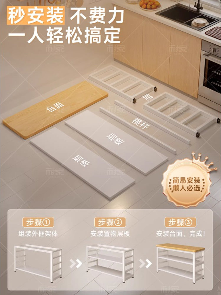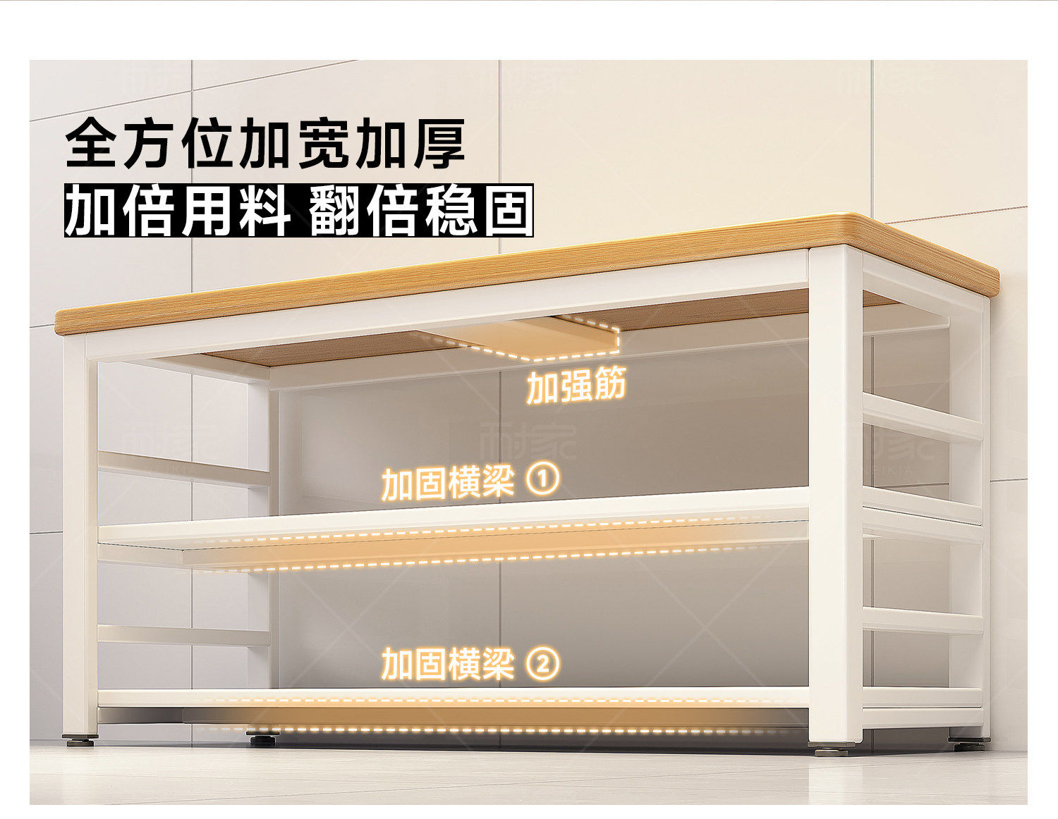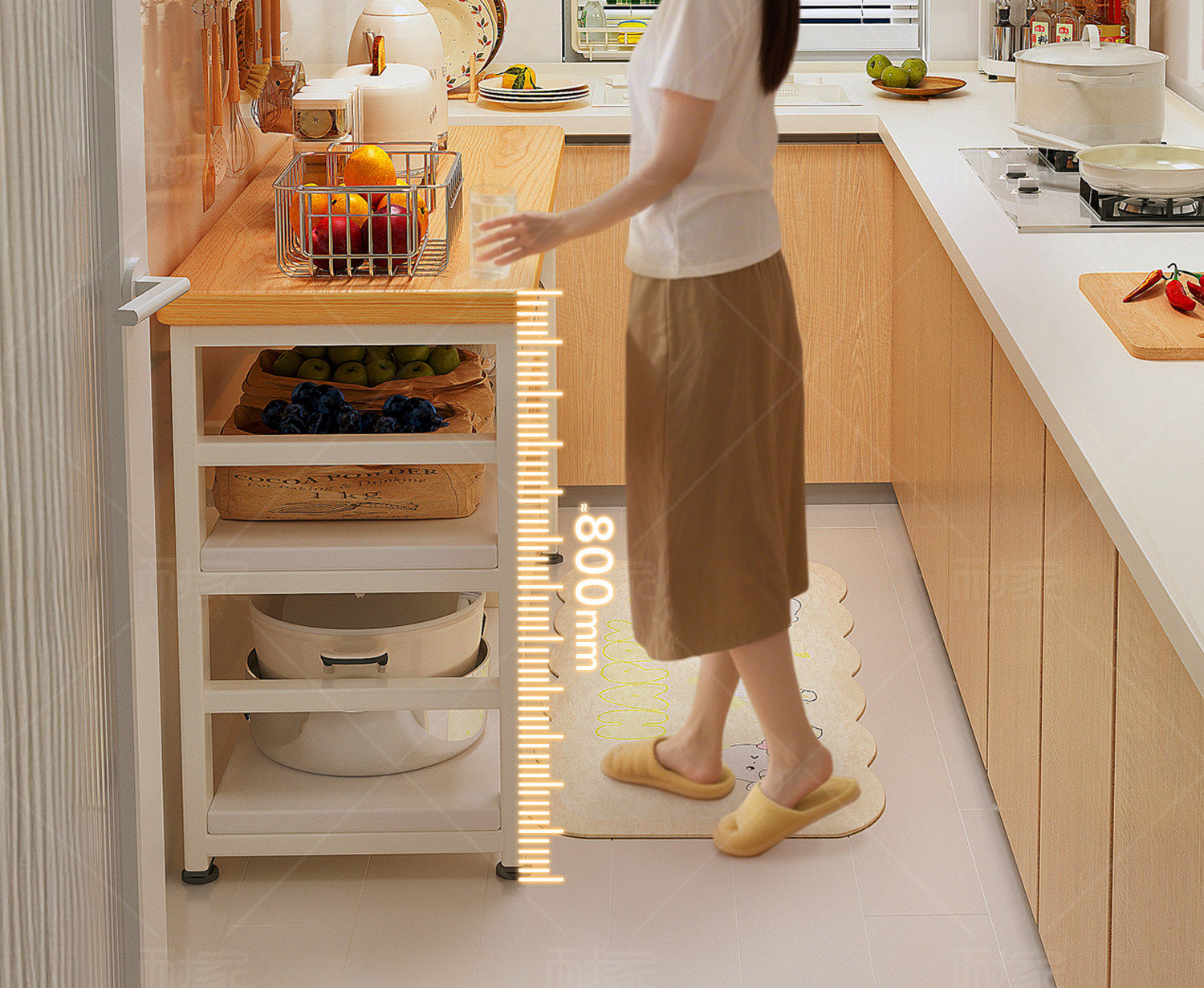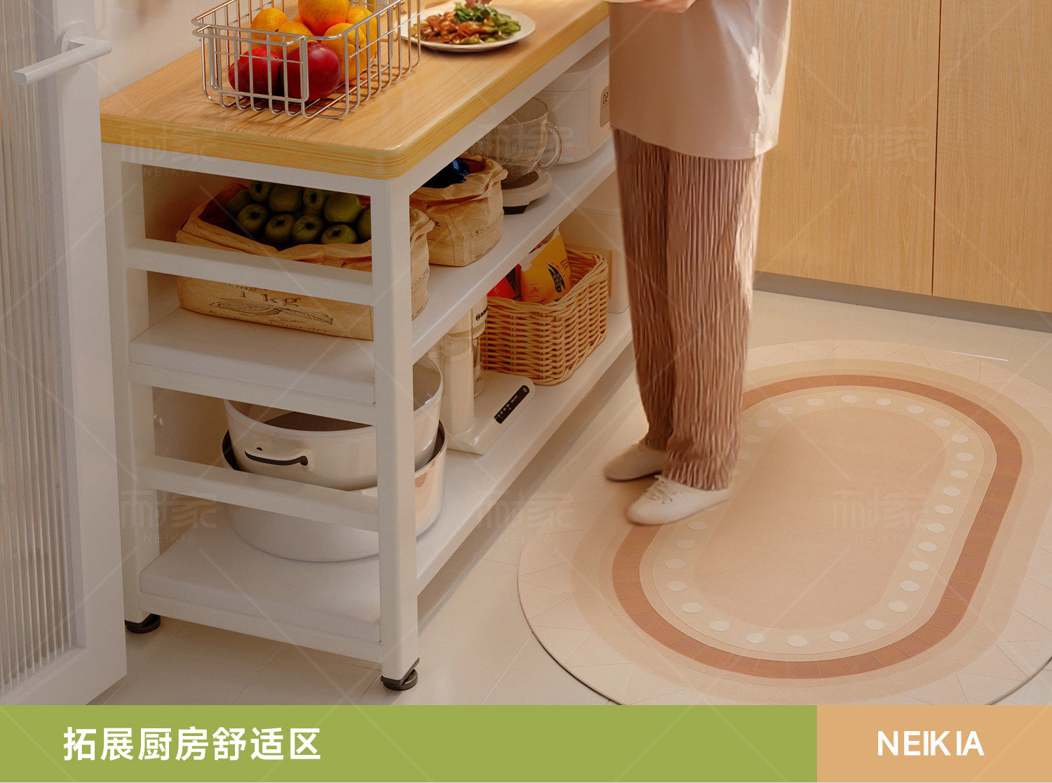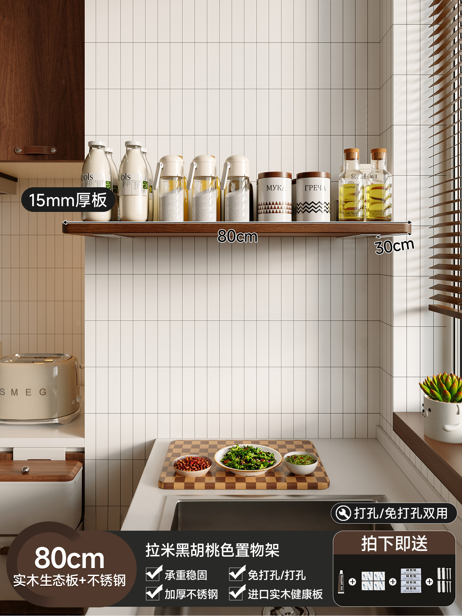 HomeProducts实木厨房置物架落地多层微波炉多功能切菜工作台墙上一字板收纳架