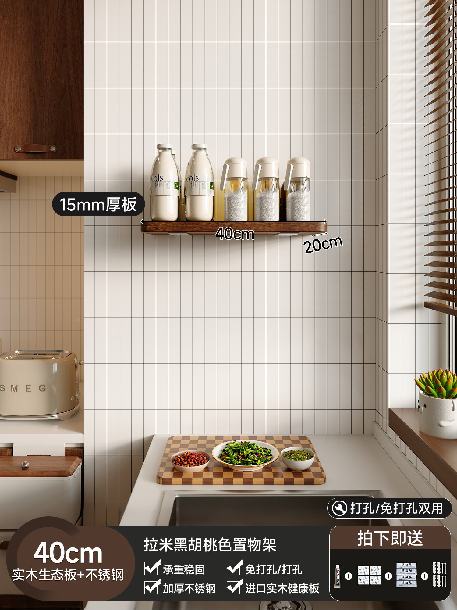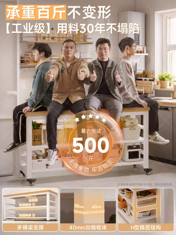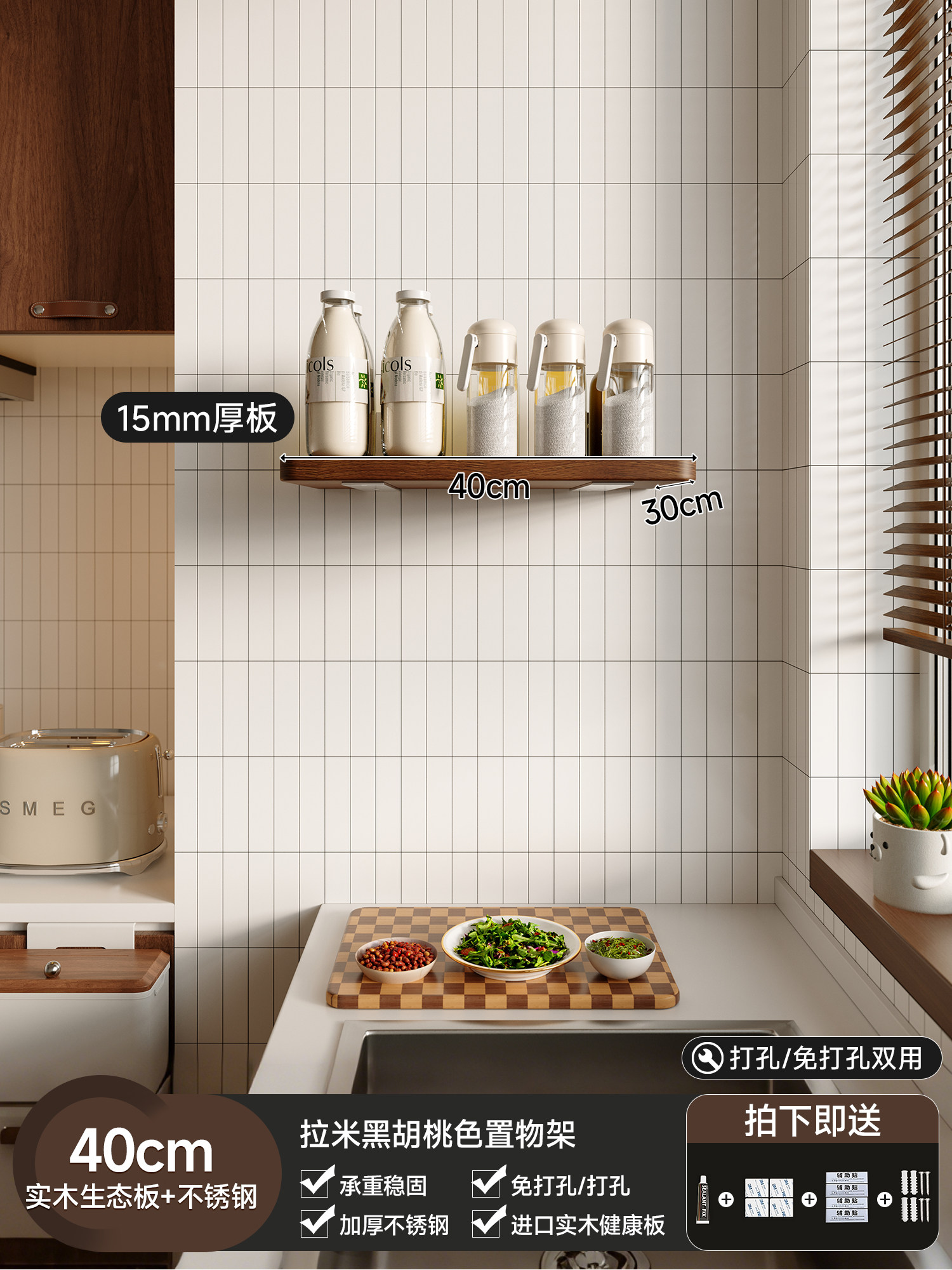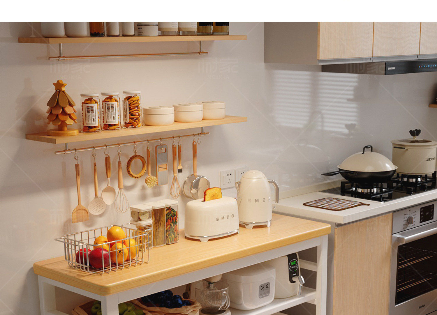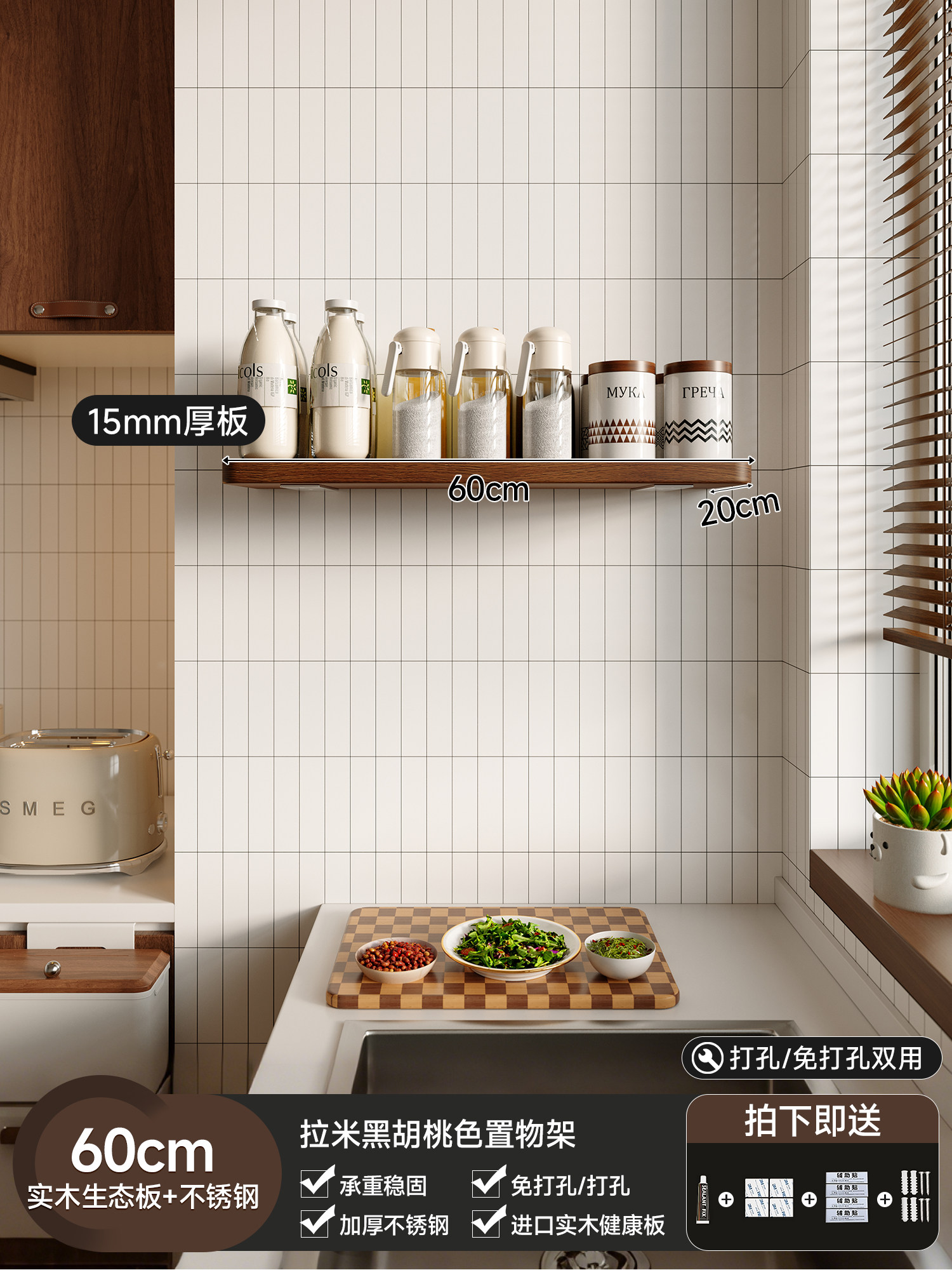 HomeProducts实木厨房置物架落地多层微波炉多功能切菜工作台墙上一字板收纳架