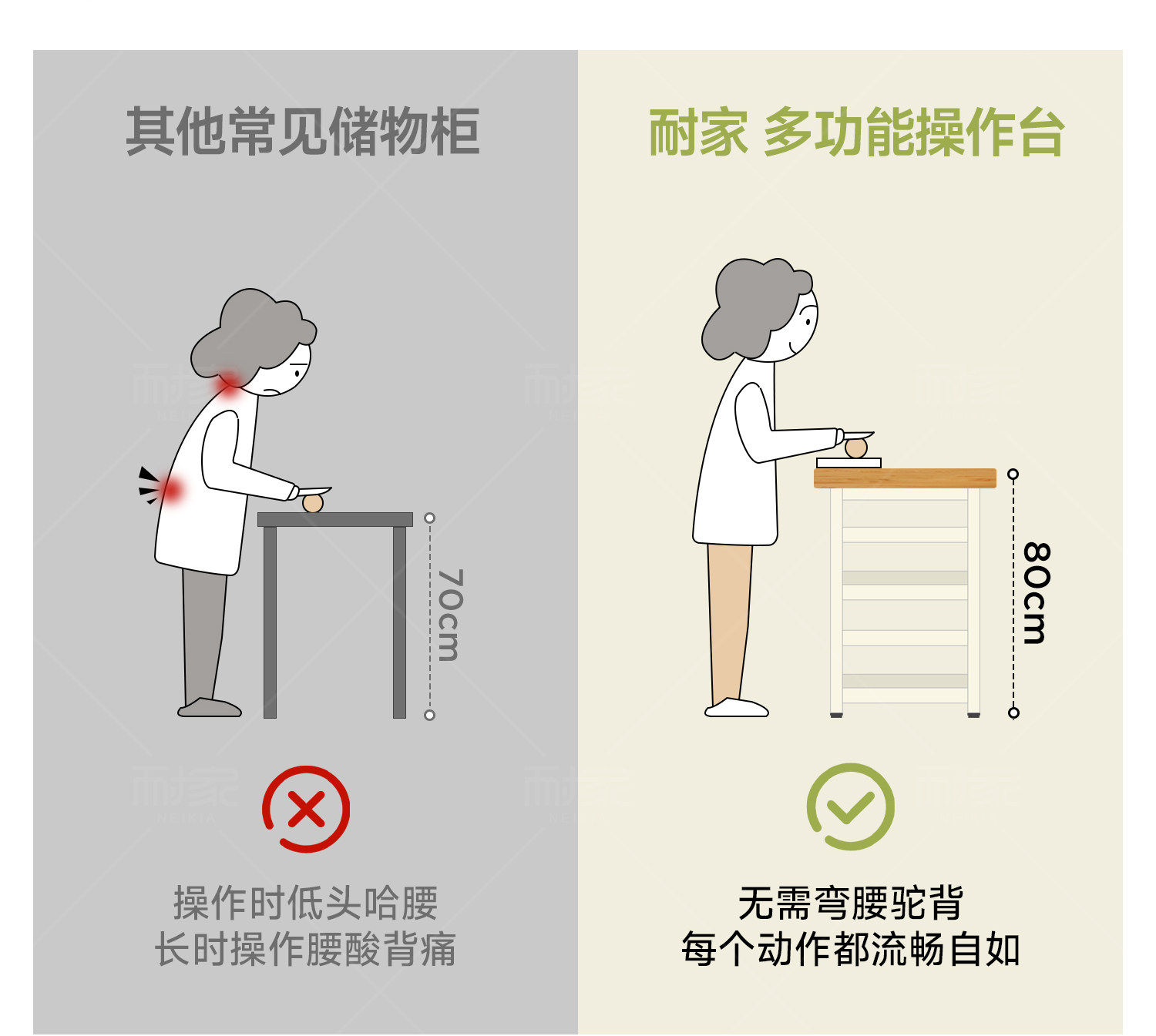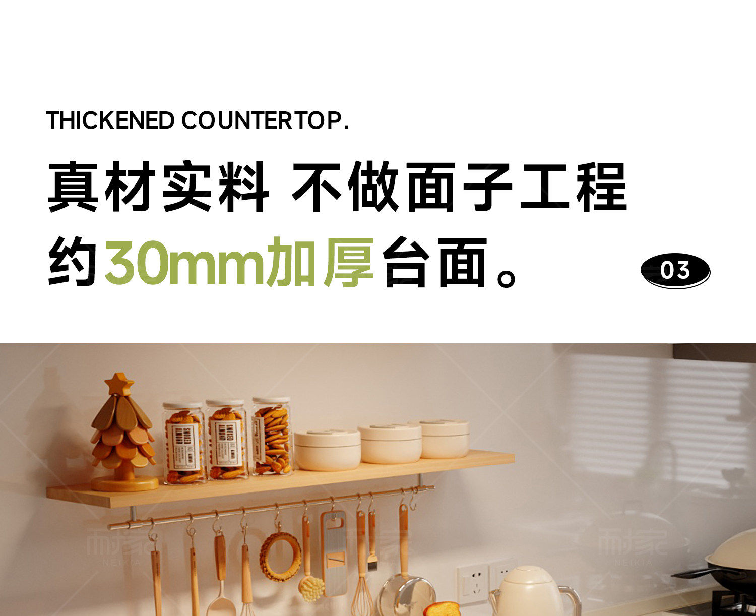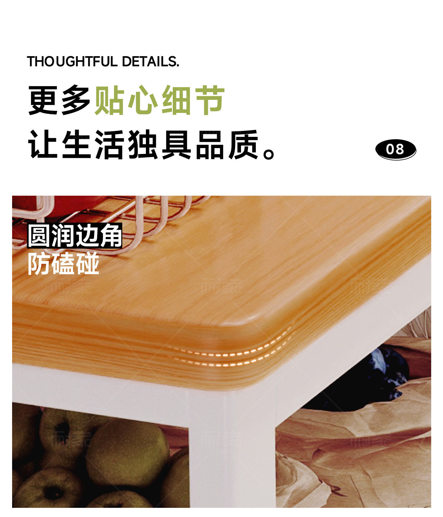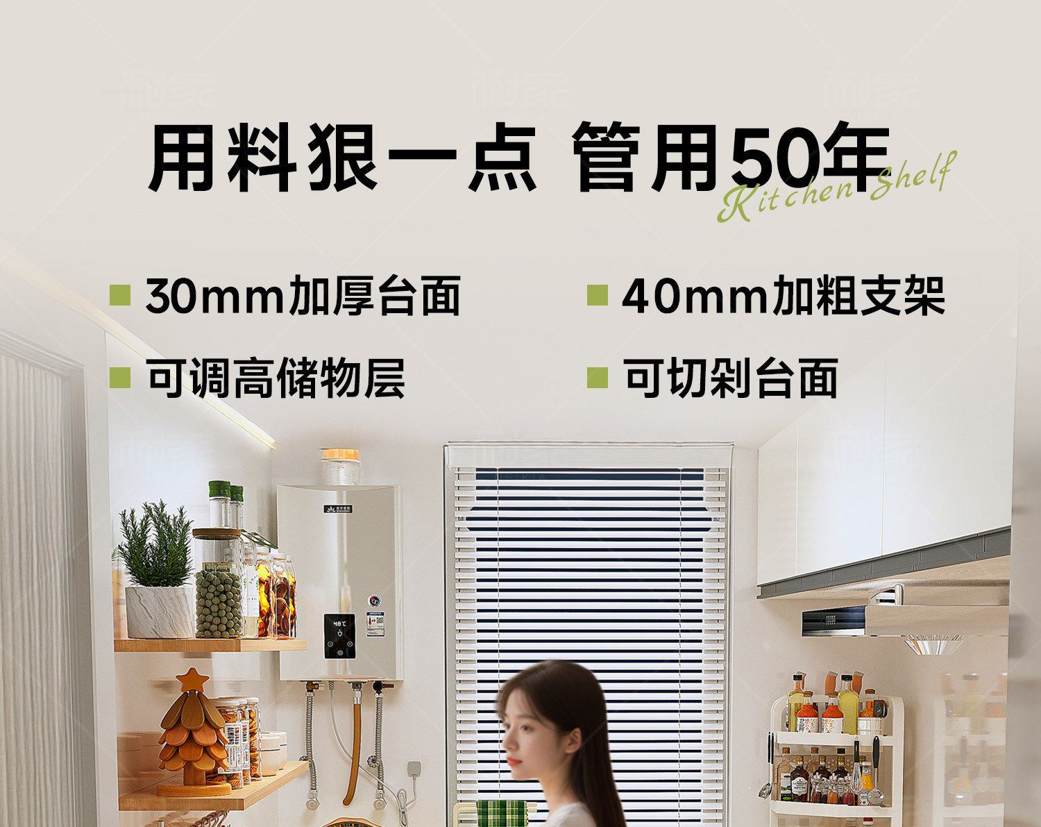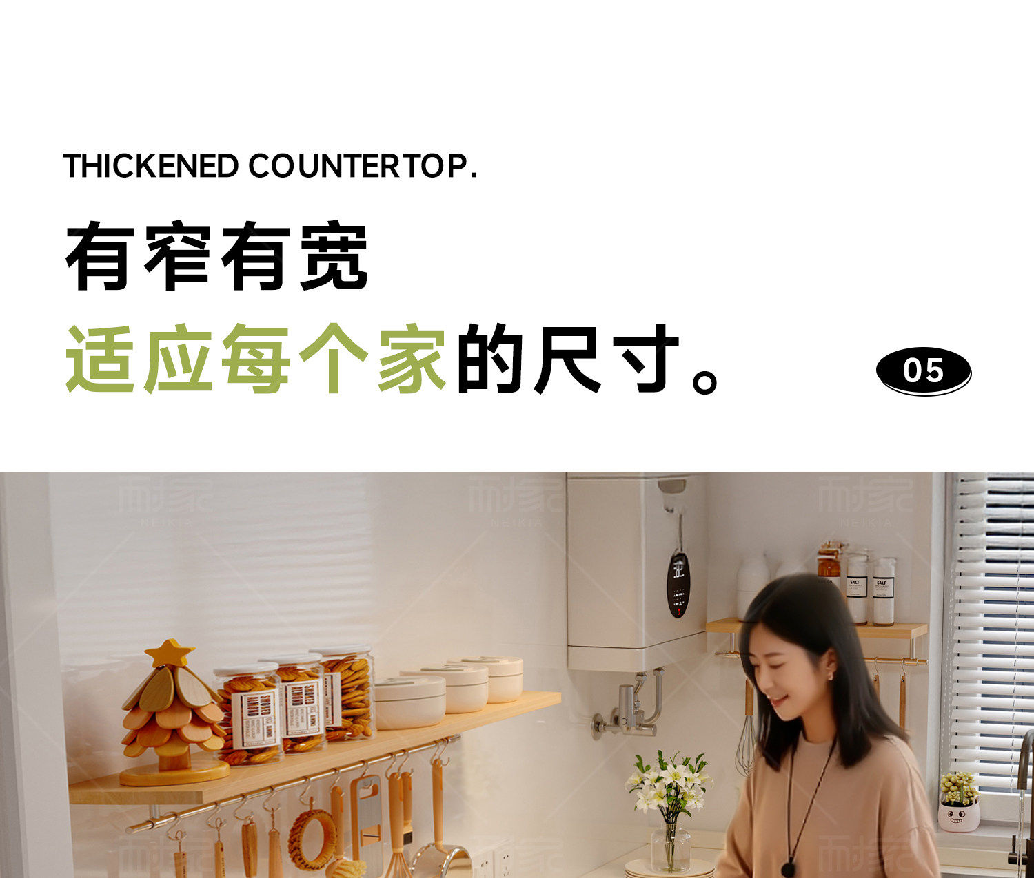 HomeProducts实木厨房置物架落地多层微波炉多功能切菜工作台墙上一字板收纳架