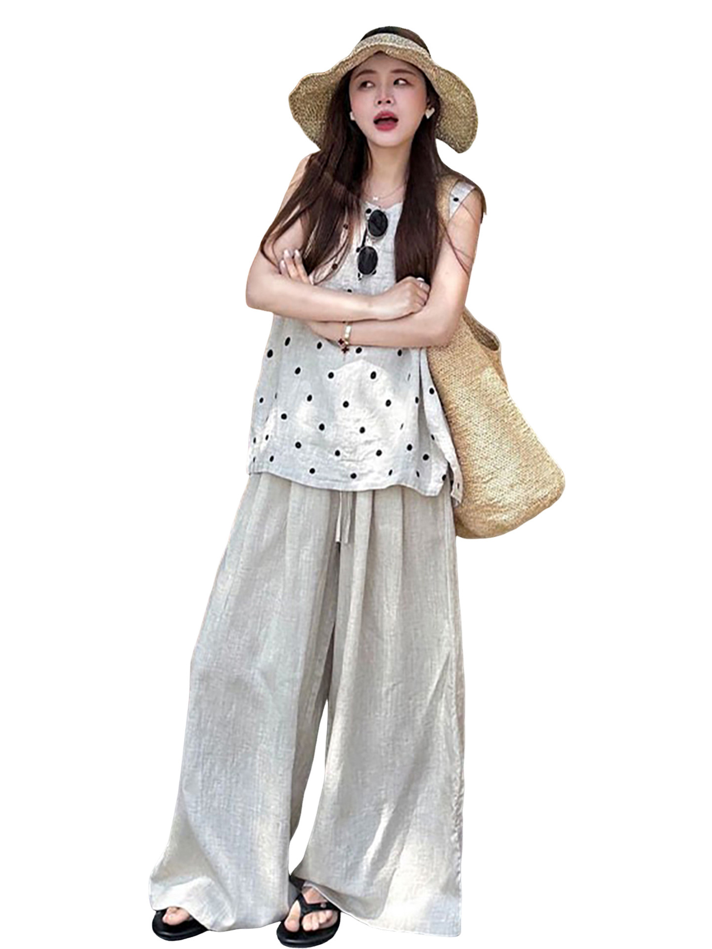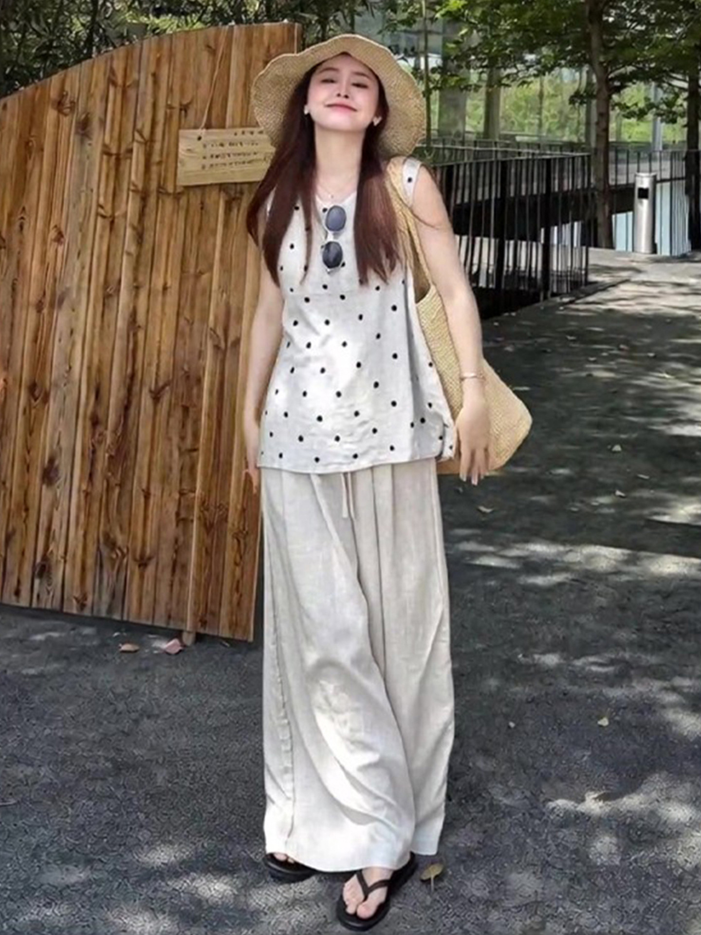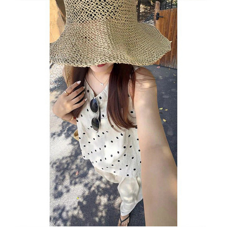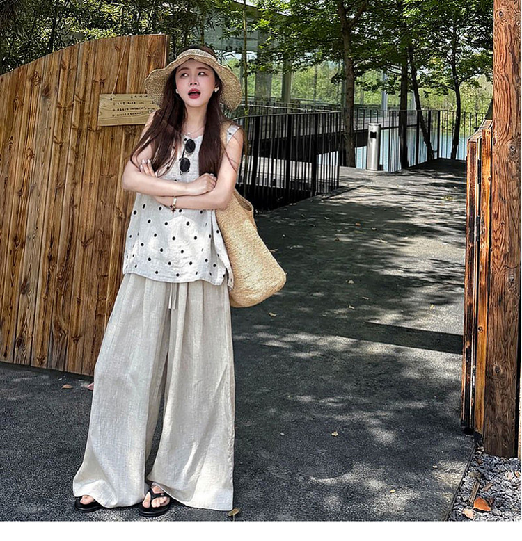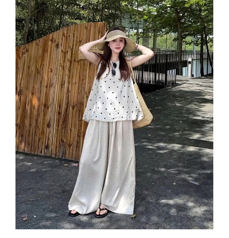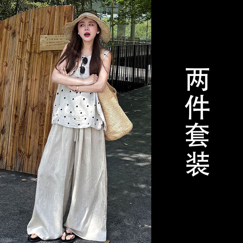 独特漂亮韩系ootd超火穿搭一整套2026新款夏季波点上衣阔腿裤套装