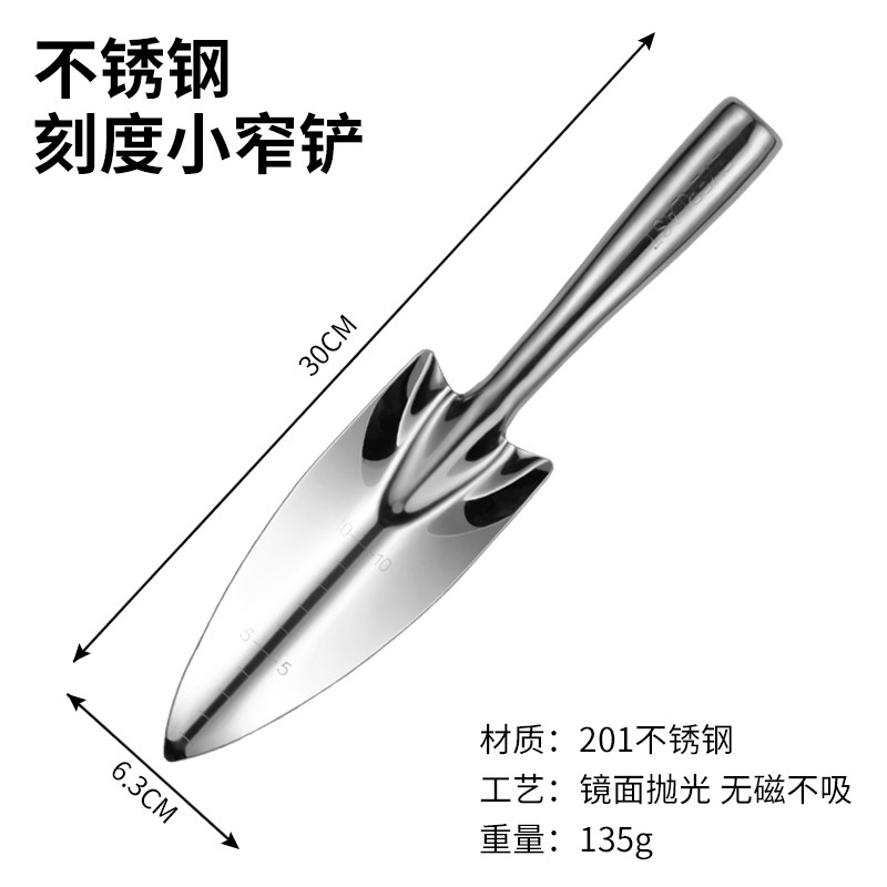 一体成型园艺小铲子园艺小铲子不锈钢赶海挖野菜专用儿童挖土工具