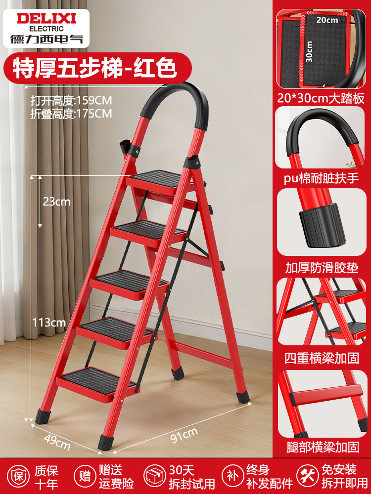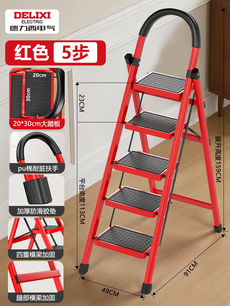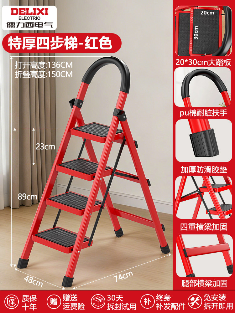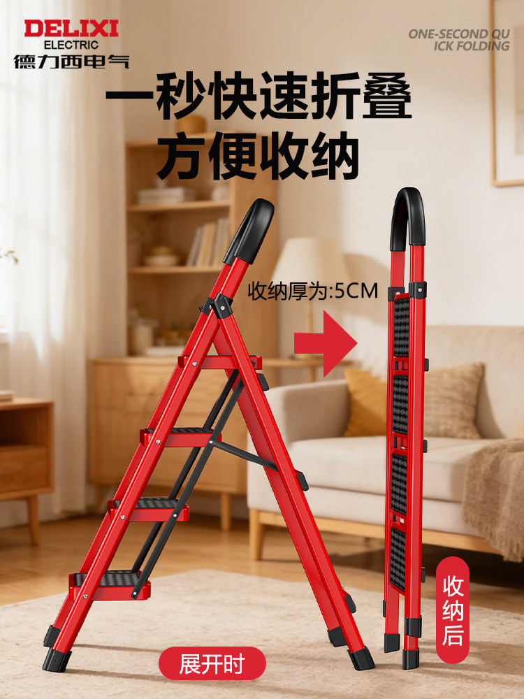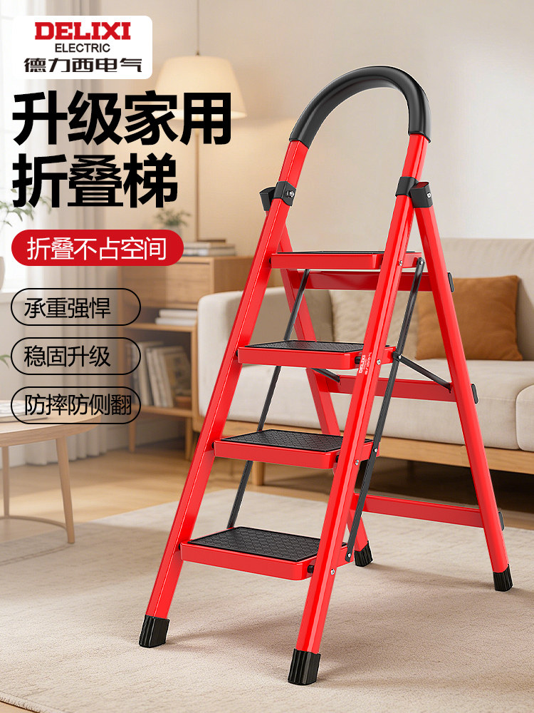 德力西电气家用梯子折叠多功能伸缩室内人字梯小型便携四步爬梯