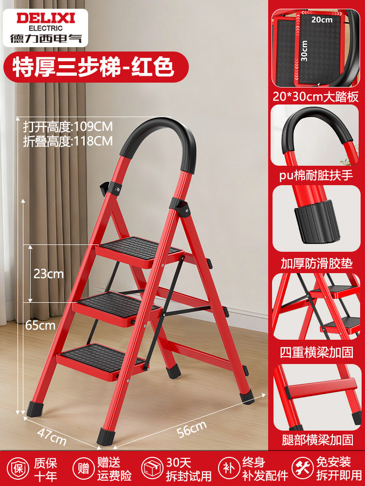 盒装 / 三步梯•118cm•加厚加宽踏板•承重300斤•免安装