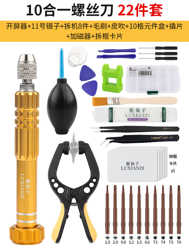 鹿仙子10合1螺丝刀套装手机拆机维修工具小型精密六角十字螺丝批