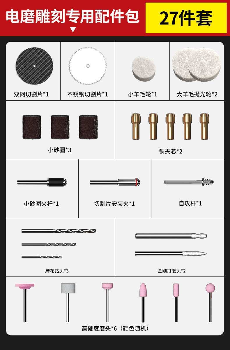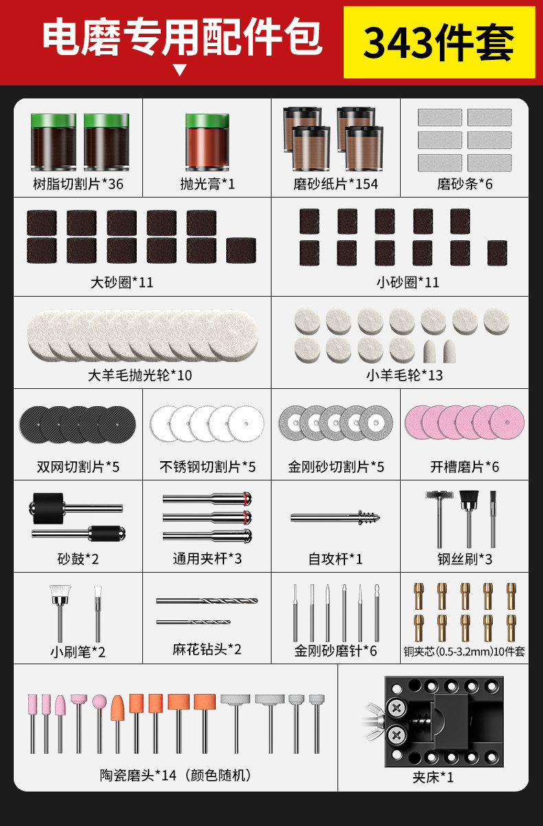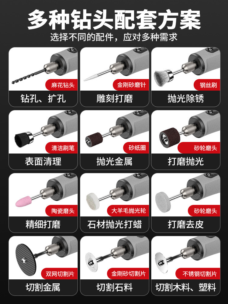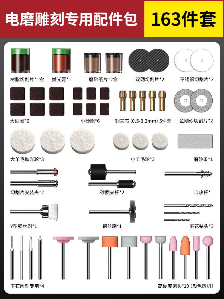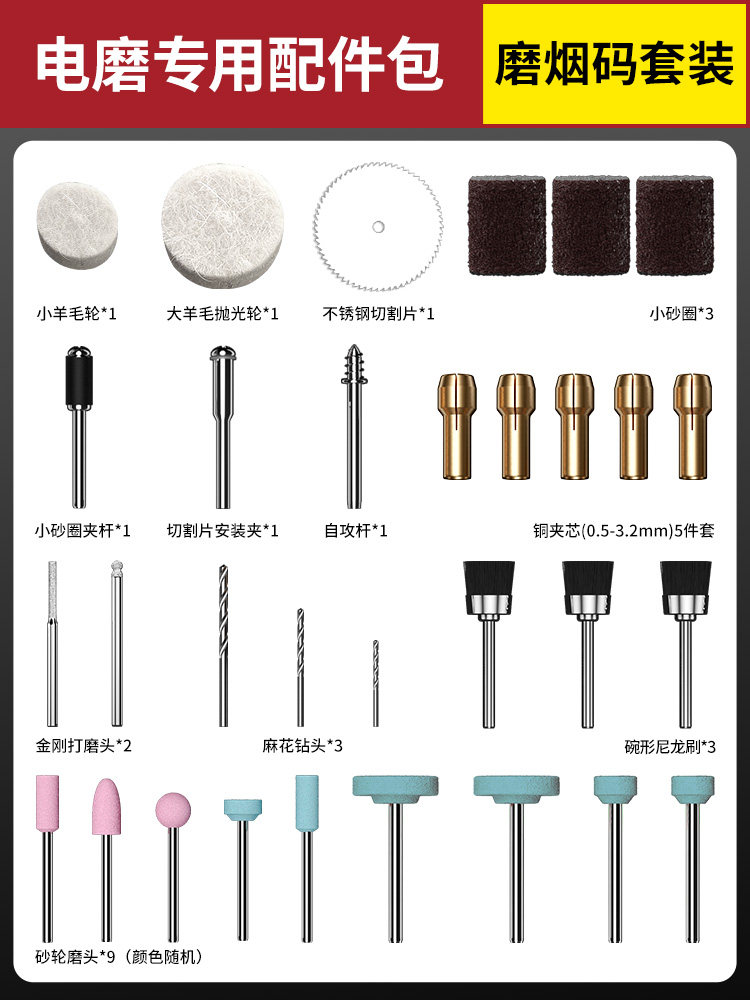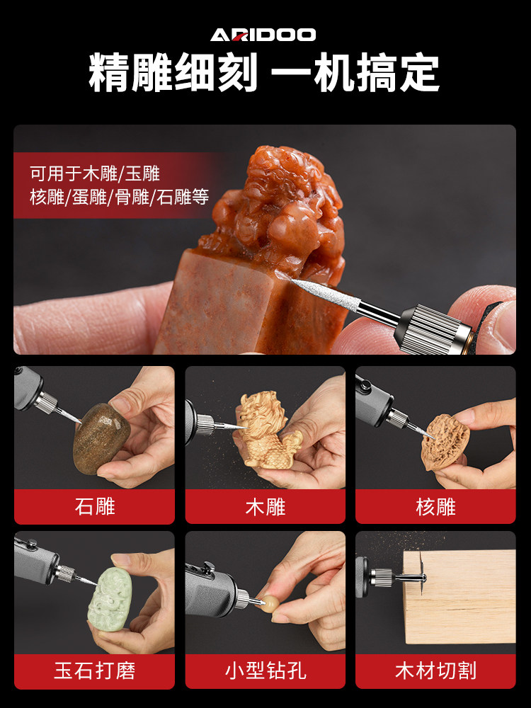 艾锐盾电磨机配件套装玉石打磨抛光小型磨头磨针根雕雕刻电磨工具