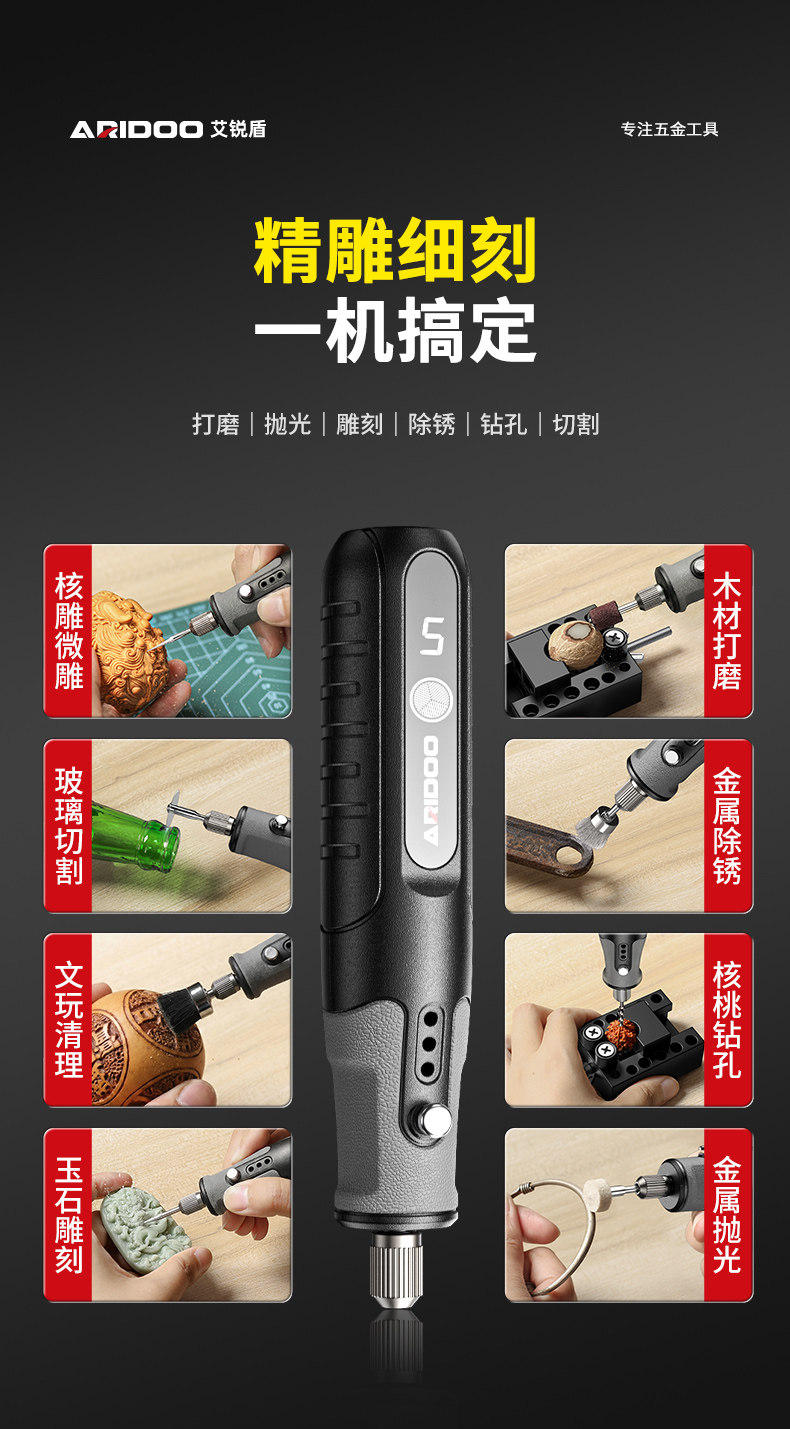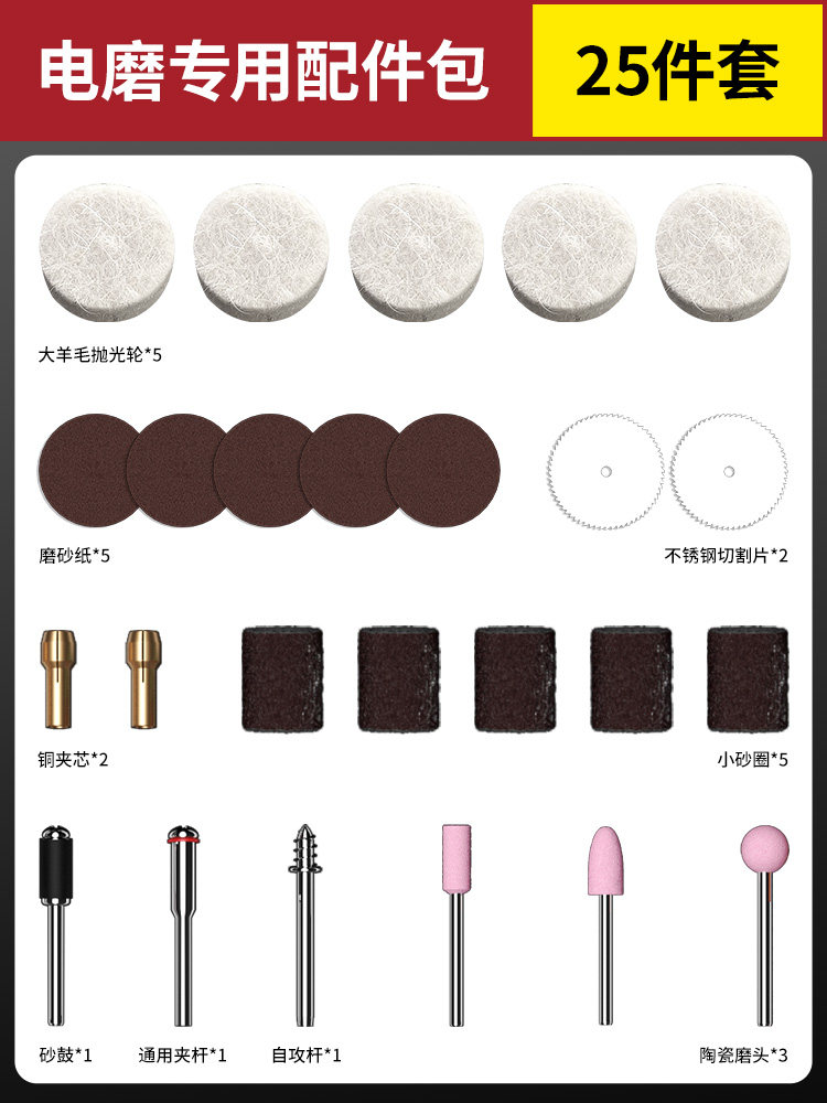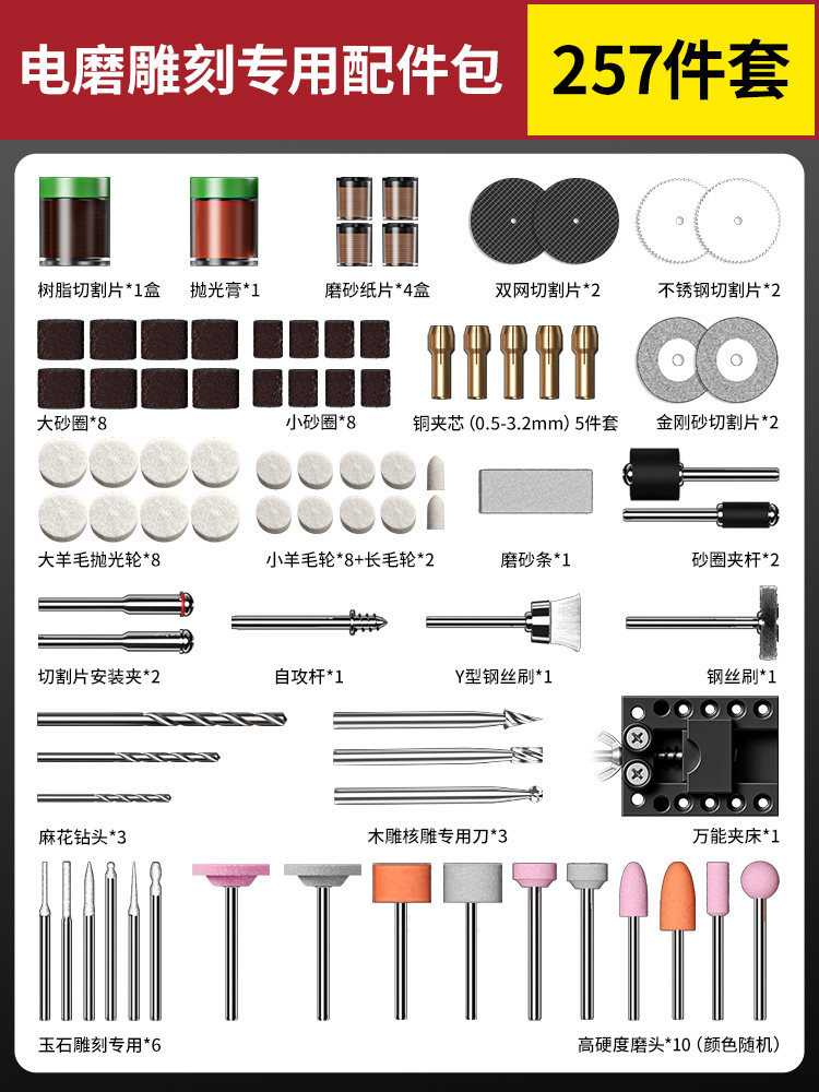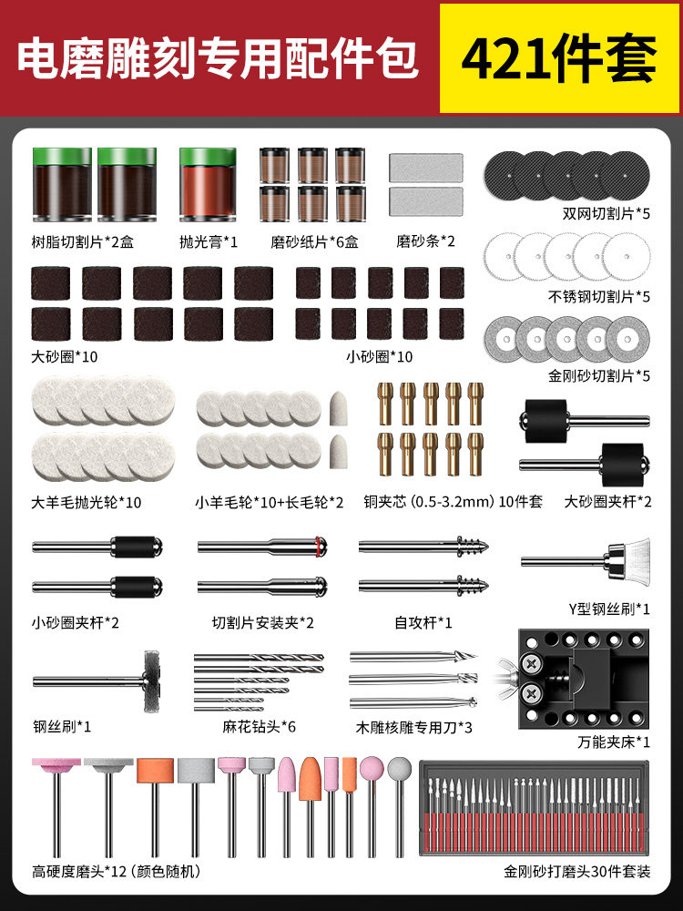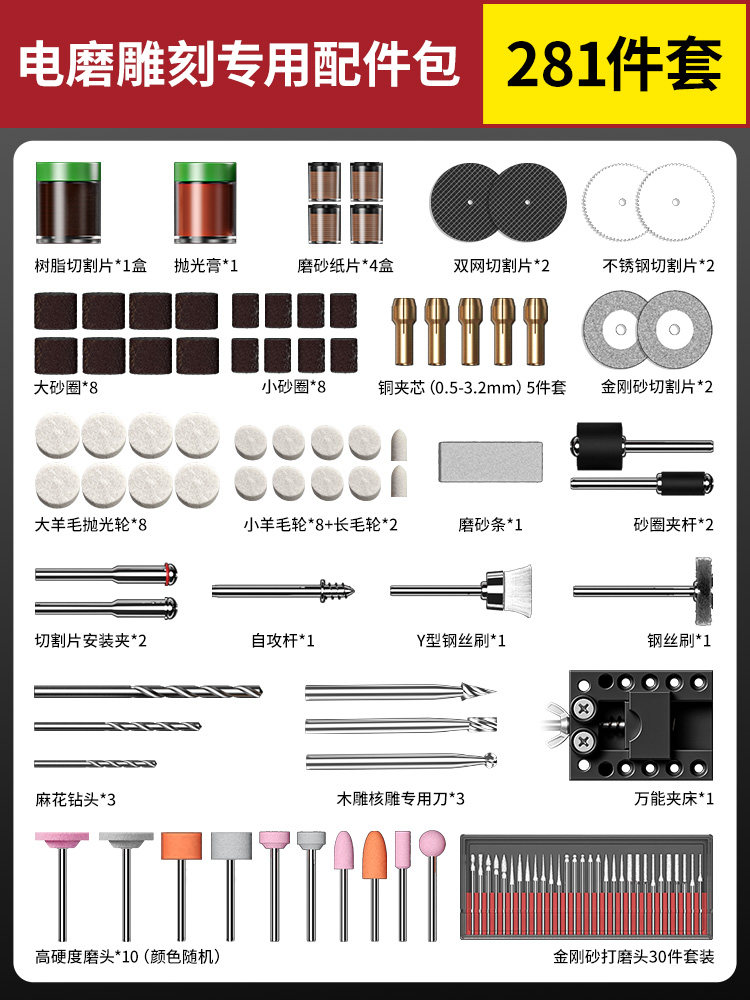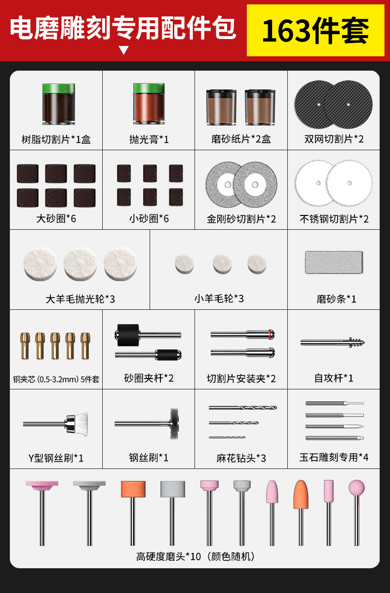 艾锐盾电磨机配件套装玉石打磨抛光小型磨头磨针根雕雕刻电磨工具