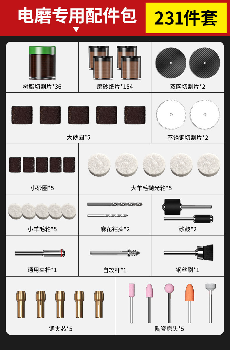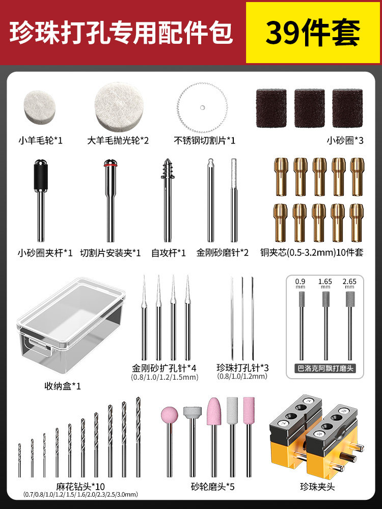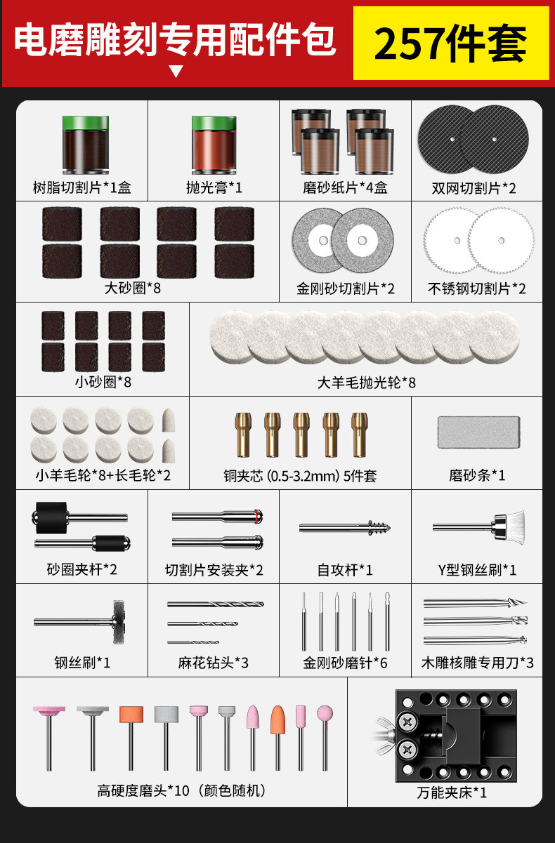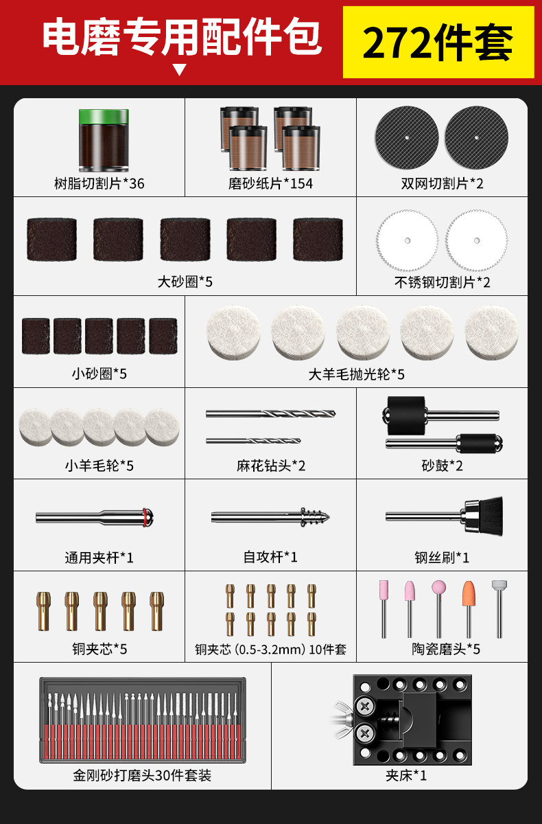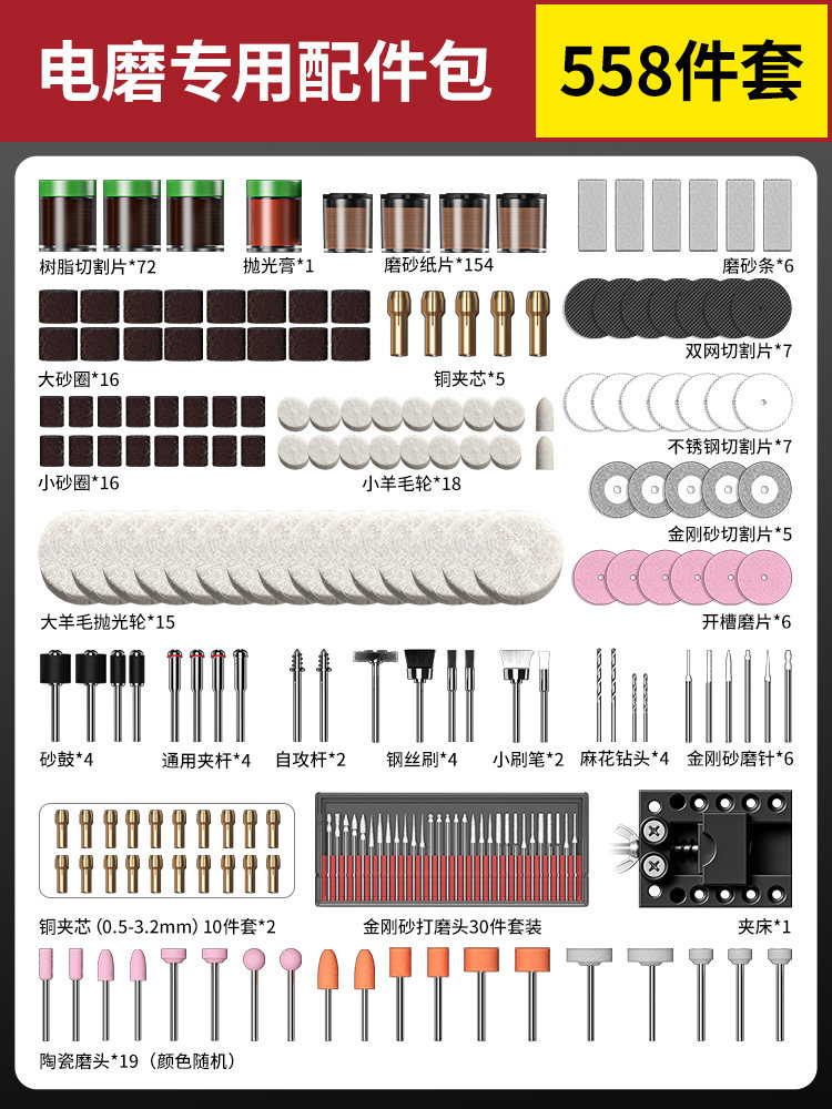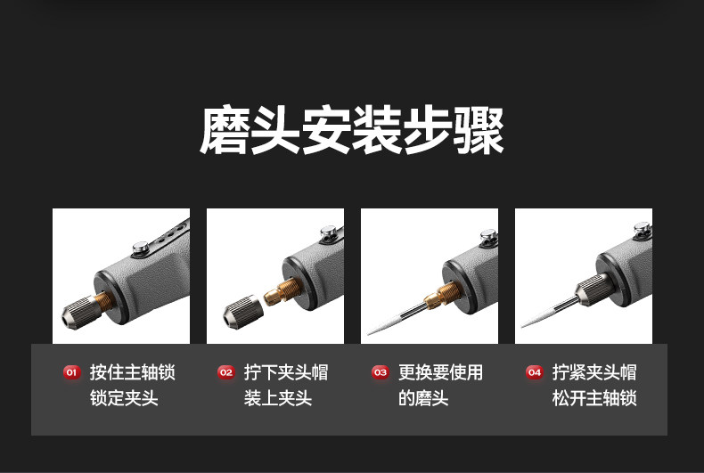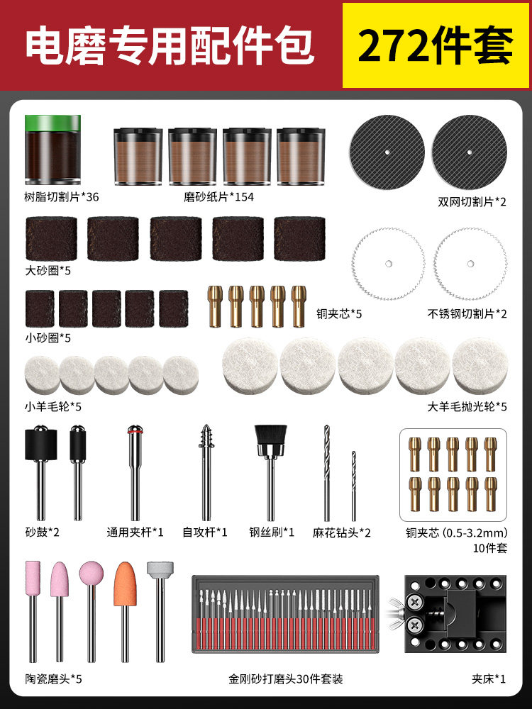 艾锐盾电磨机配件套装玉石打磨抛光小型磨头磨针根雕雕刻电磨工具