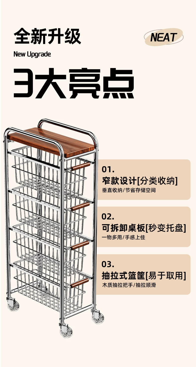 中古风厨房置物架小推车多功能夹缝多层果蔬菜篮零食可移动收纳架
