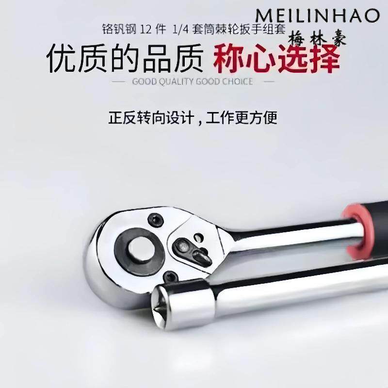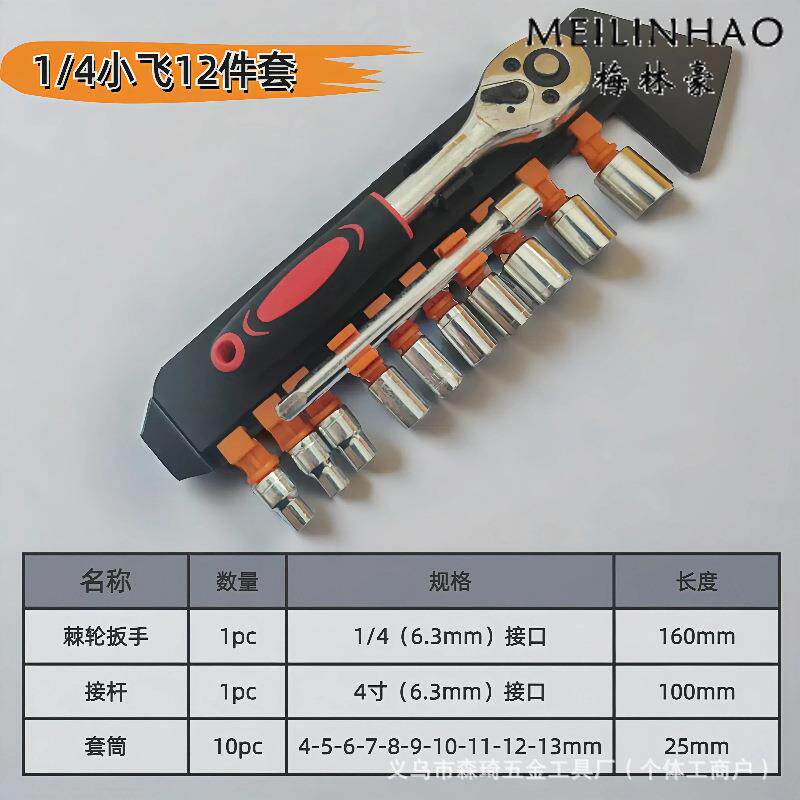 小飞12件套1/4套筒扳手套装全套棘轮扳手汽修工具箱组合套装
