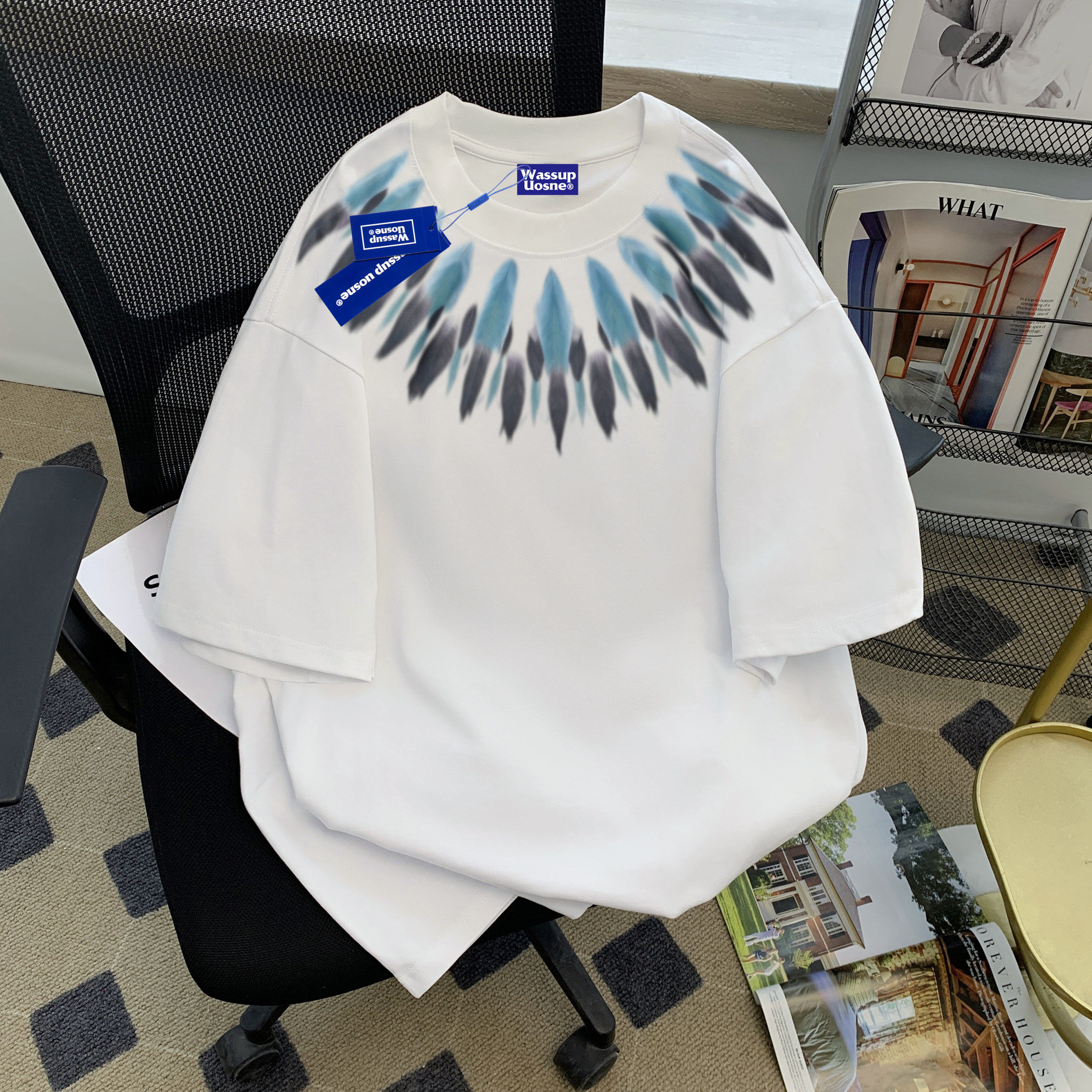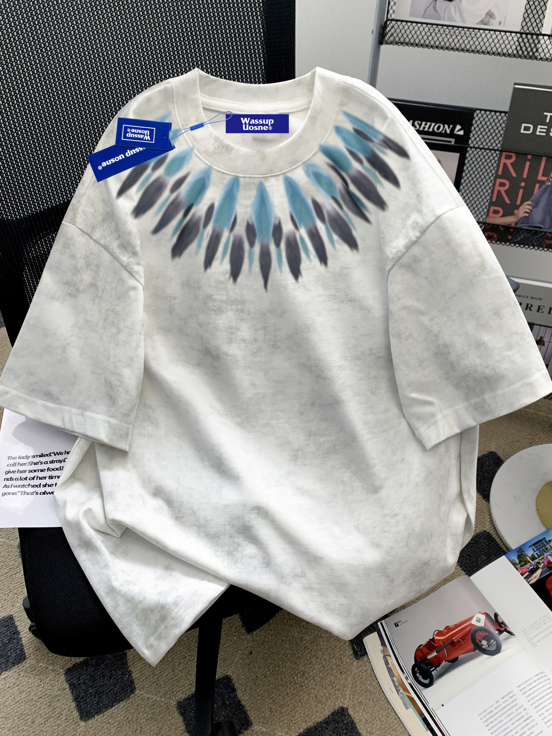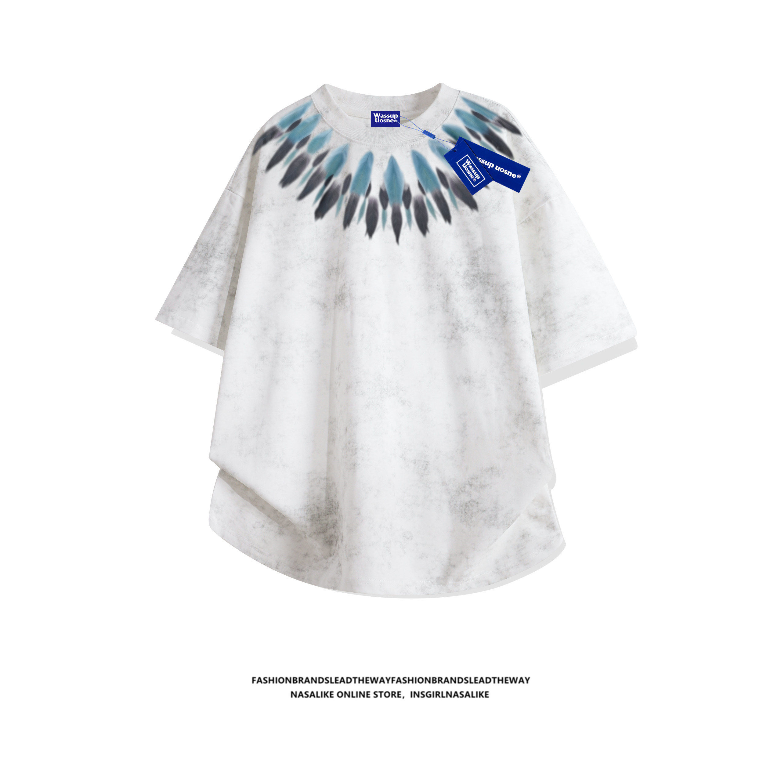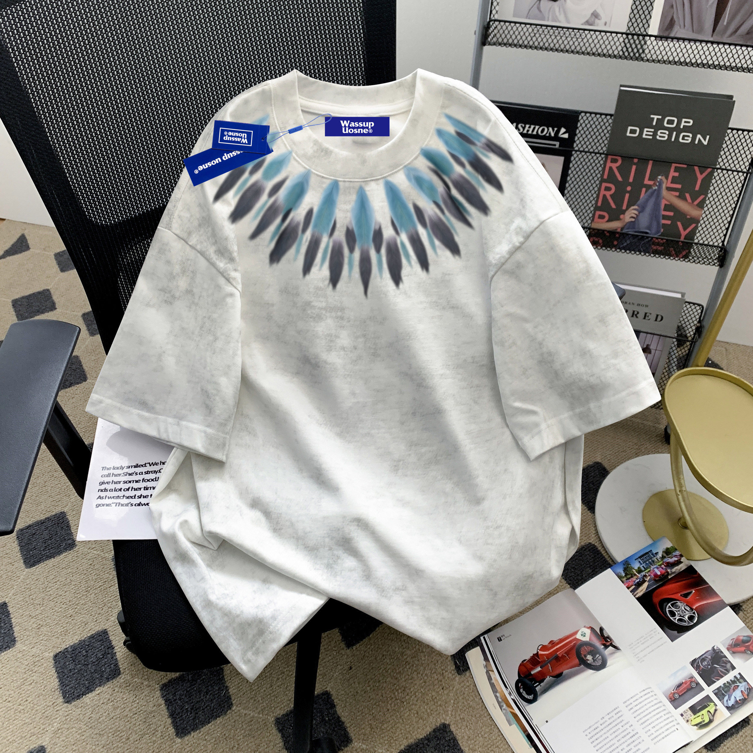 民族风水印花~纯棉美式短袖t恤男女2026新款春夏季情侣装半袖上衣