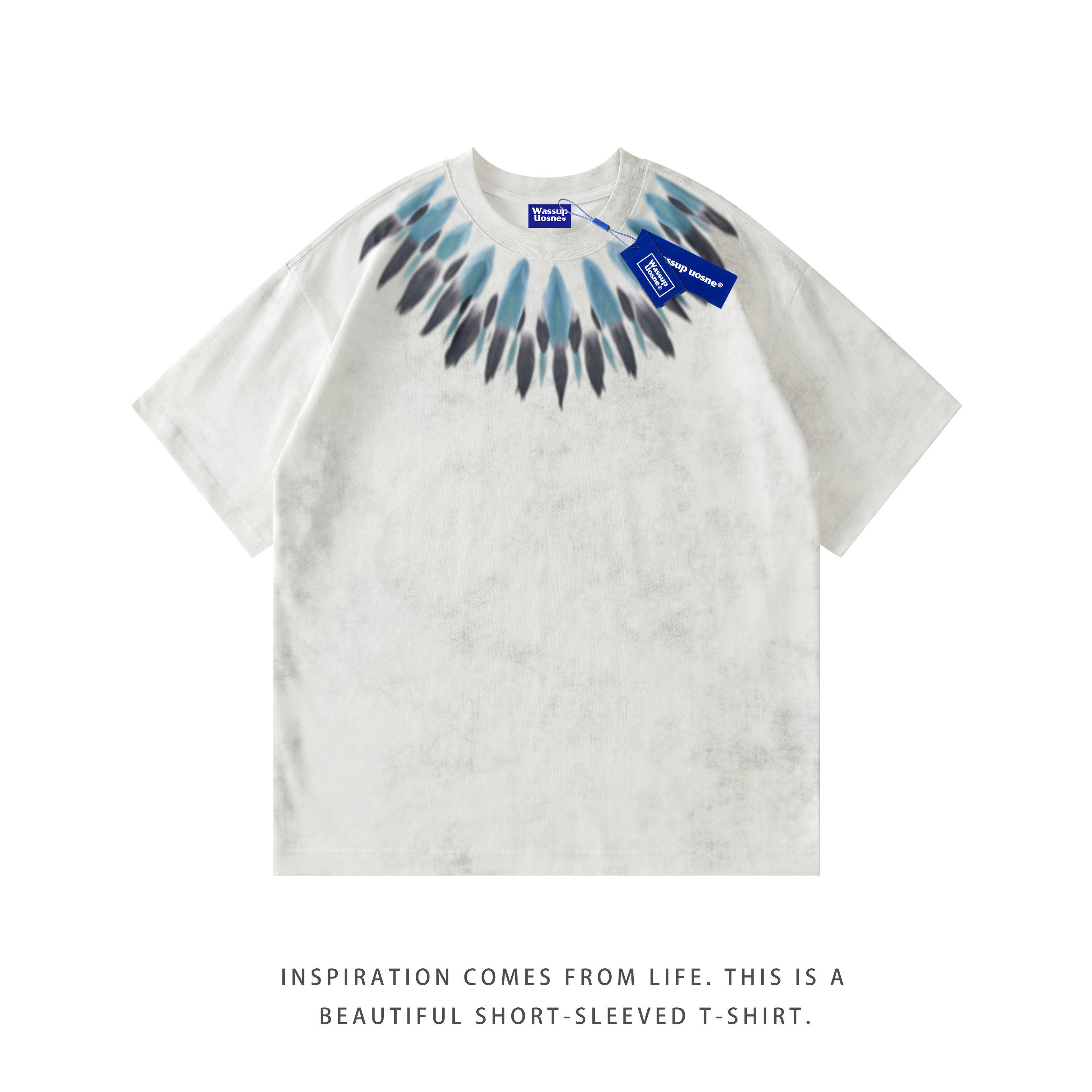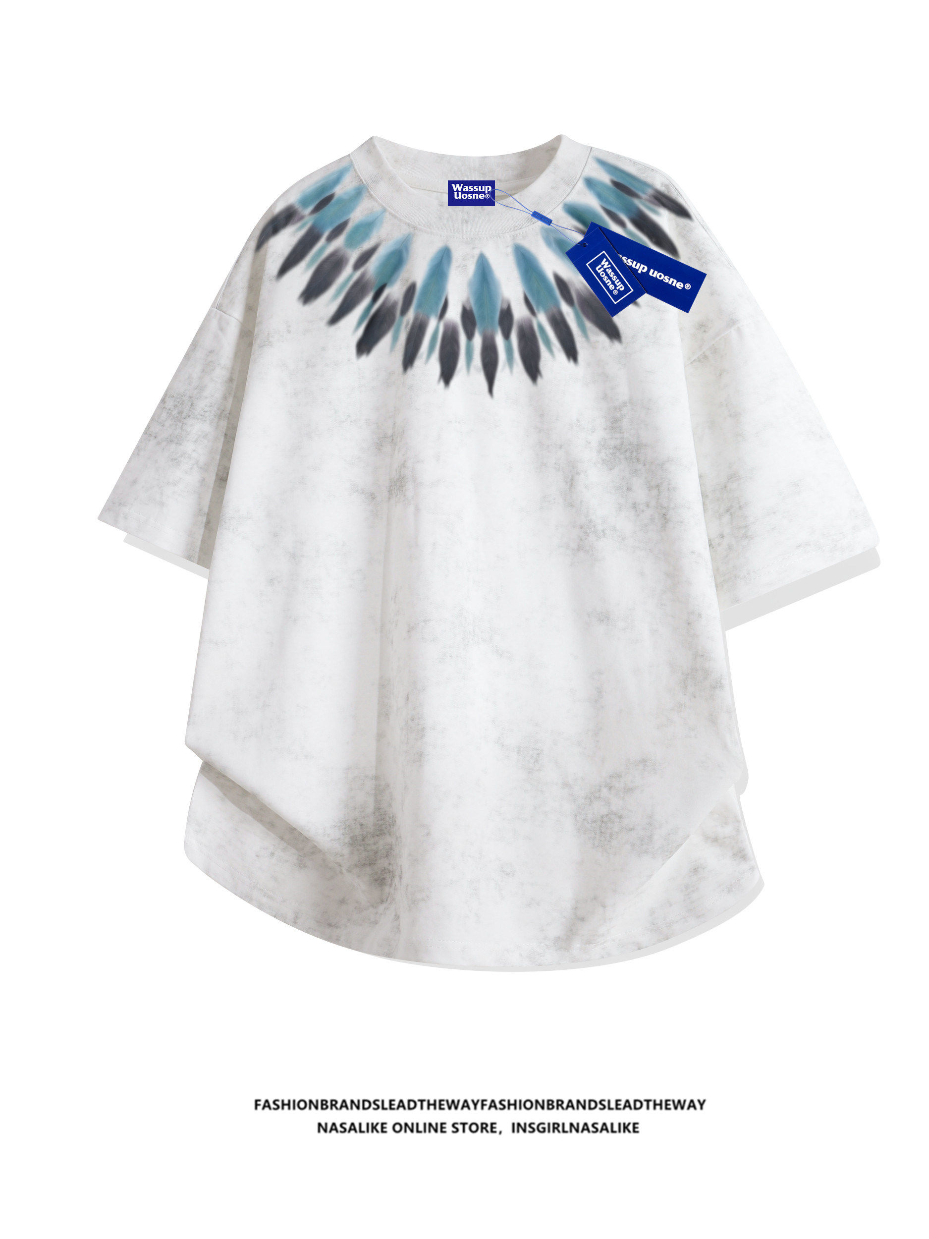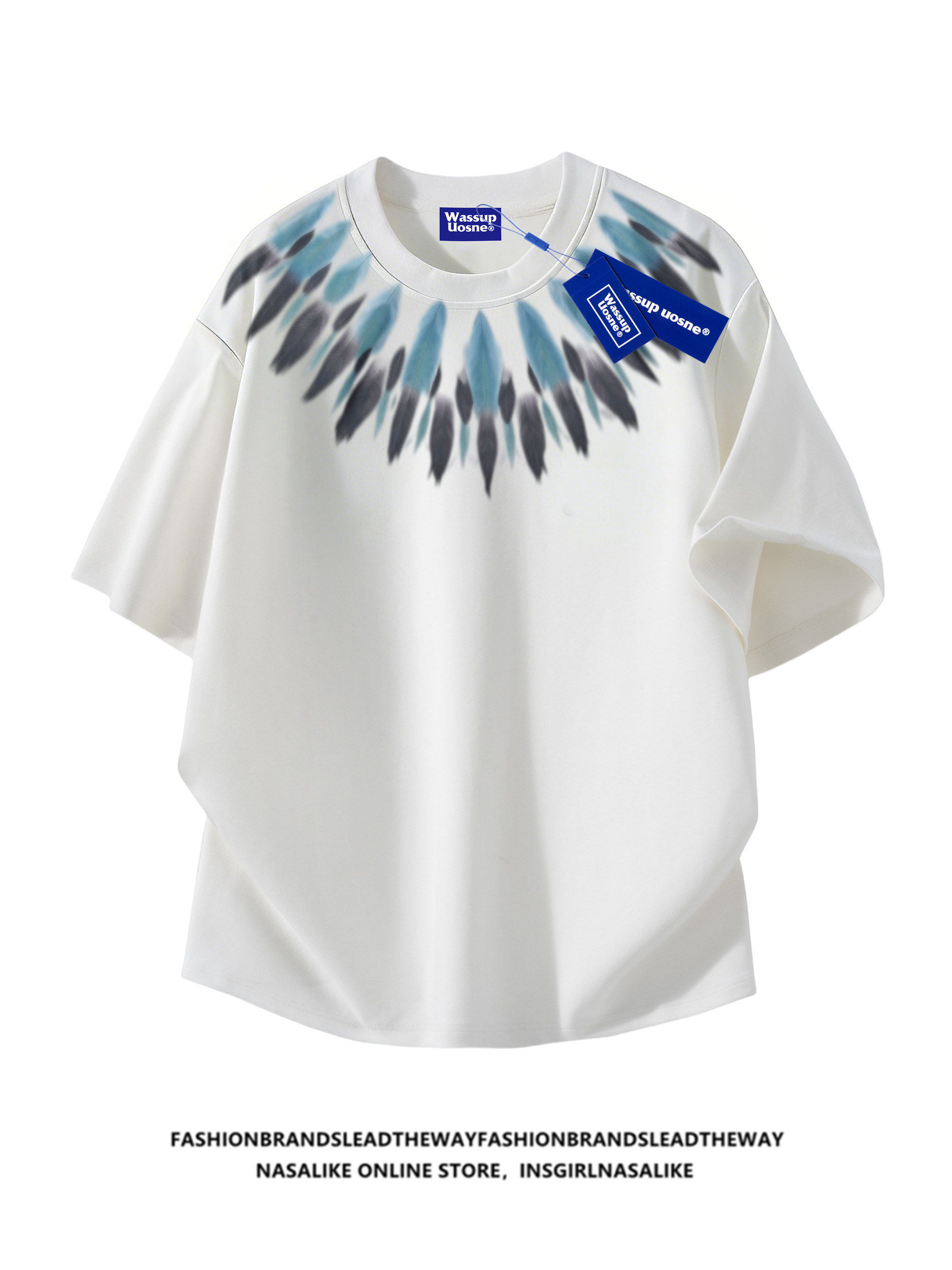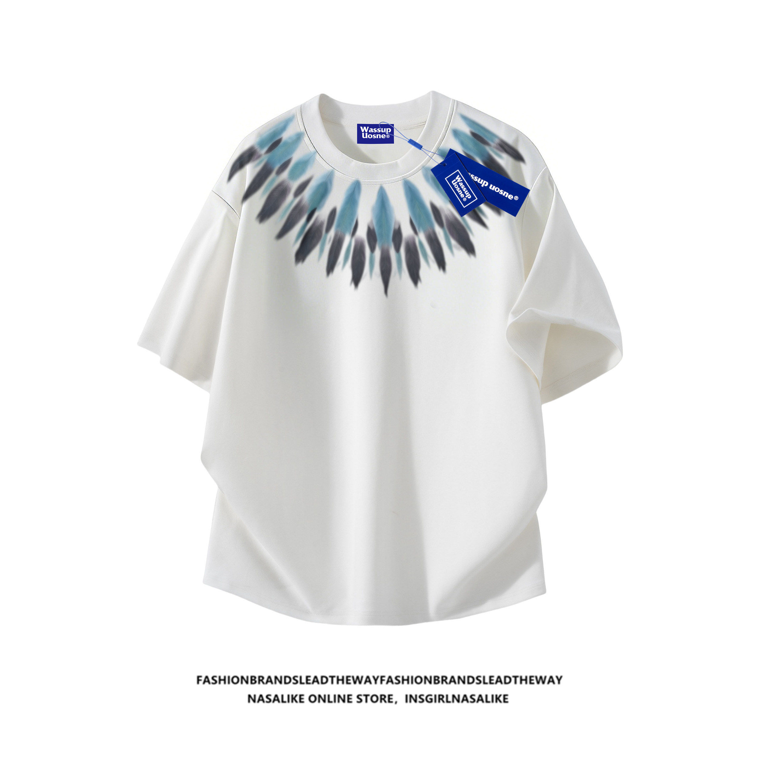 民族风水印花~纯棉美式短袖t恤男女2026新款春夏季情侣装半袖上衣