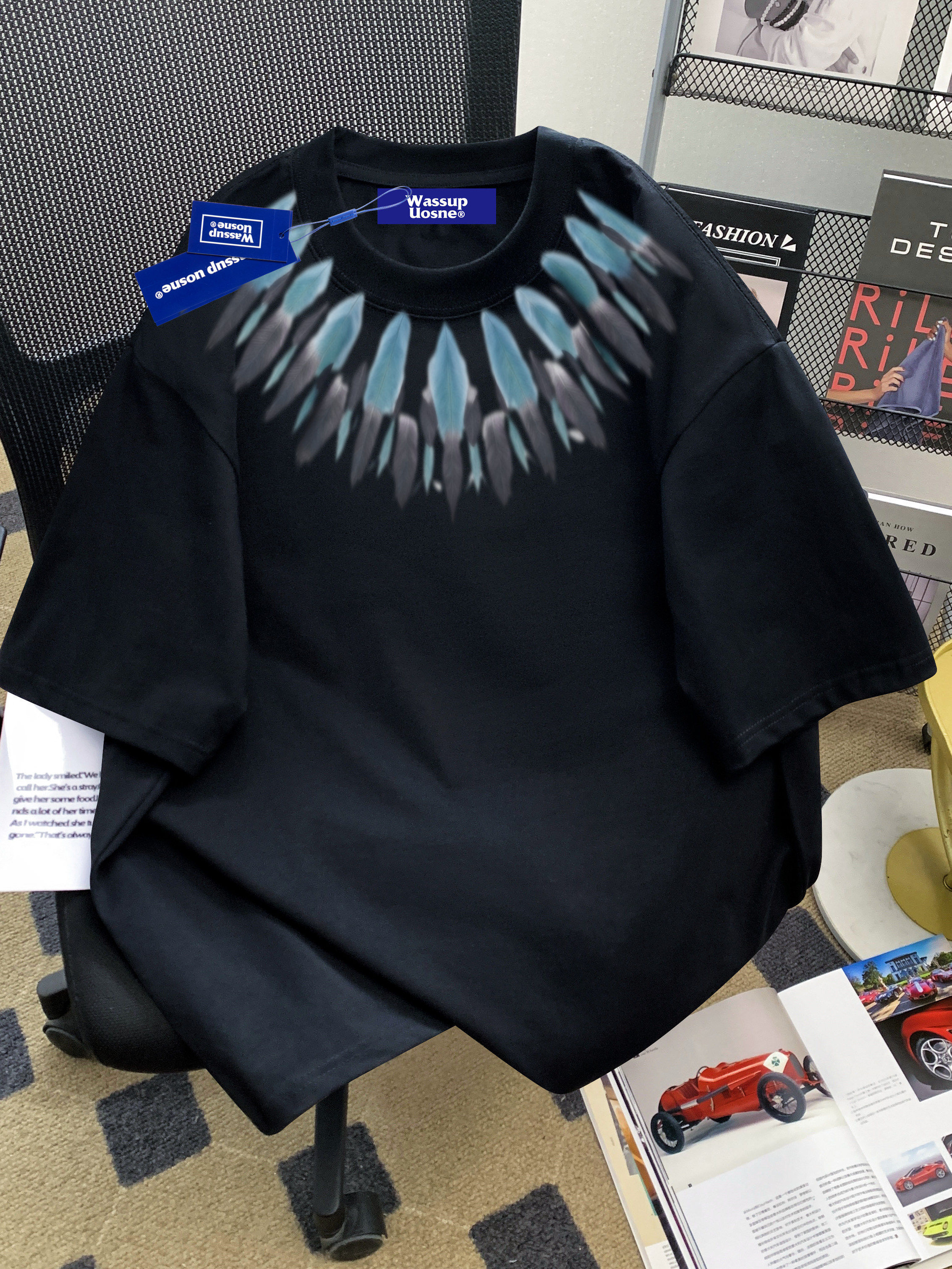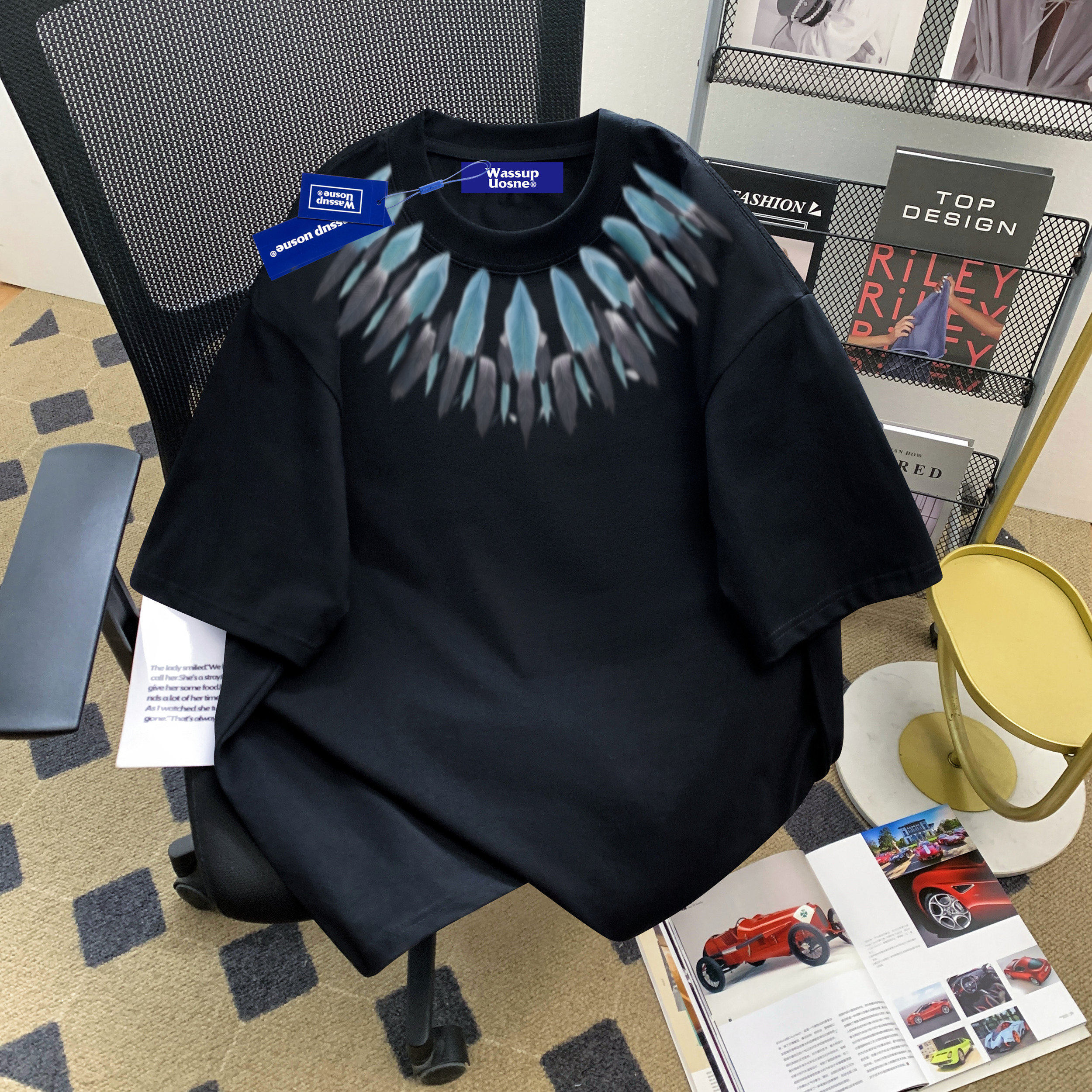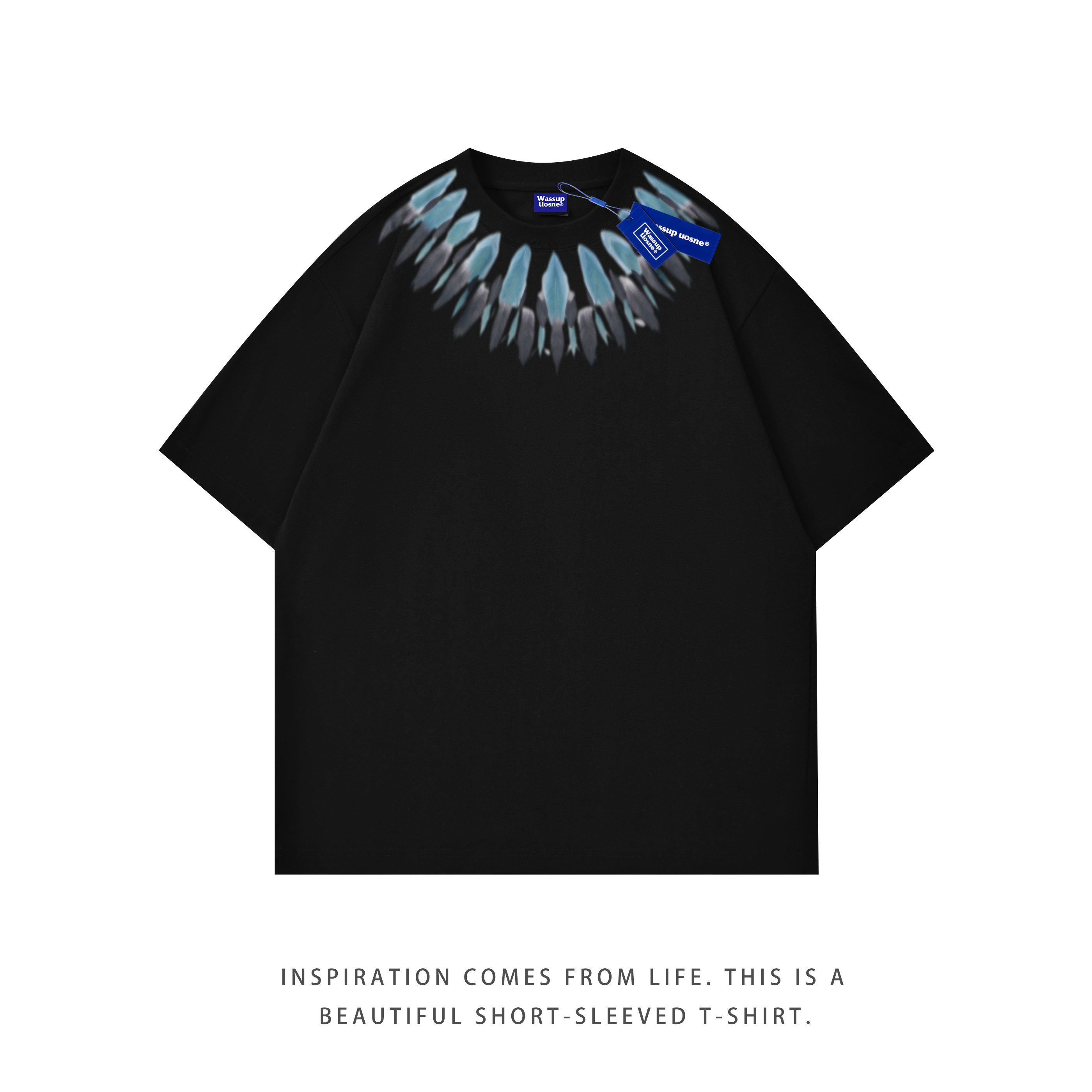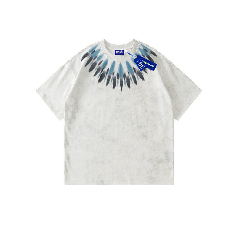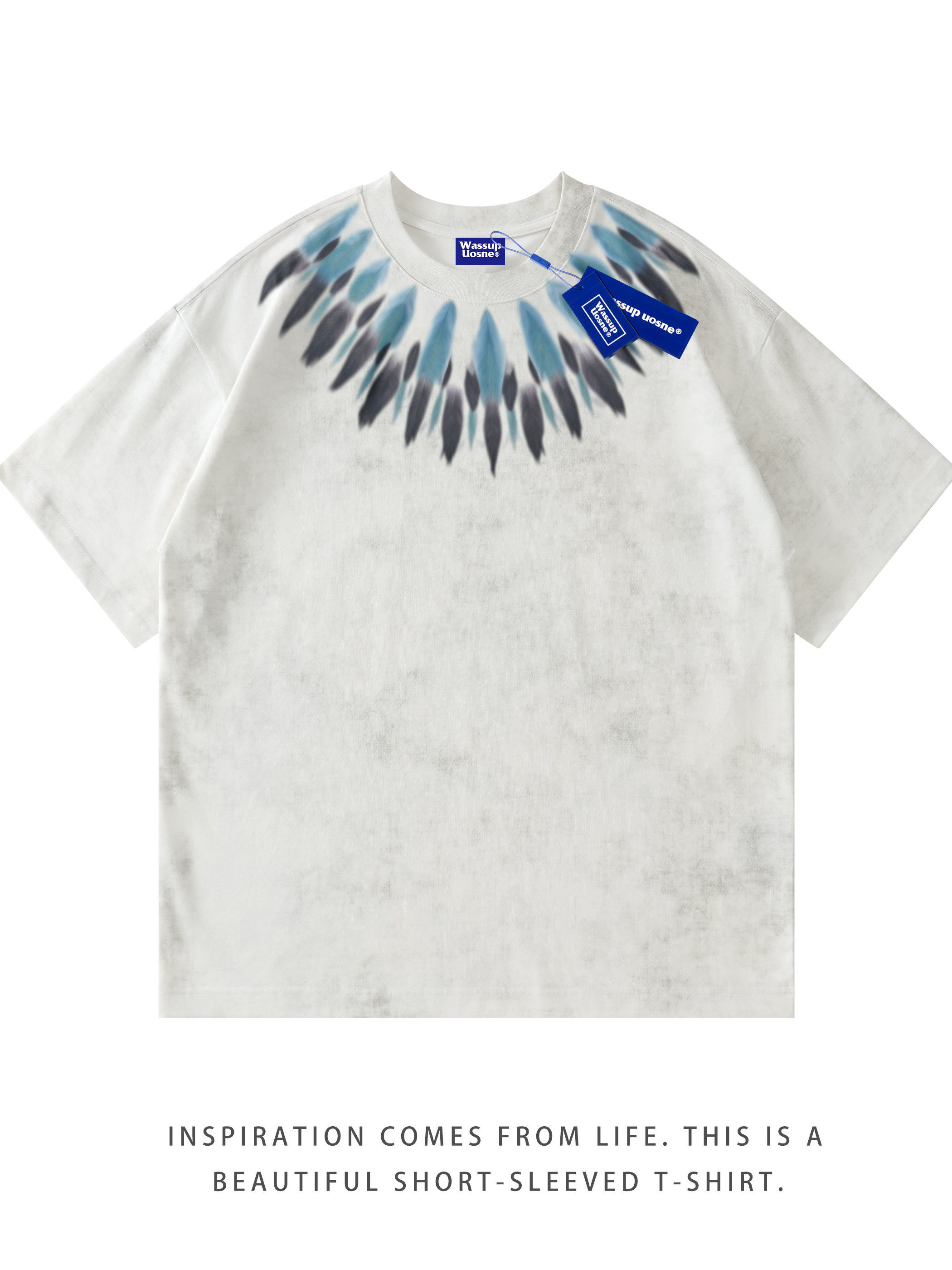 民族风水印花~纯棉美式短袖t恤男女2026新款春夏季情侣装半袖上衣