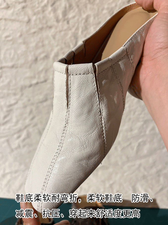 小众高级感~头层羊皮法式夏季穆勒半拖粗跟包头凉拖鞋女外穿时尚