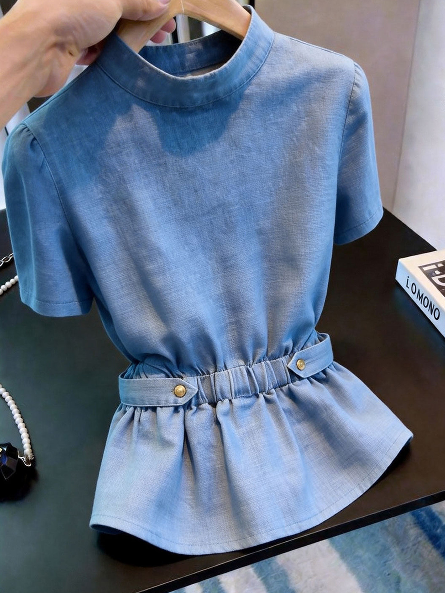 蓝色【炸街独特漂亮、气质女士、高端小资小上衣、绝美巨好看、韩系穿搭、美式】 / S