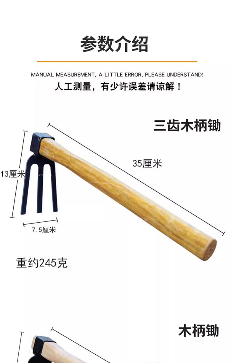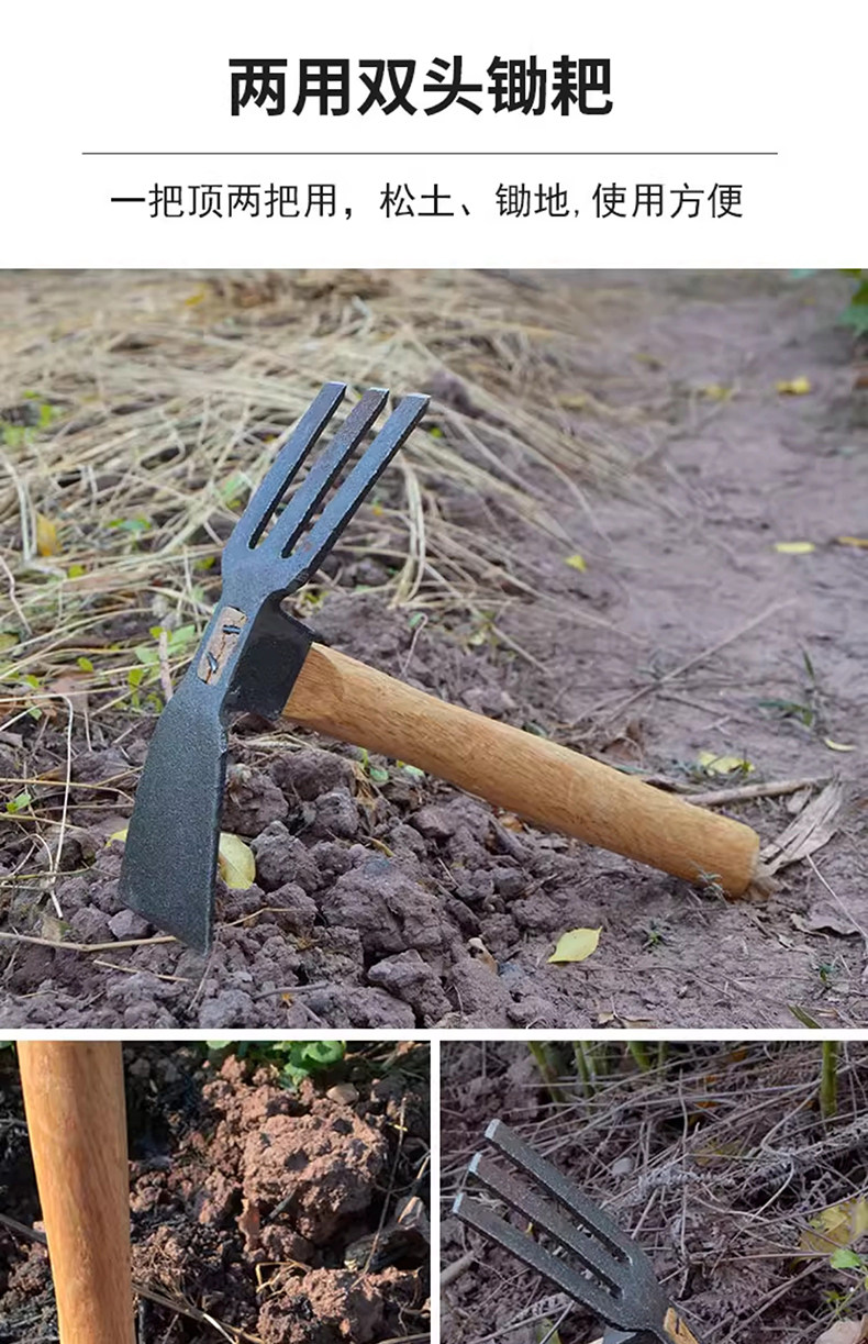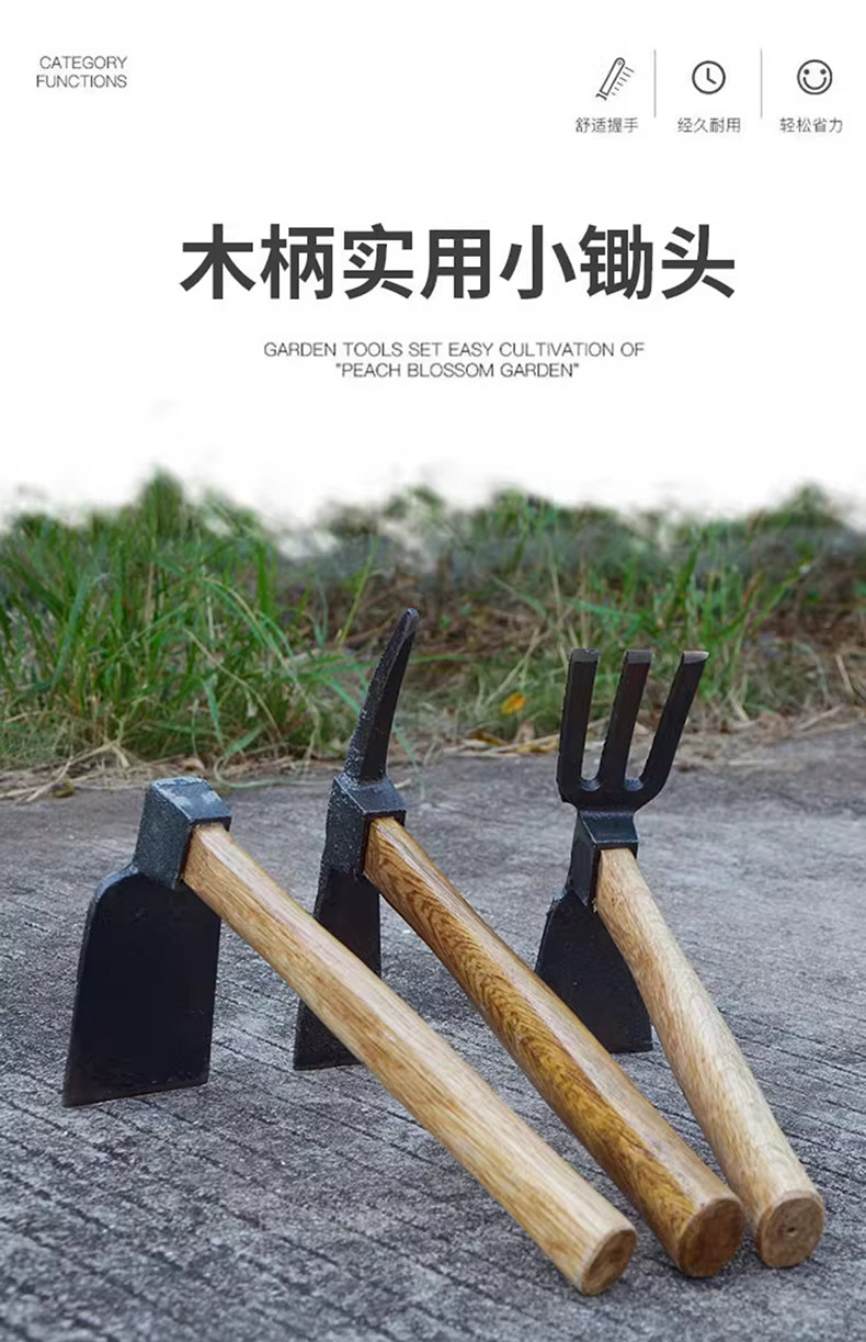 花锄草锄钉耙子木柄小锄头园林农具农用园艺挖土工具种菜洋镐锄