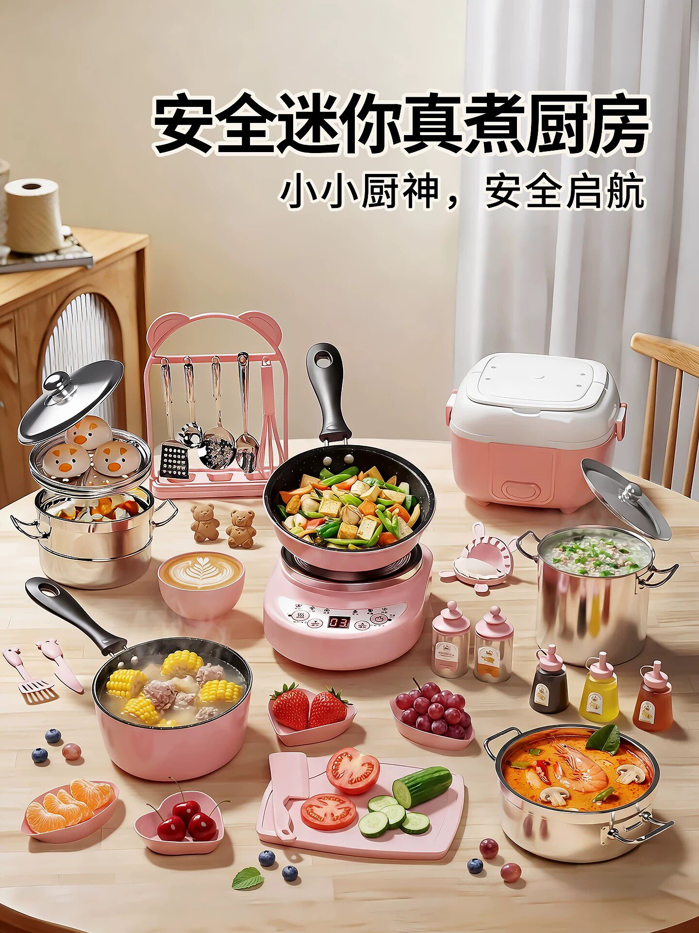 HomeProducts迷你小厨房六一儿童3到6岁真煮全套装玩具可做饭套装厨具真实女孩