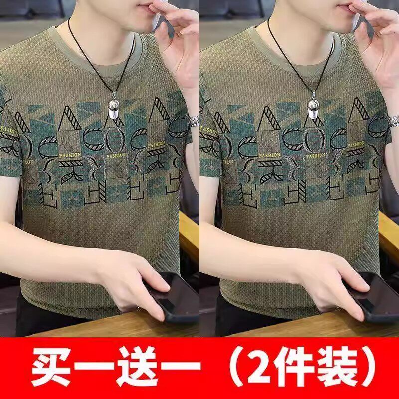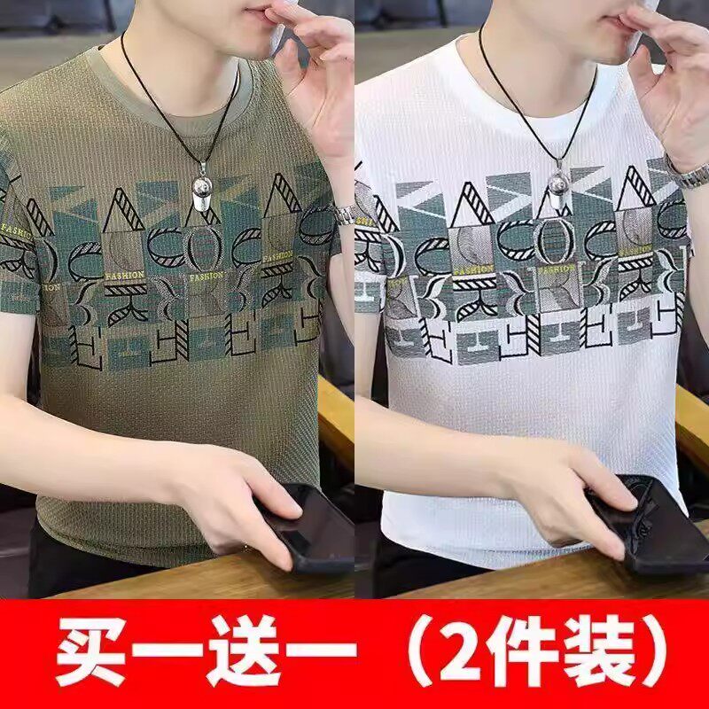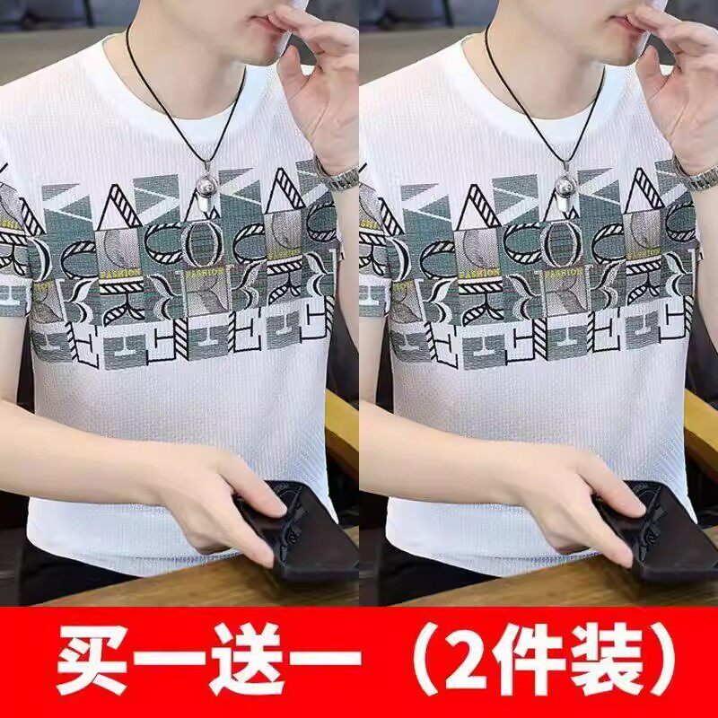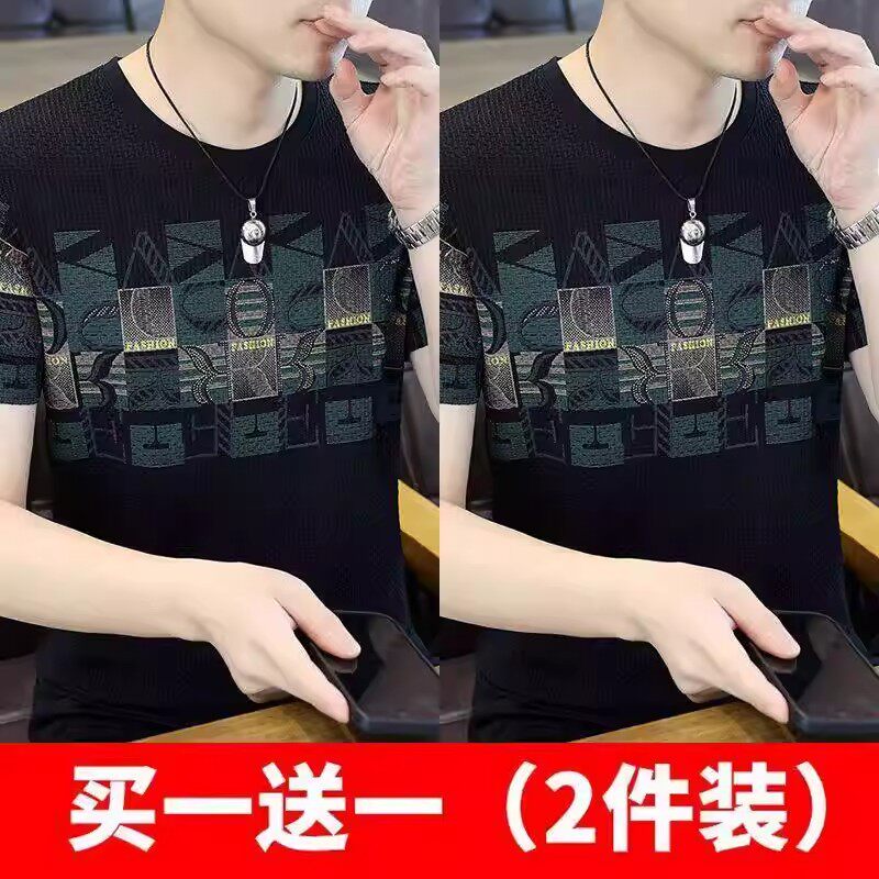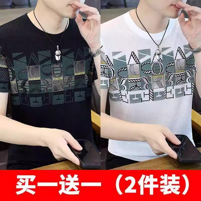 清仓捡漏高端个性冰丝短袖t恤男士潮牌2026年夏季新款男士提花t衫