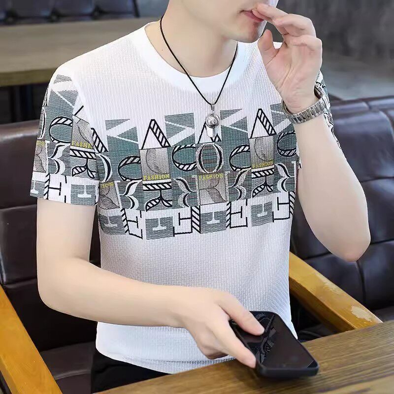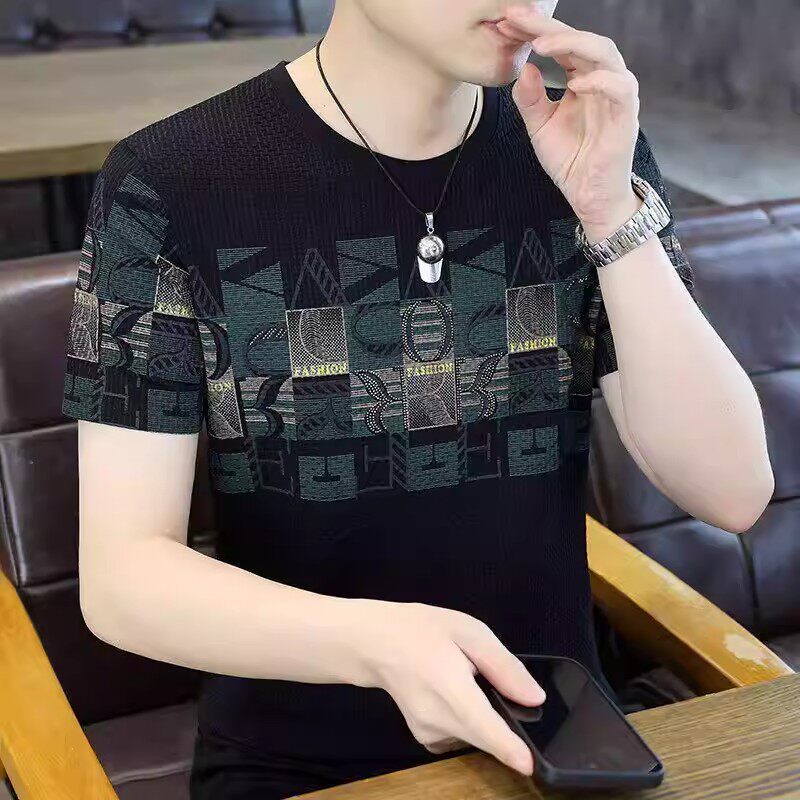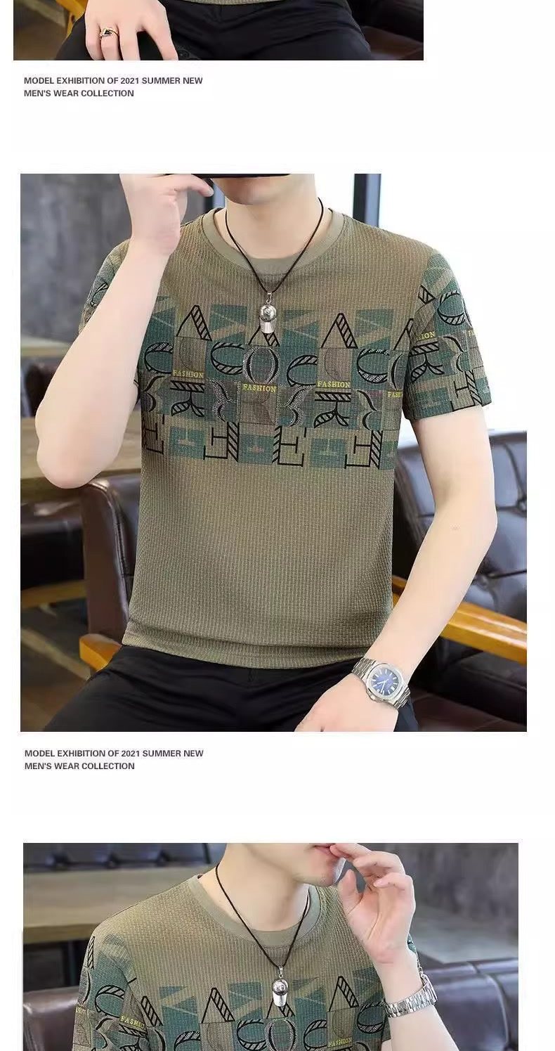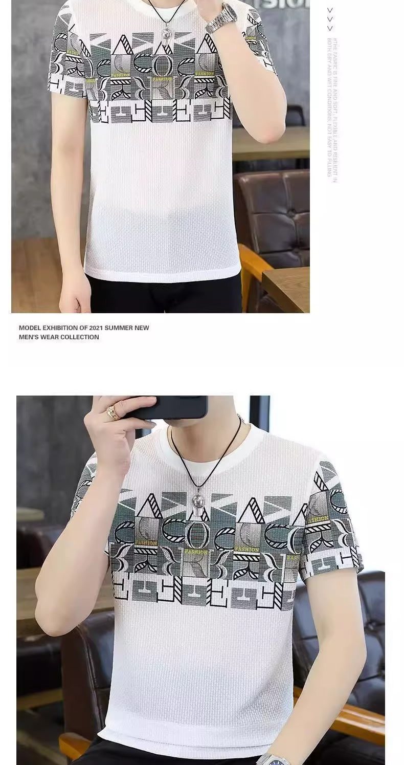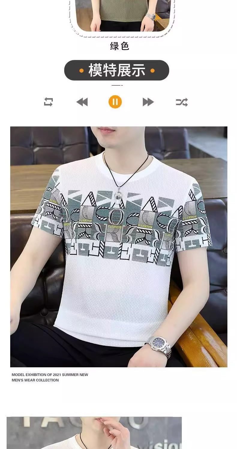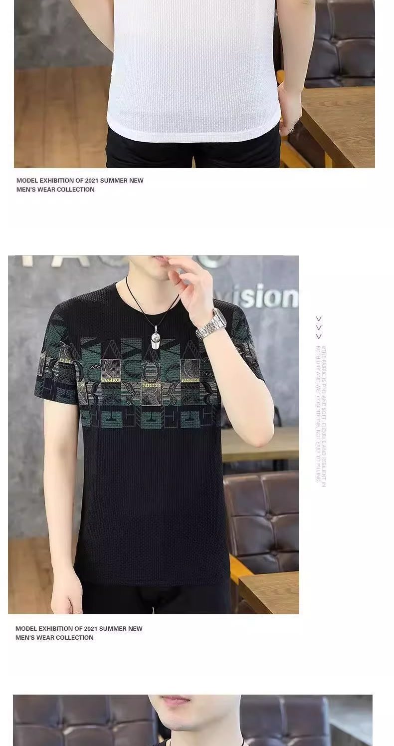 HomeProducts清仓捡漏高端个性冰丝短袖t恤男士潮牌2026年夏季新款男士提花t衫