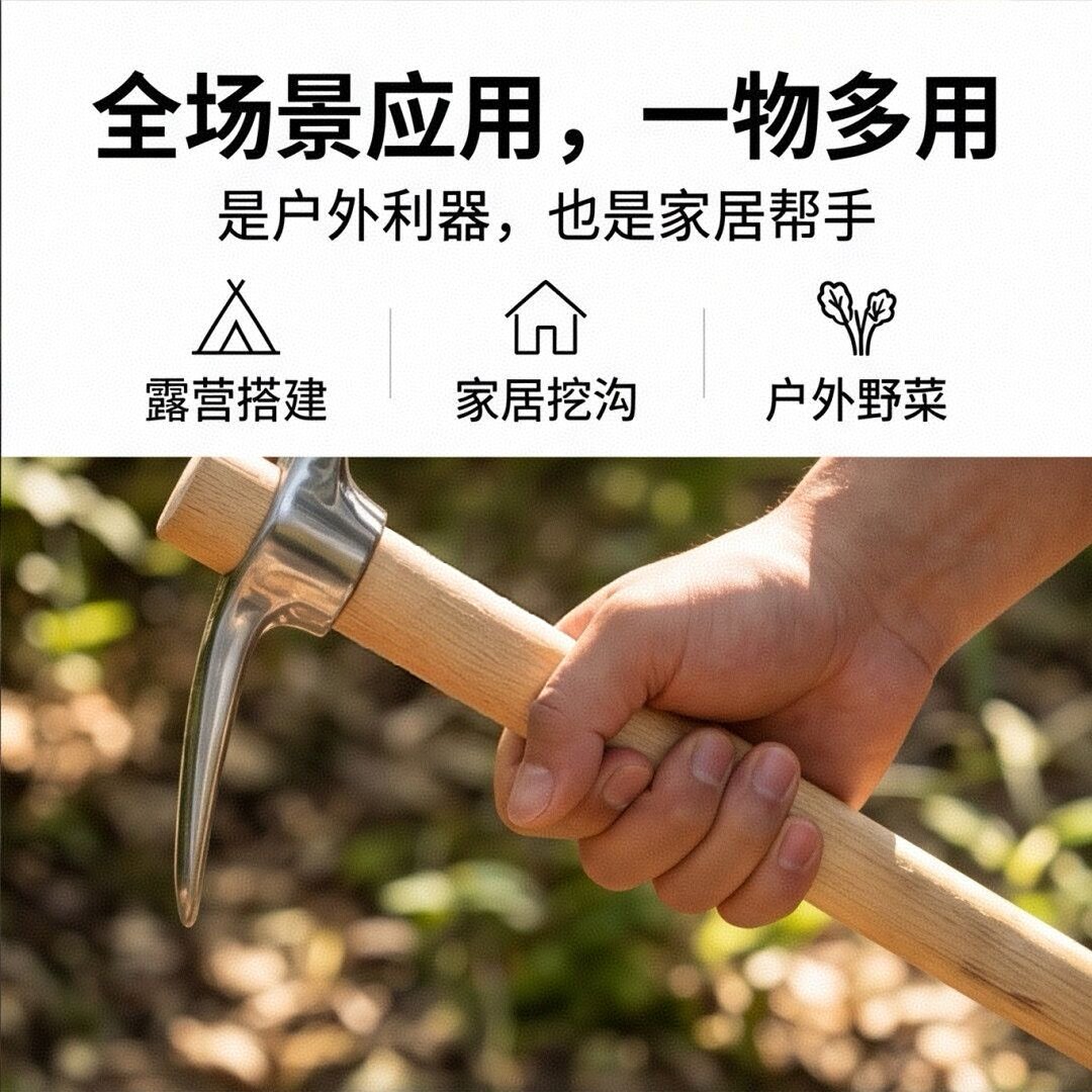 不锈钢十字洋镐户外挖竹笋野菜镐不生锈镐锄头赶海工具登山