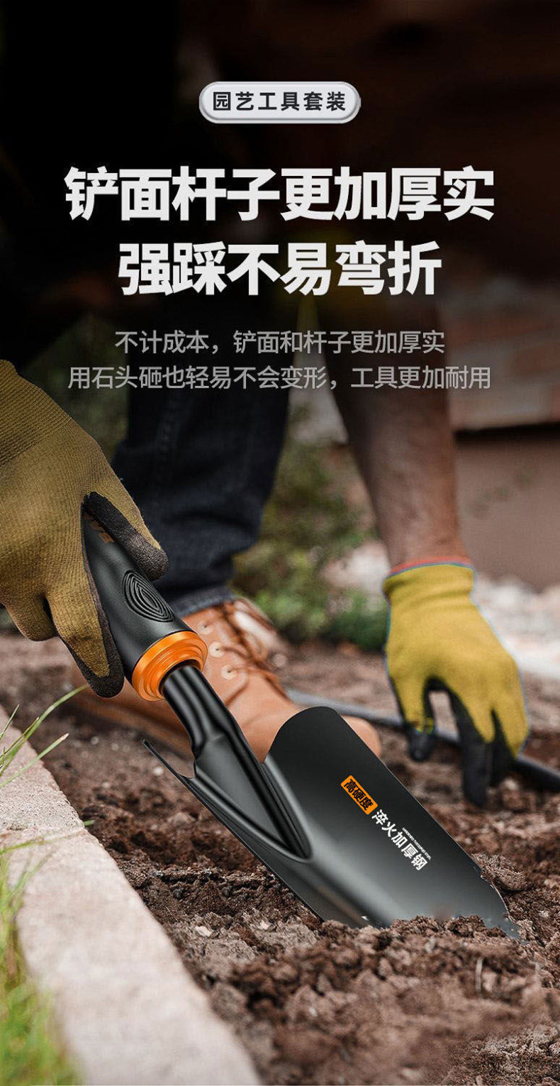 种花园艺工具小铲子挖土种菜专用养花种植耙子赶海神器家用三件套