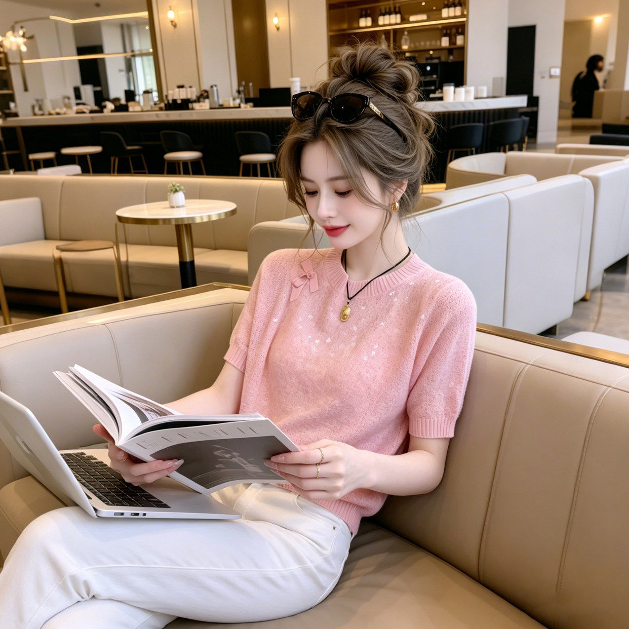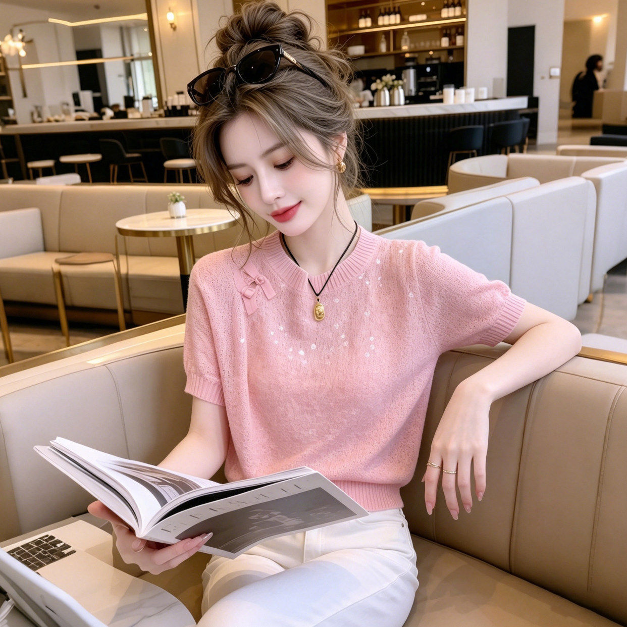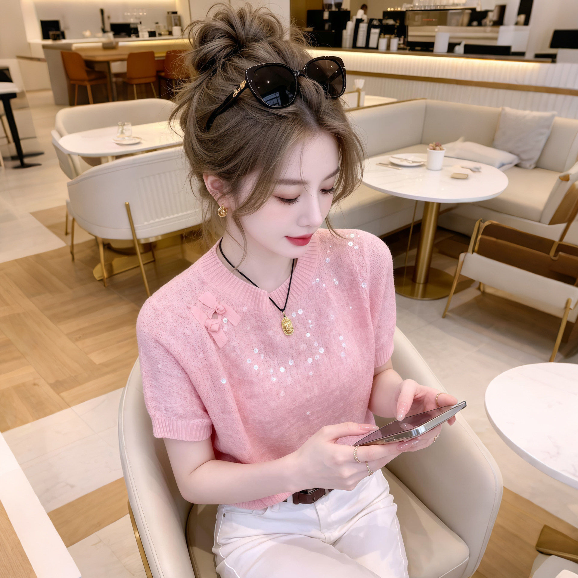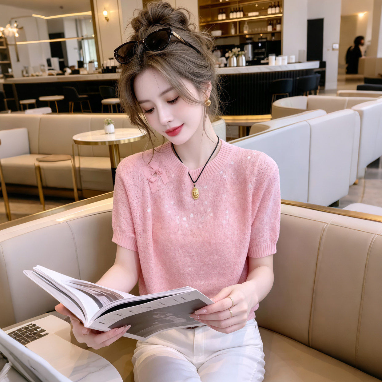夏季新款2026超火减龄上衣时尚百搭重工亮片短袖针织衫女装穿搭