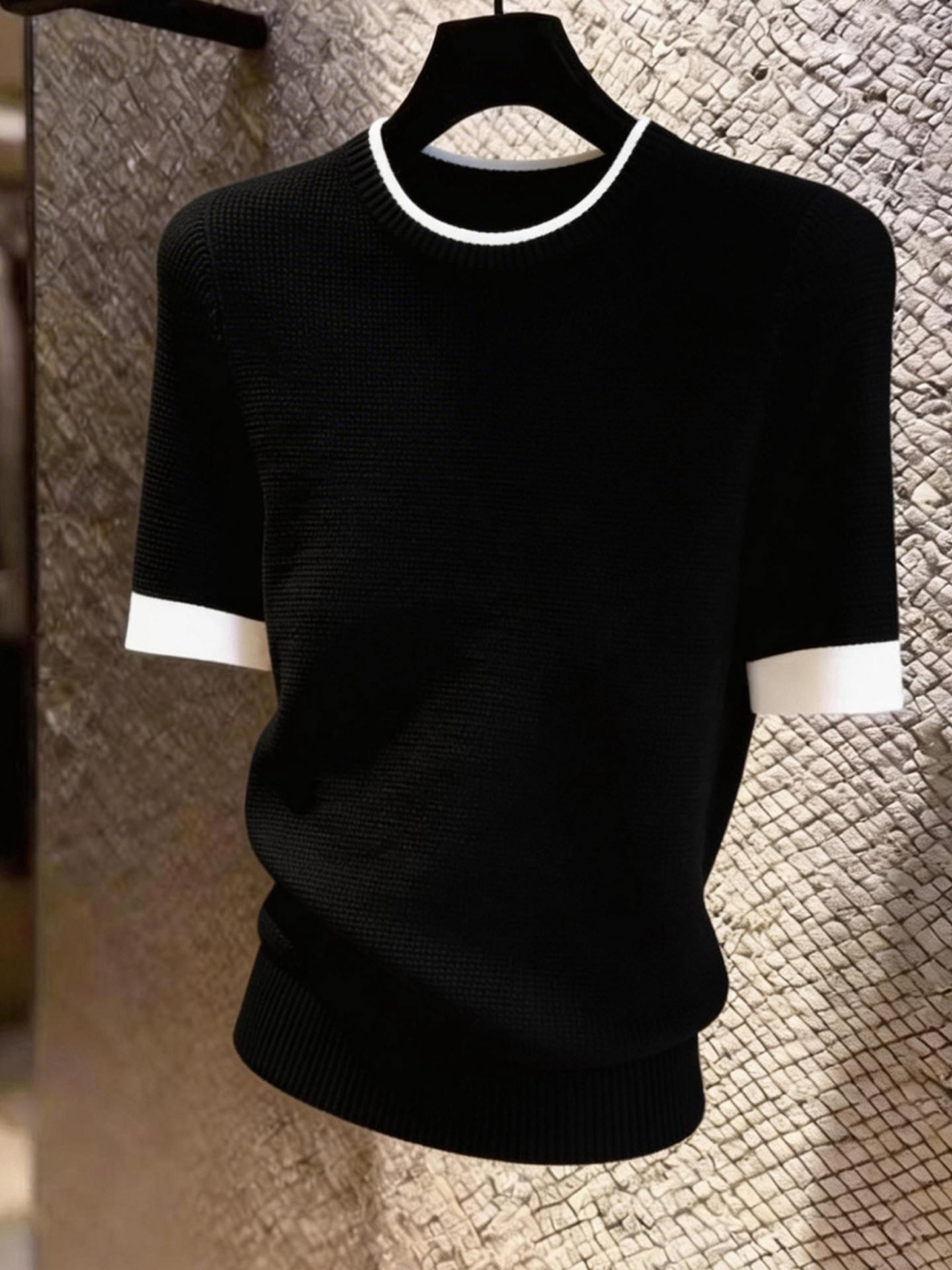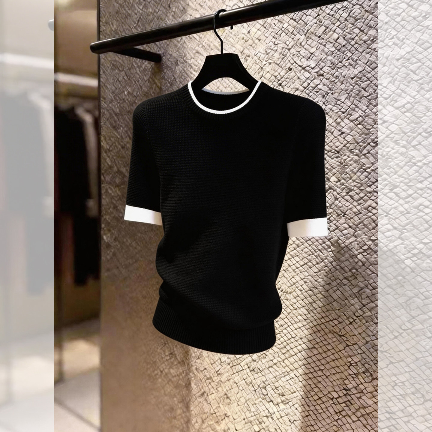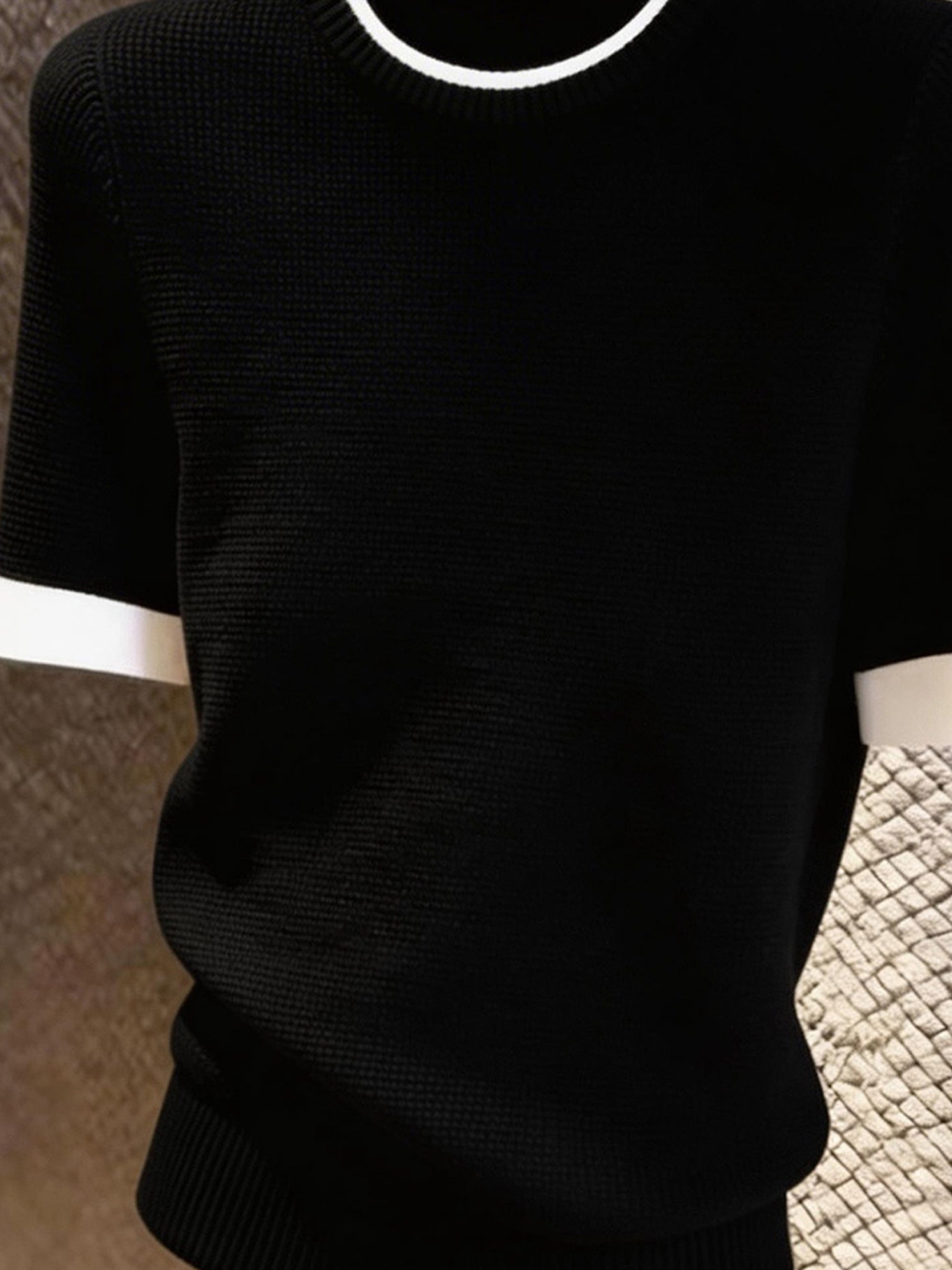 HomeProducts法式设计感撞色边黑色短袖上衣女2026年夏季新款小众时尚气质百搭