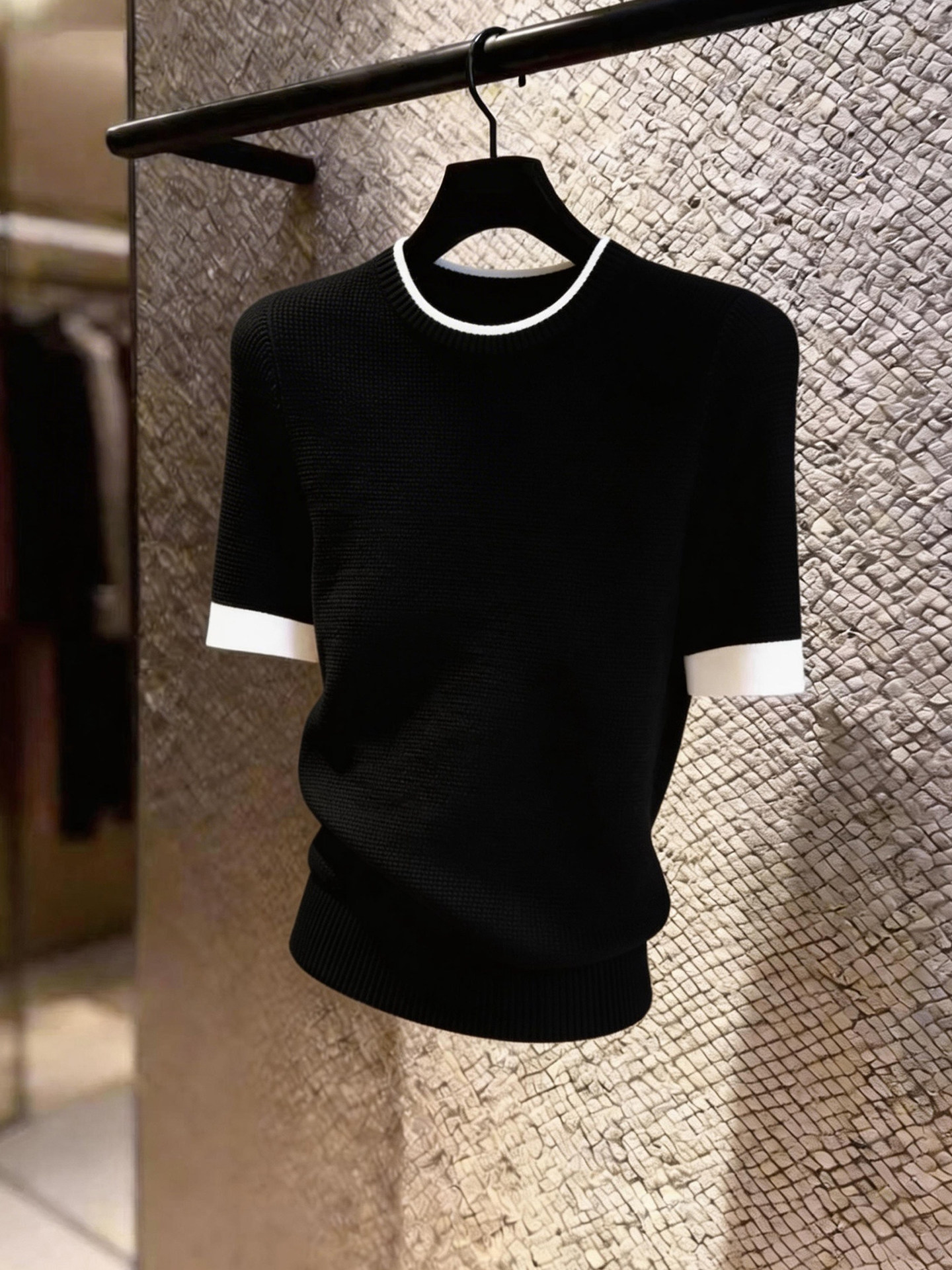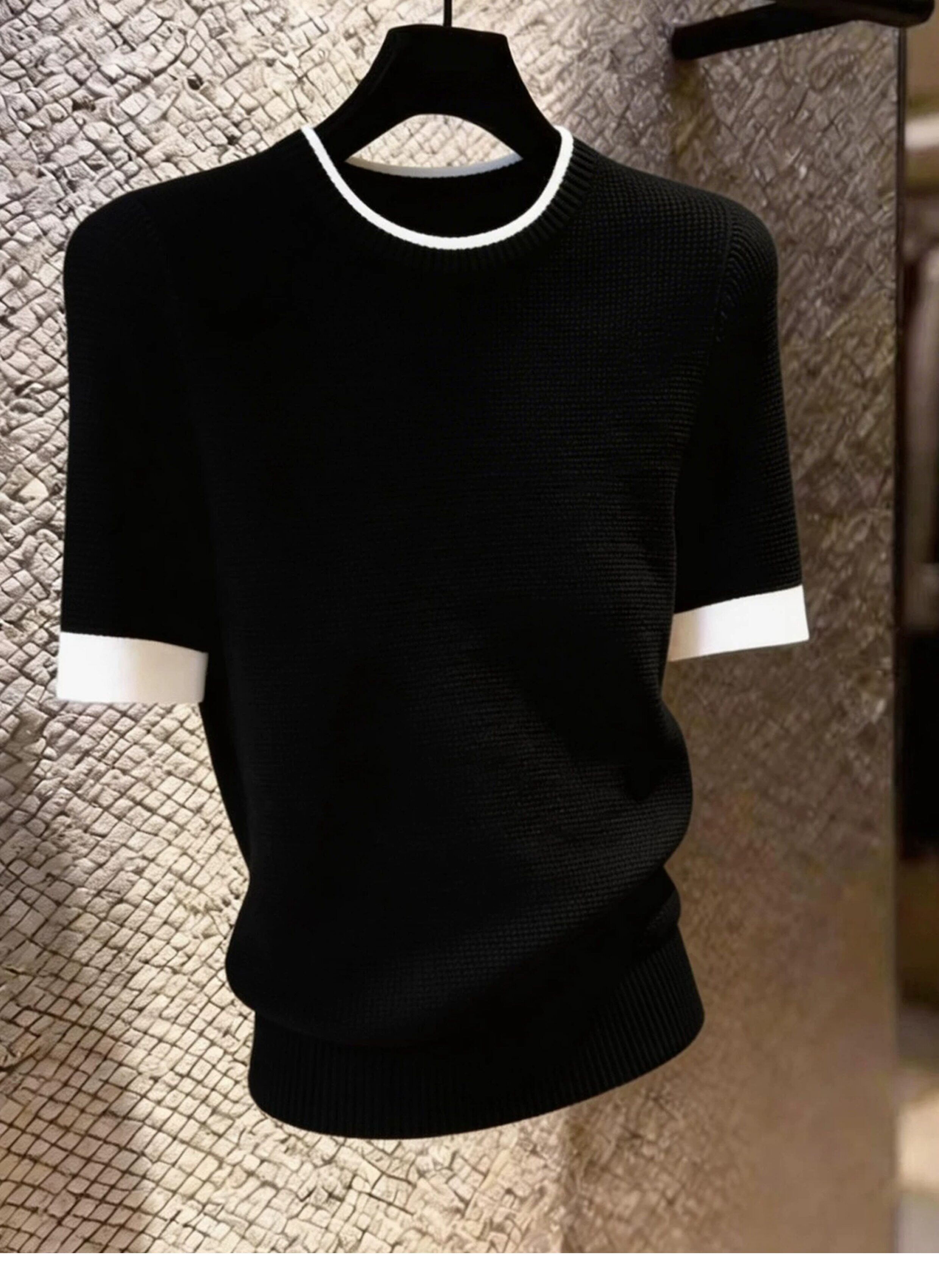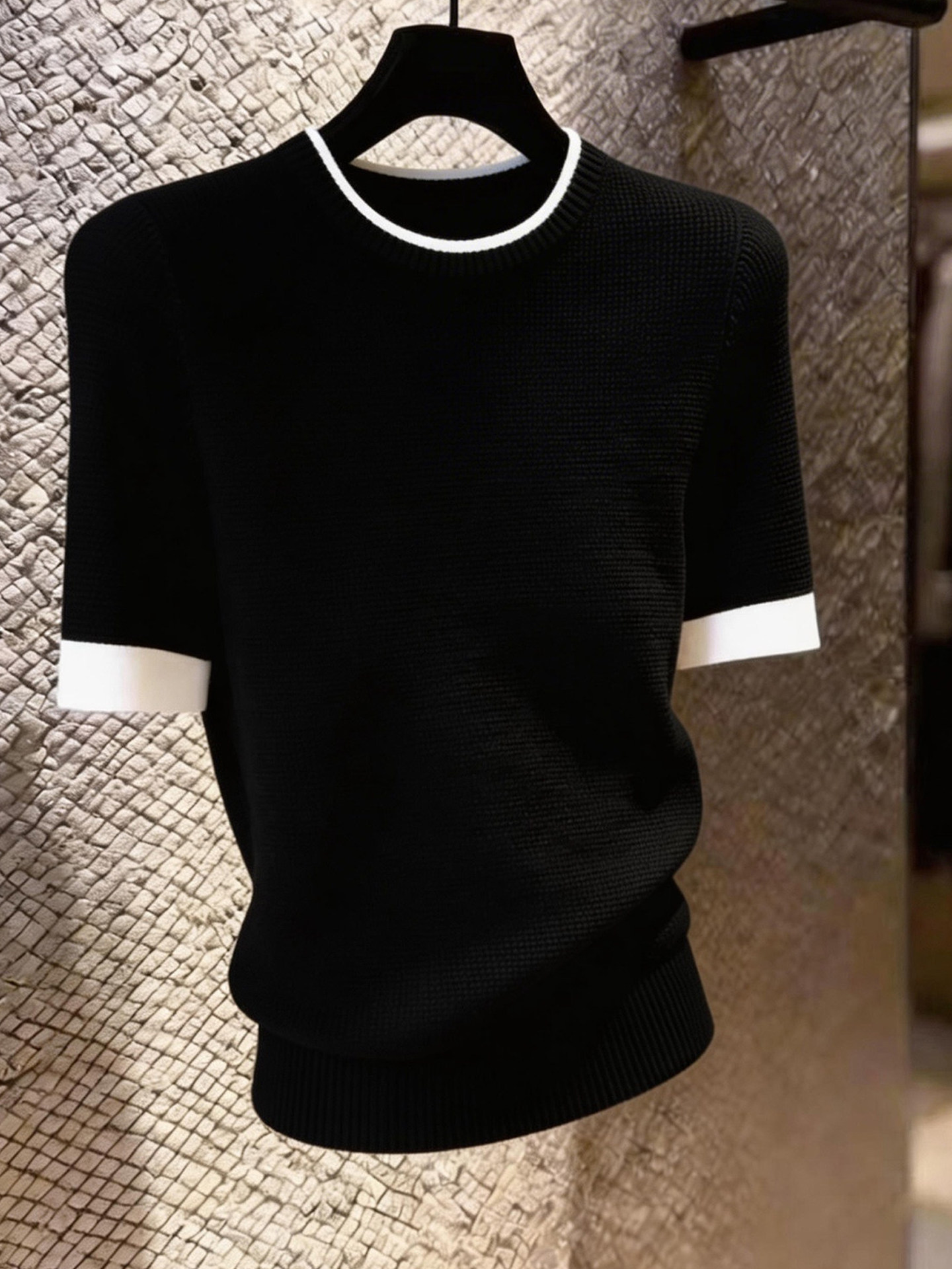 HomeProducts法式设计感撞色边黑色短袖上衣女2026年夏季新款小众时尚气质百搭