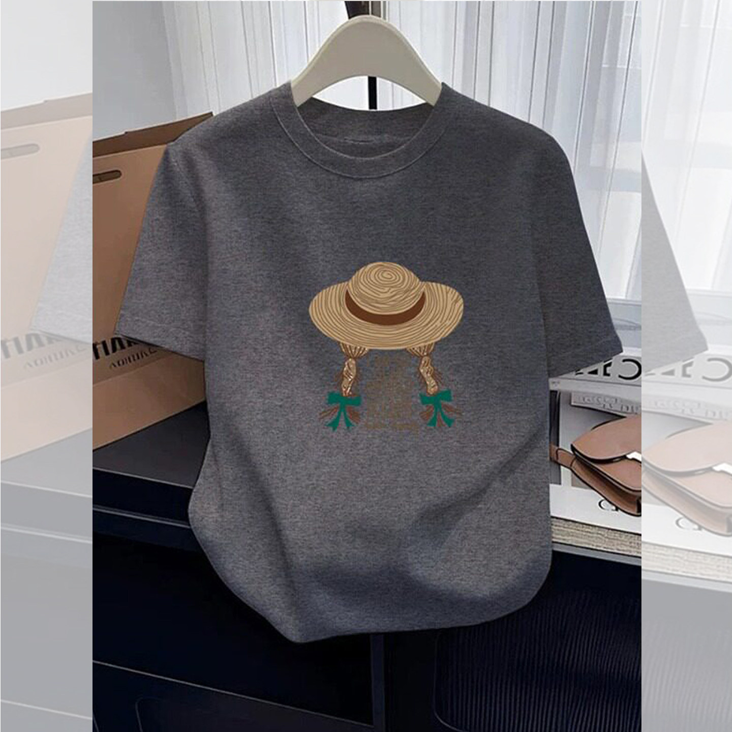 高端大牌深灰色正肩短袖T恤女夏季穿搭休闲时尚2026超火减龄上衣