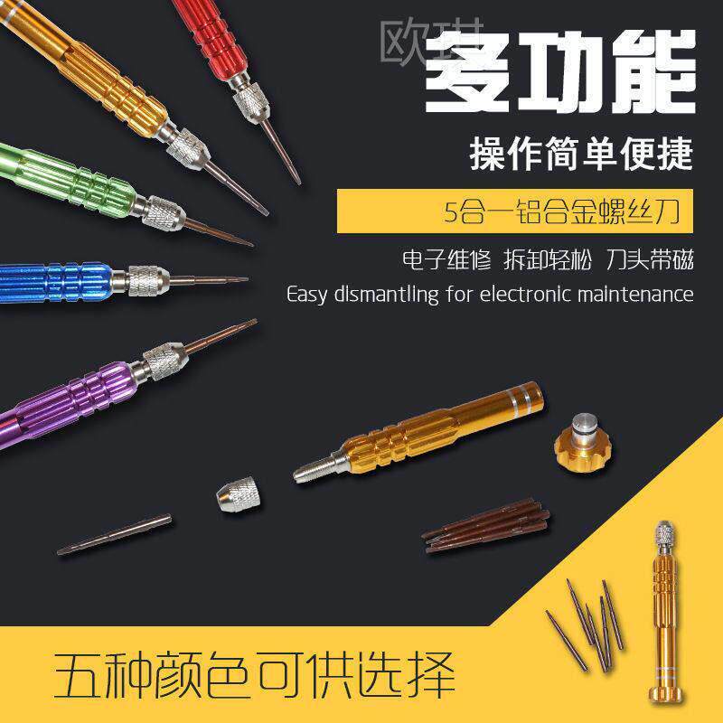 手机手表眼镜钟表维修拆机工具套装五合一迷你小螺丝刀高度硬批头