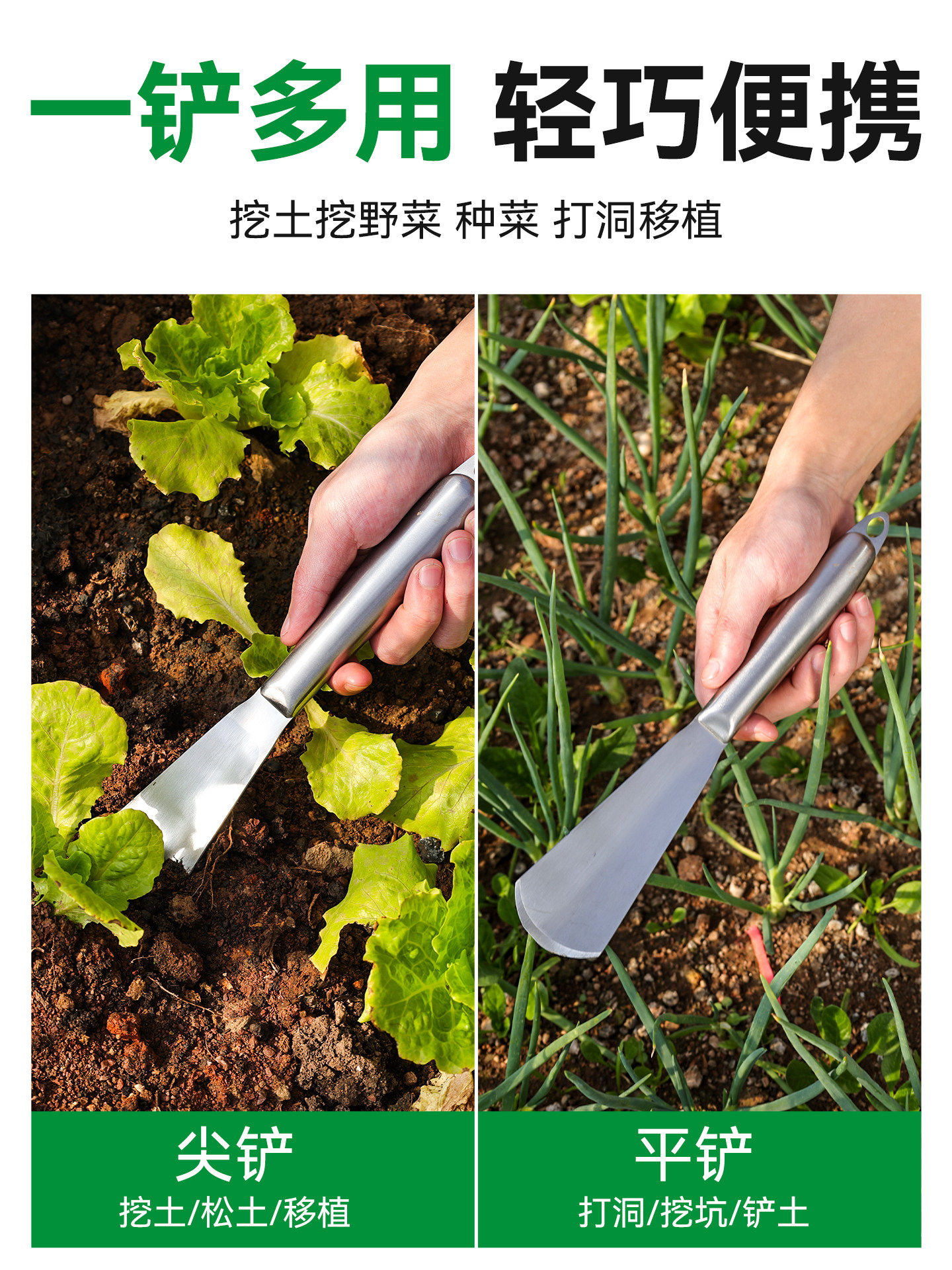 园艺小铲子不锈钢种花挖土神器多功能加厚挖野菜耐用户外铲子工具