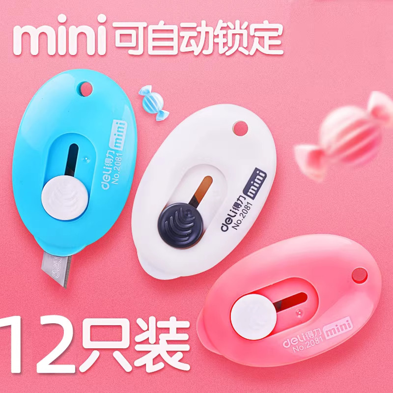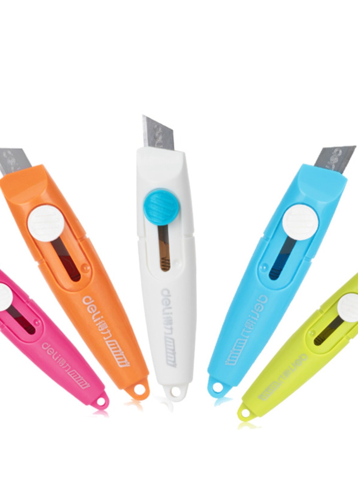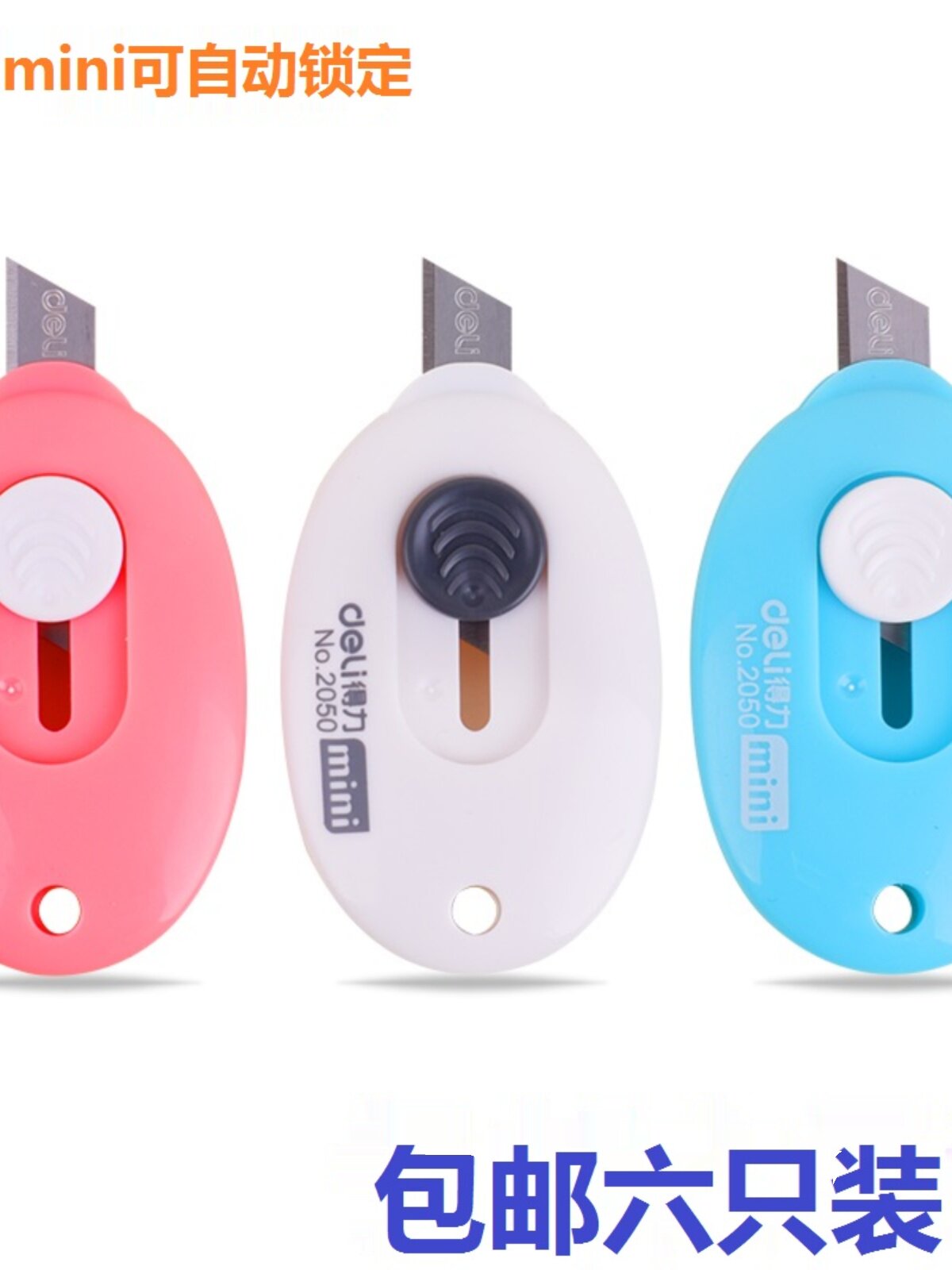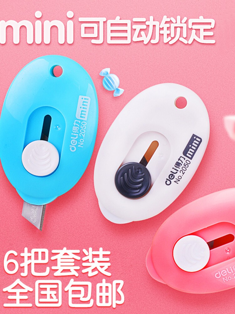 6把得力迷你美工刀小号开箱器裁纸刀拆信刀拆快递便携小刀削笔刀