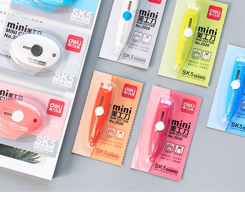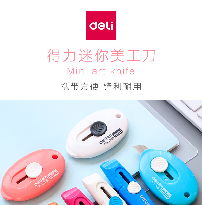 6把得力迷你美工刀小号开箱器裁纸刀拆信刀拆快递便携小刀削笔刀