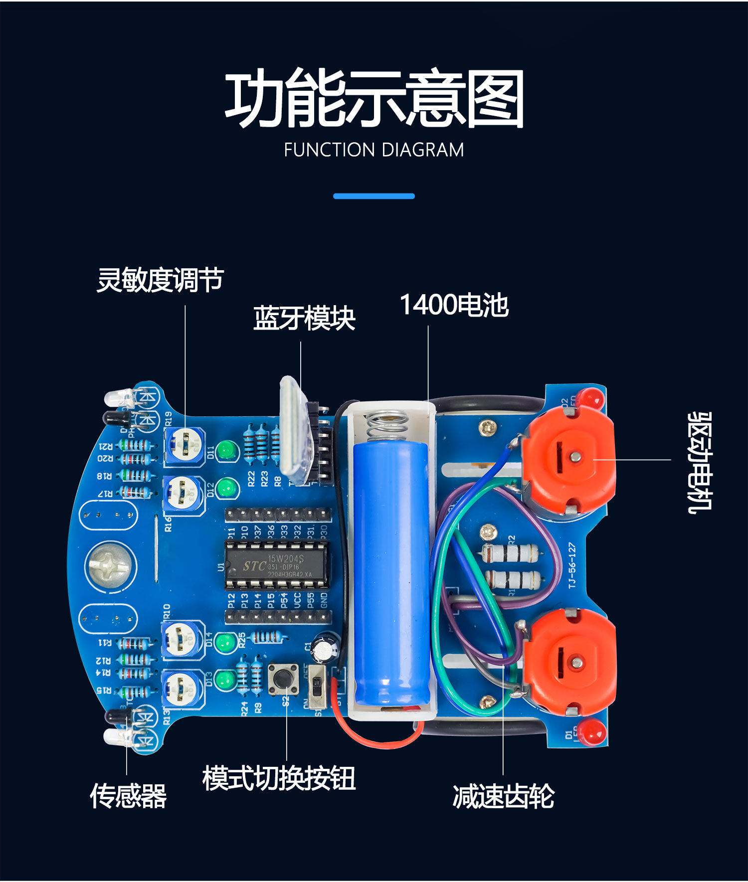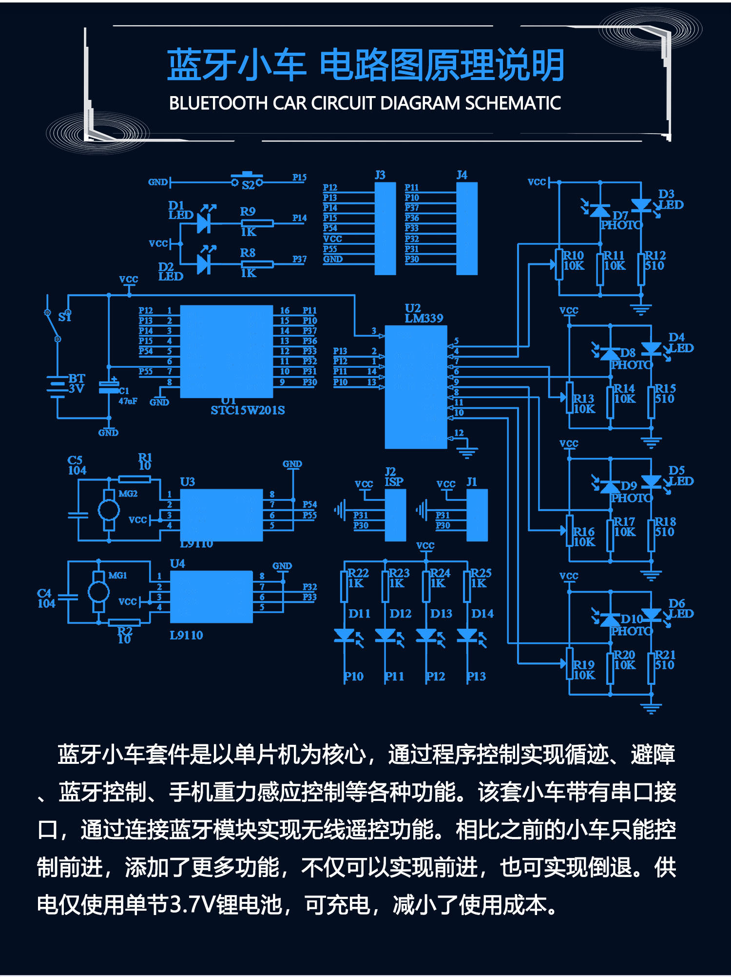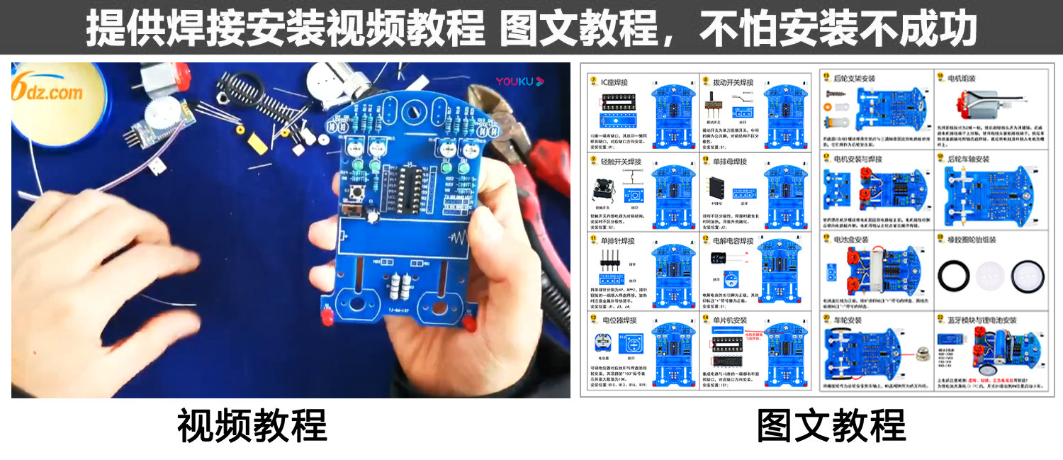 伍陆电子蓝牙遥控小车DIY套件重力感应循迹避障单片机智能车电路