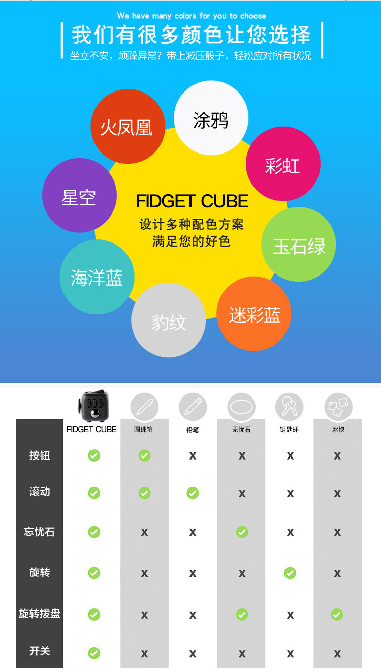 fidget cube减压神器骰子魔方edc解压玩具解闷上课无聊打发时间