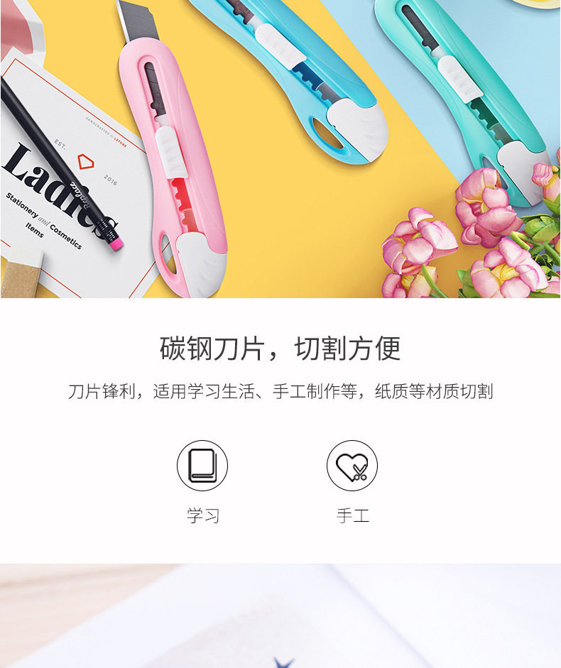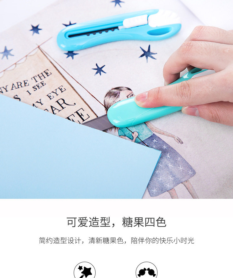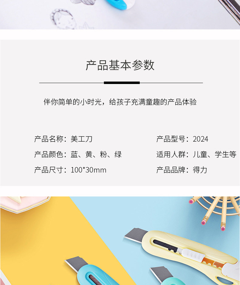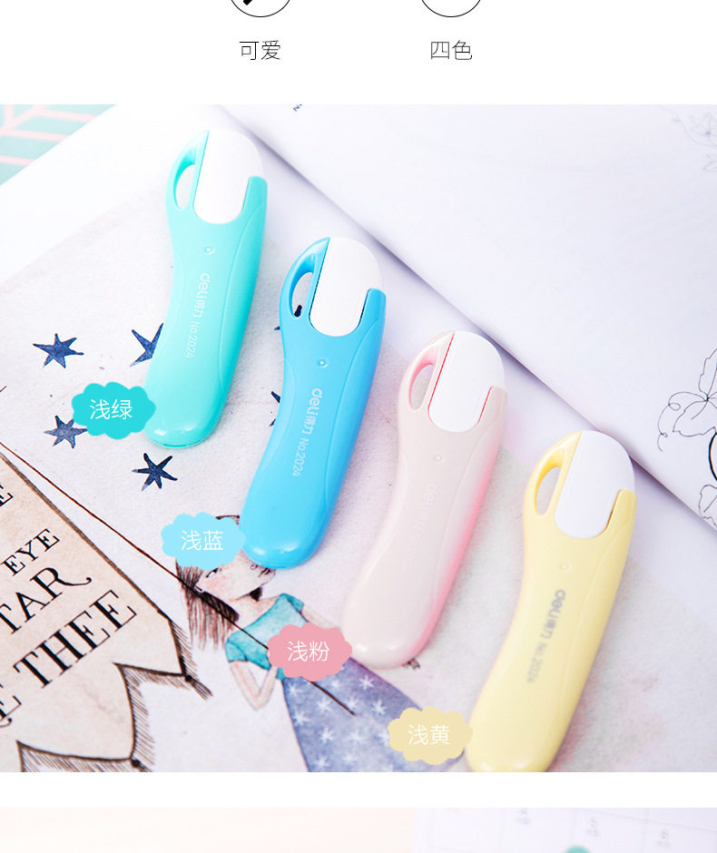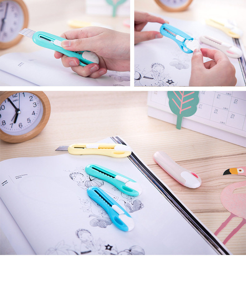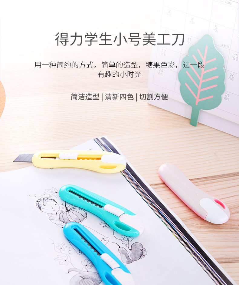 HomeProducts得力美工刀学生用裁纸刀文具刀可爱糖果色得力2024学生迷你小号