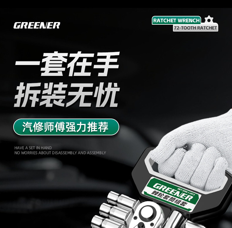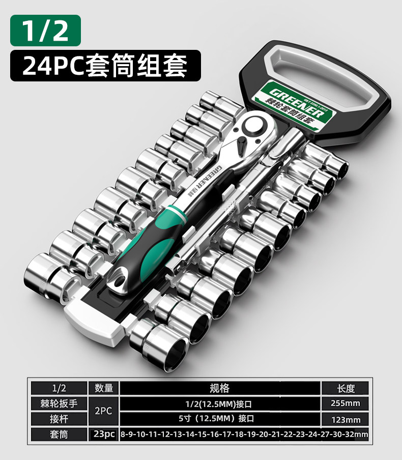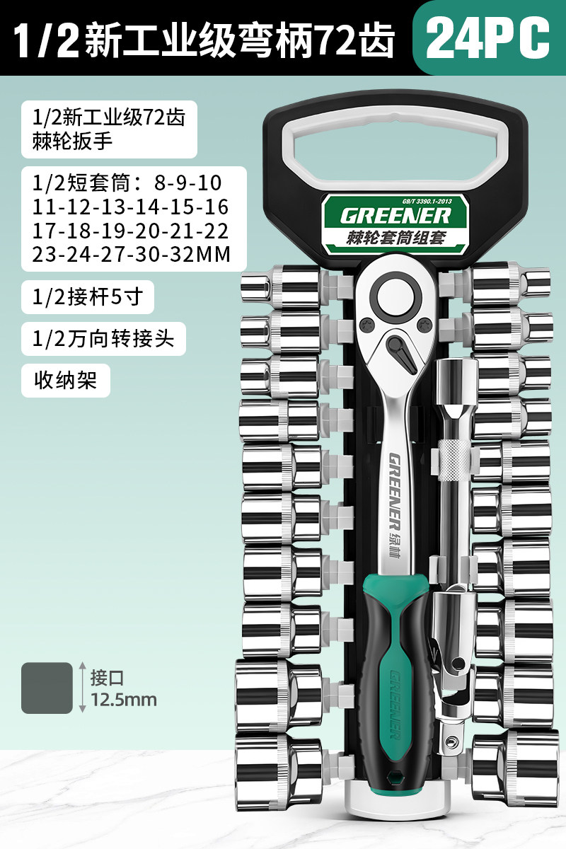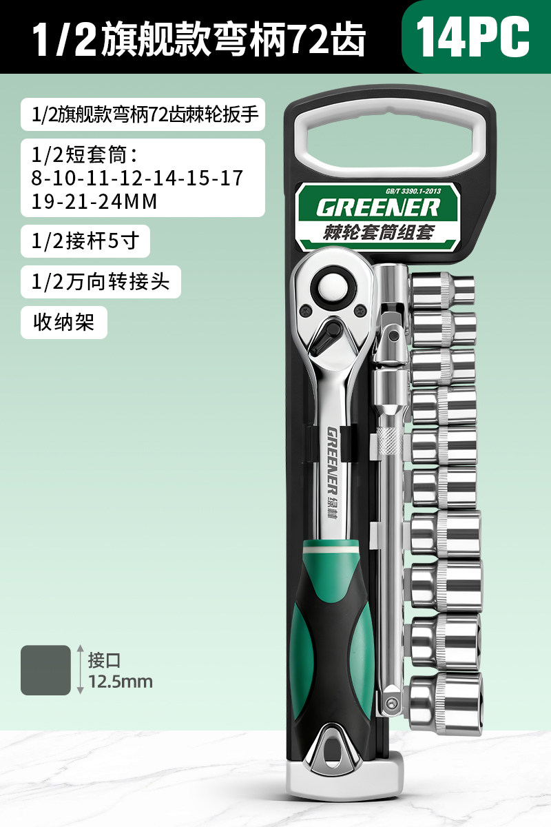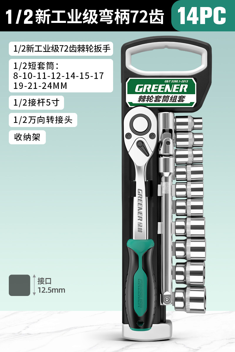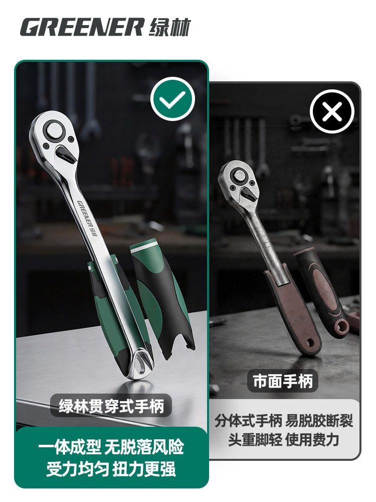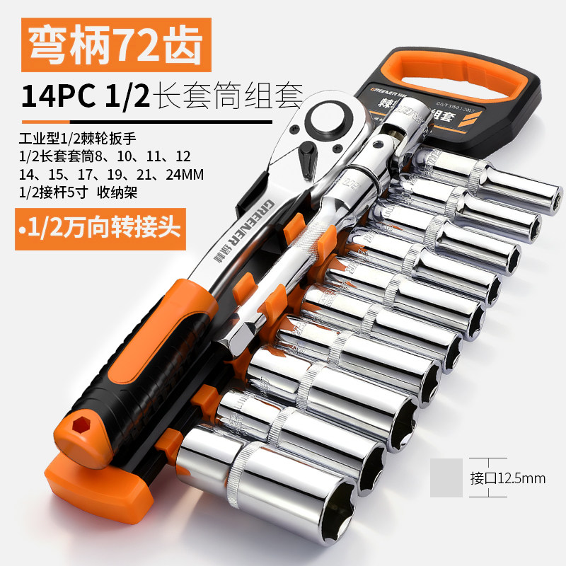 绿林棘轮套筒扳手套装万扳手能多功能外六角快速扳手套管汽修工具