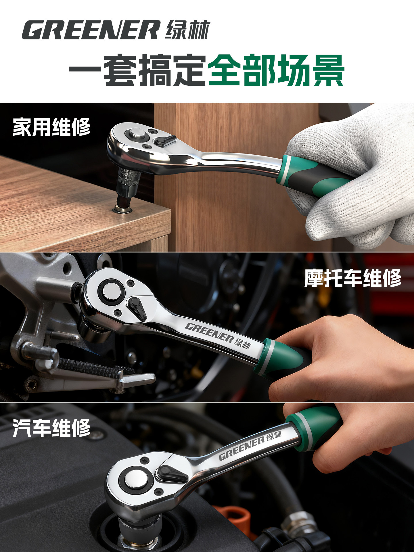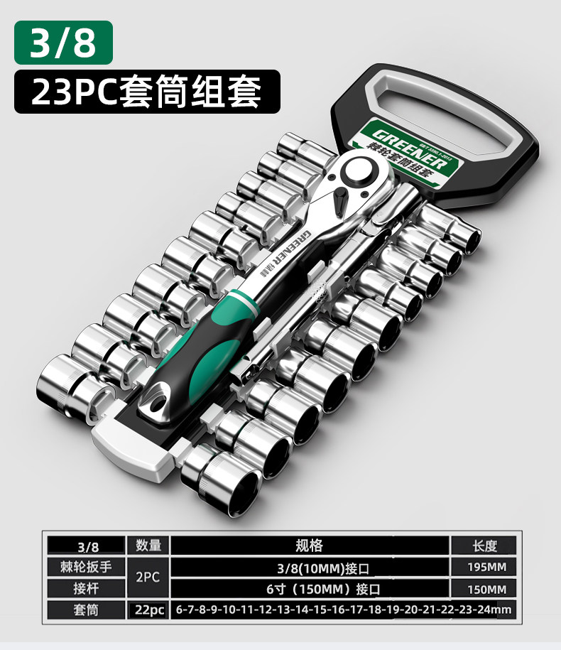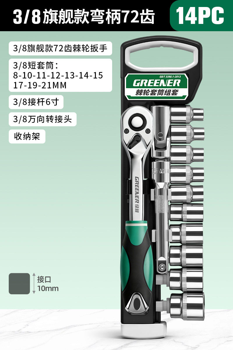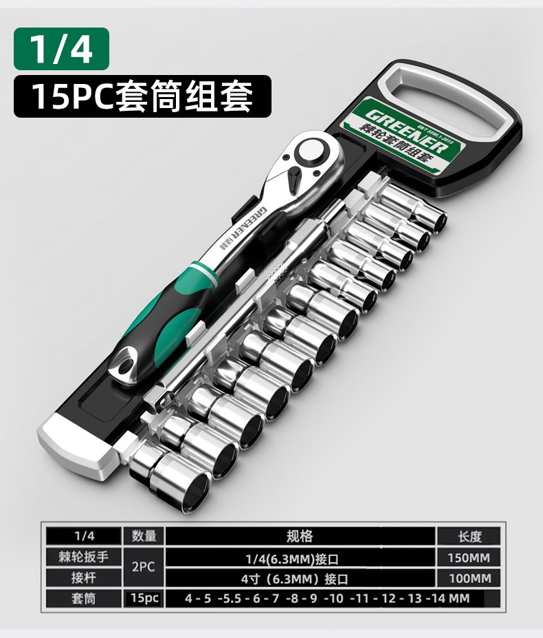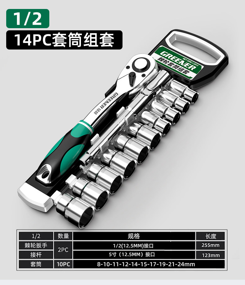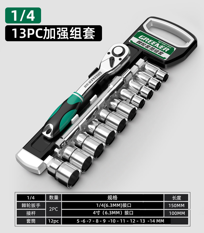 绿林棘轮套筒扳手套装万扳手能多功能外六角快速扳手套管汽修工具