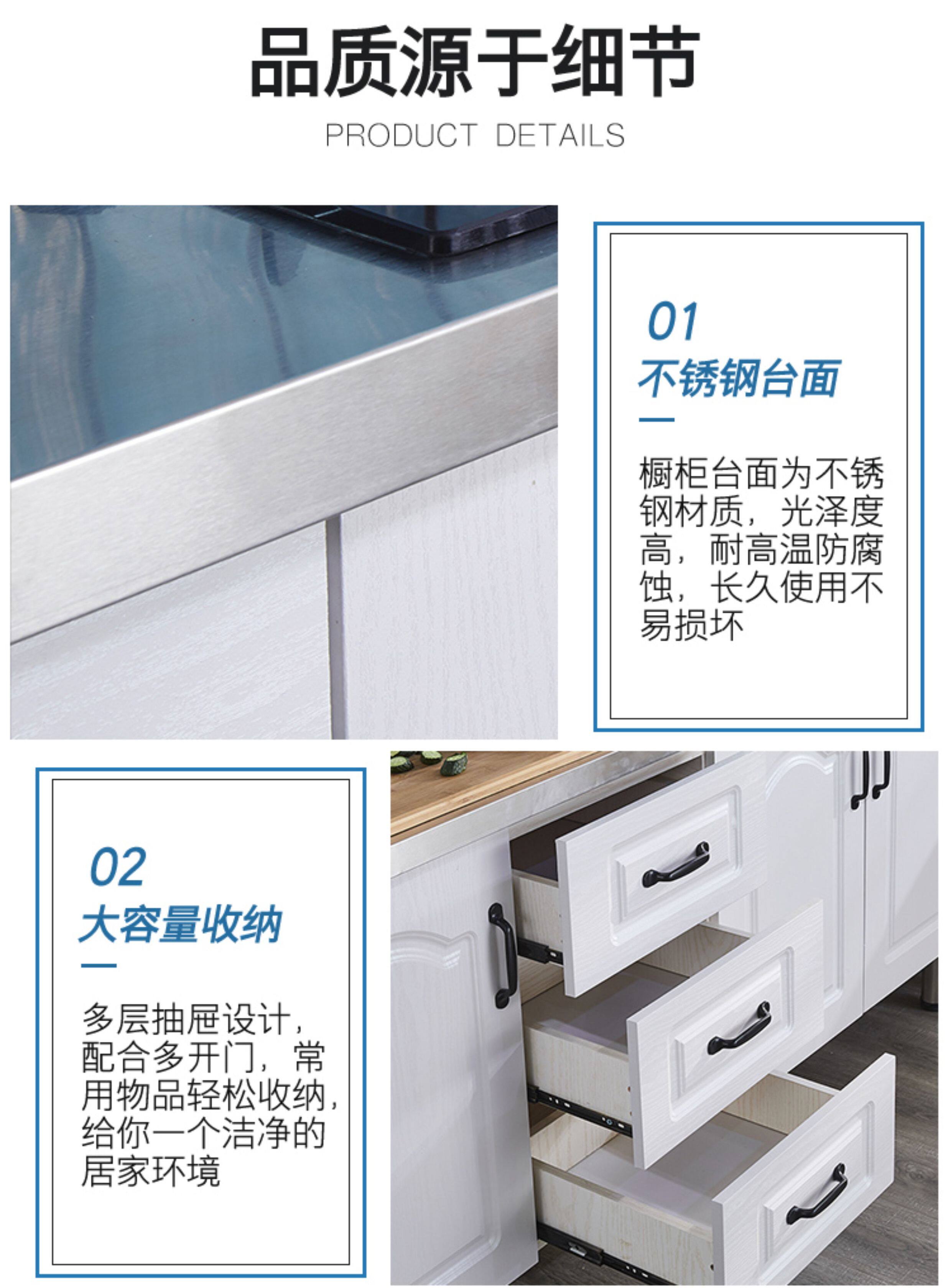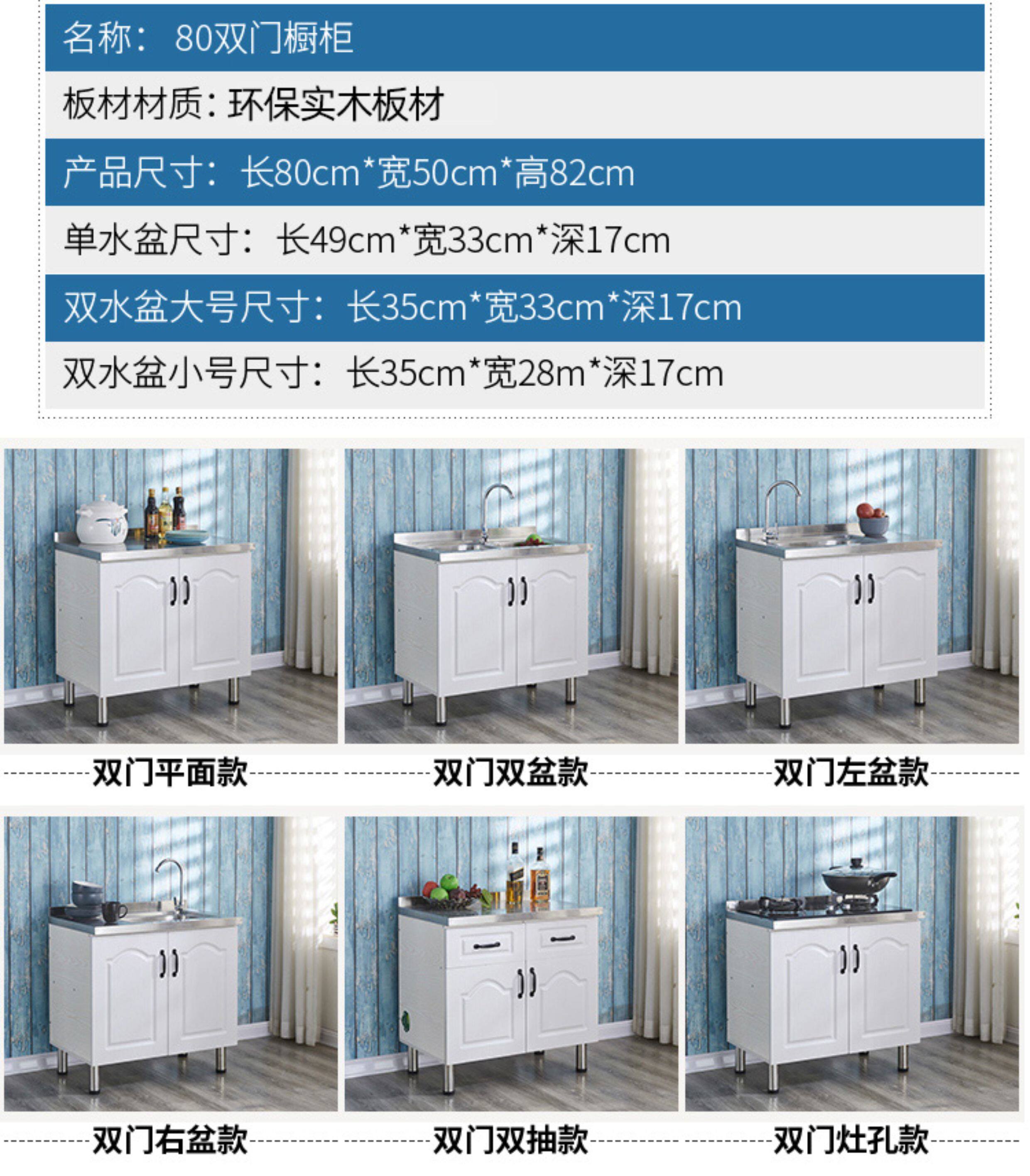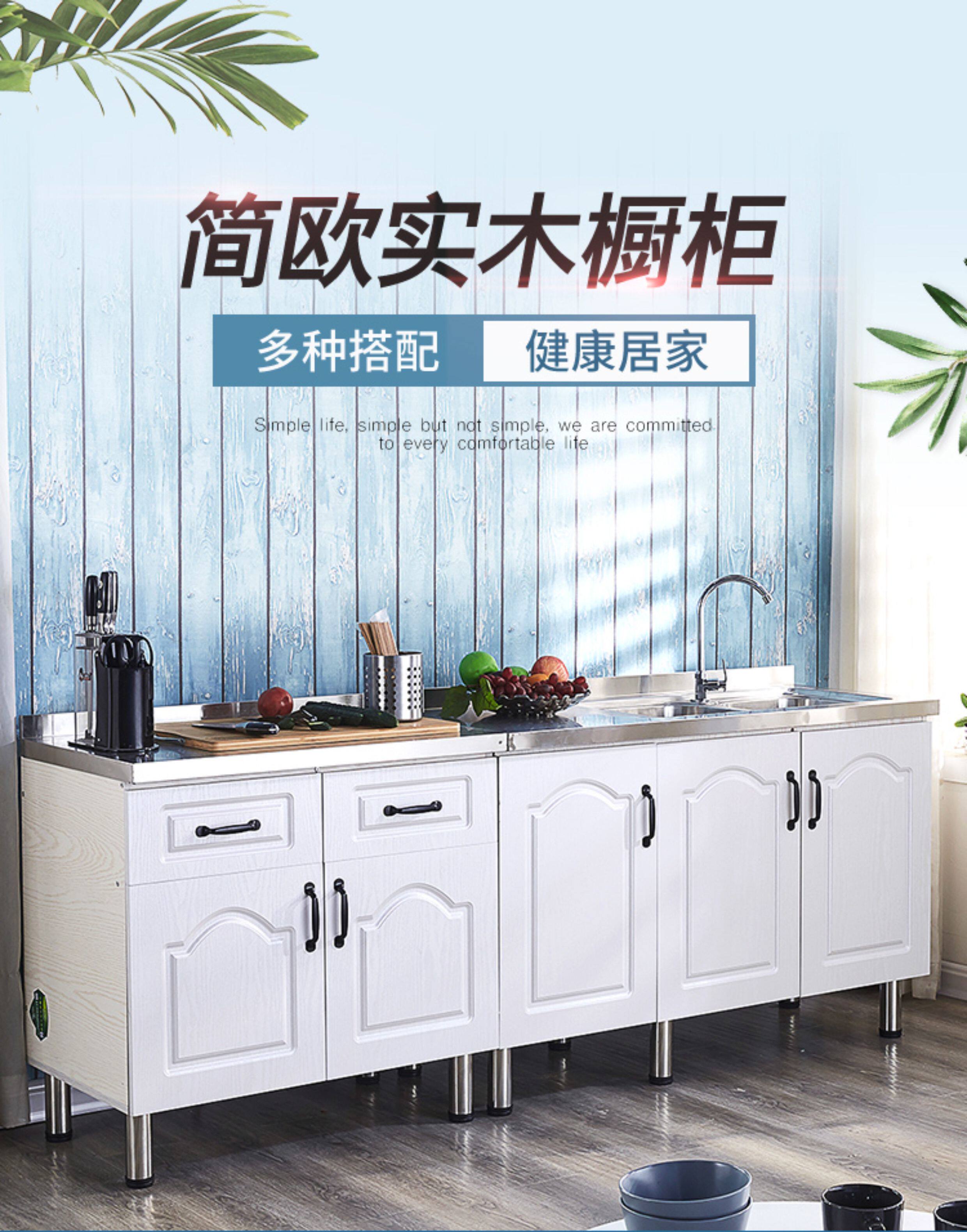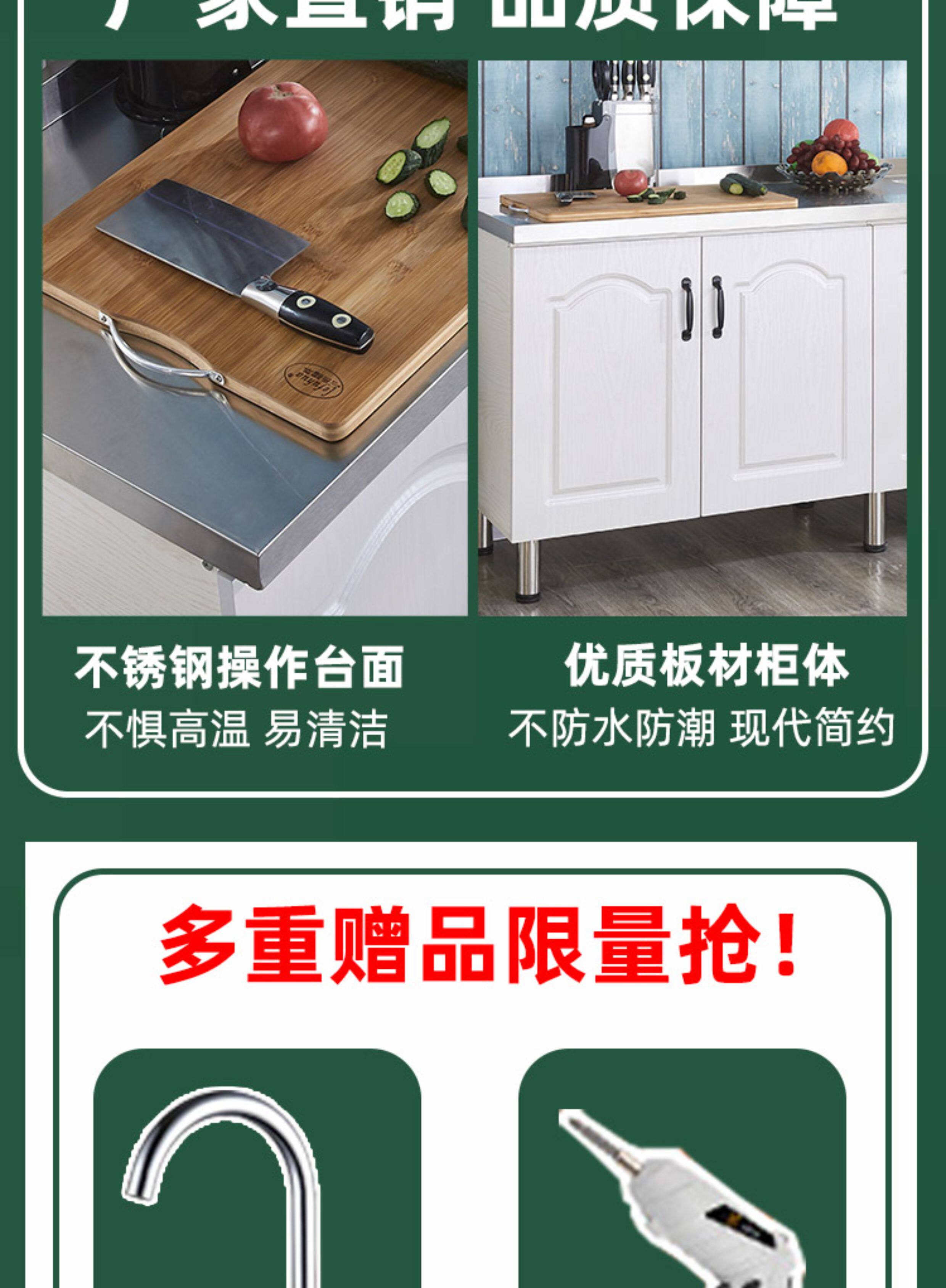 简易橱柜厨房一体灶台柜小橱柜租房用移动不锈钢放碗柜家用经济型