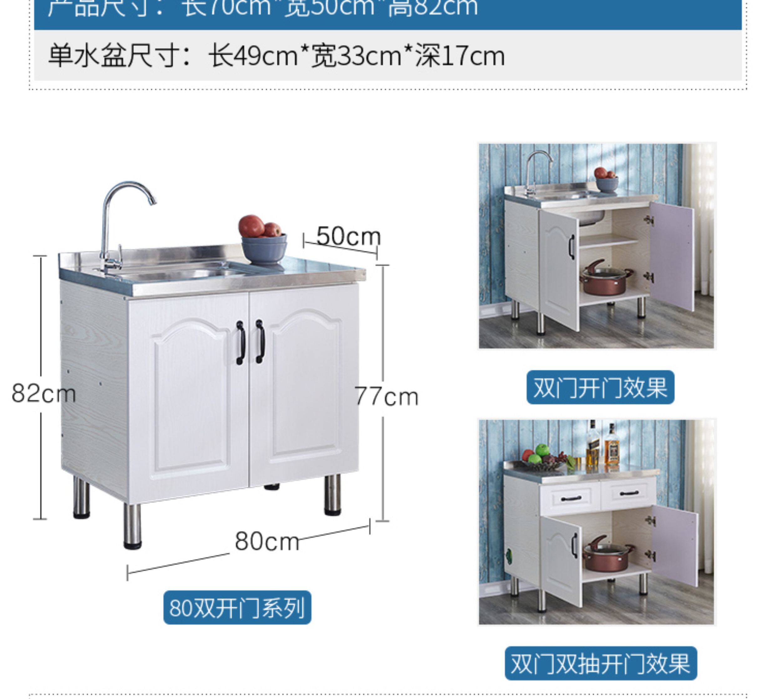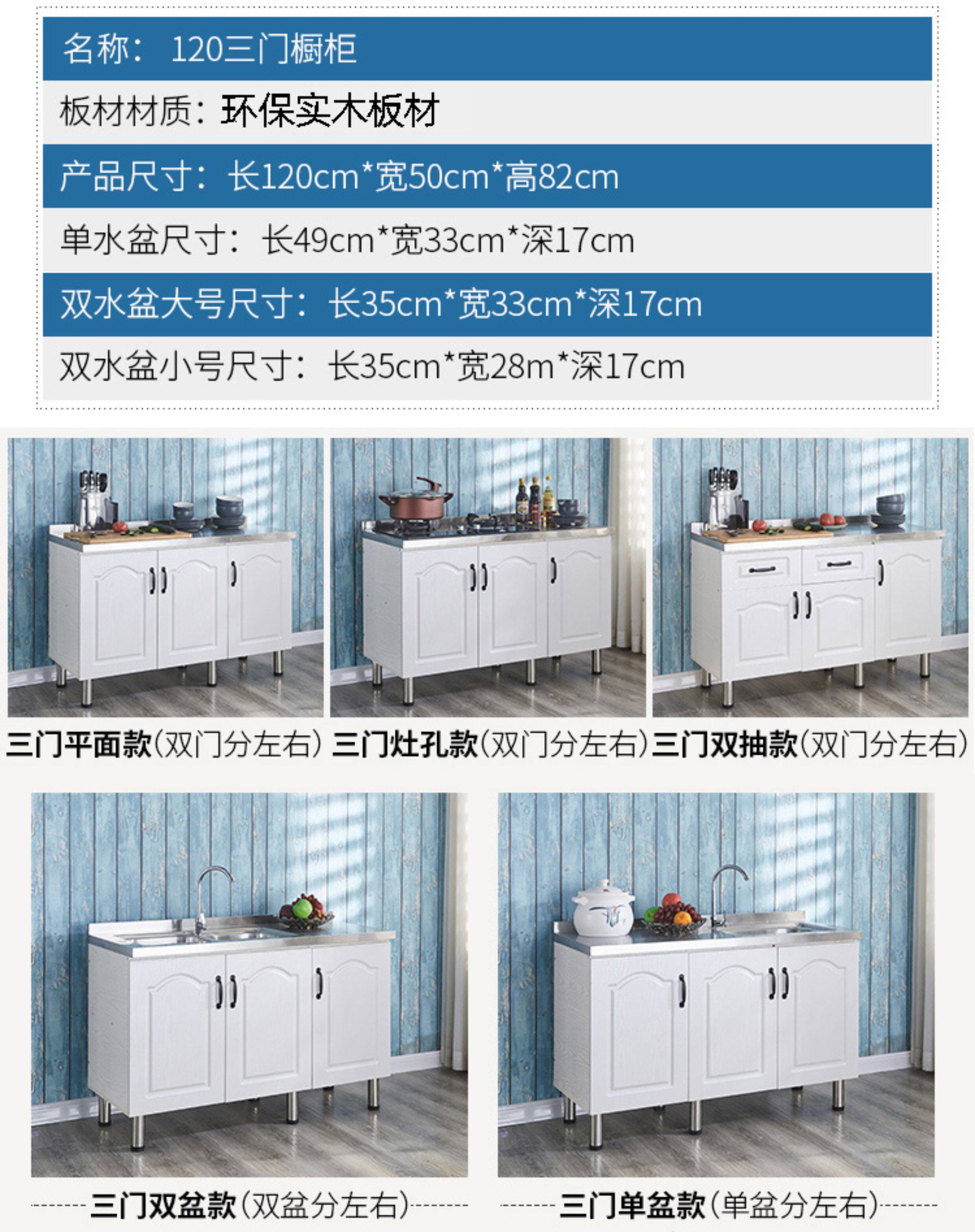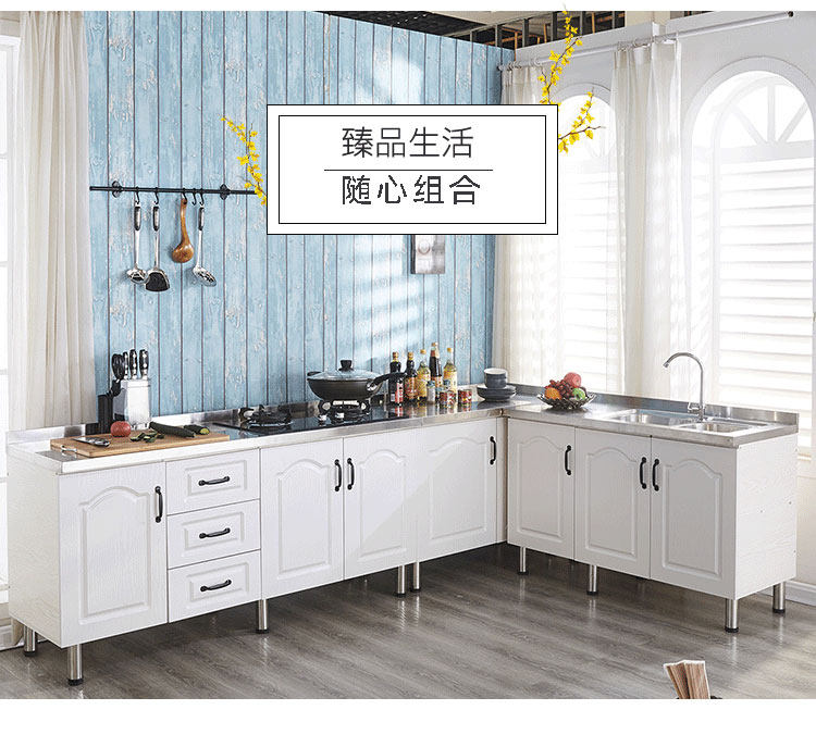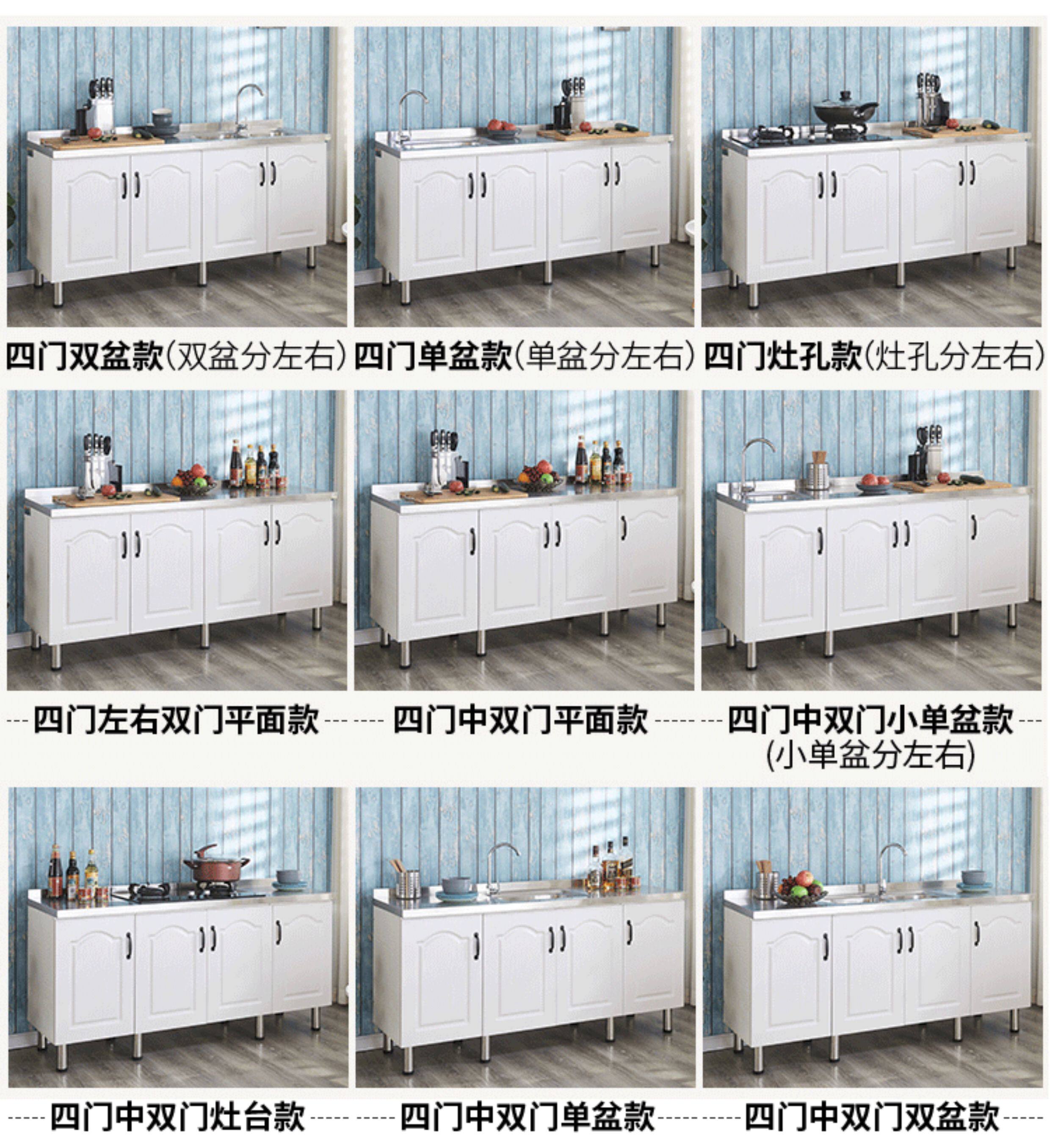简易橱柜厨房一体灶台柜小橱柜租房用移动不锈钢放碗柜家用经济型